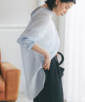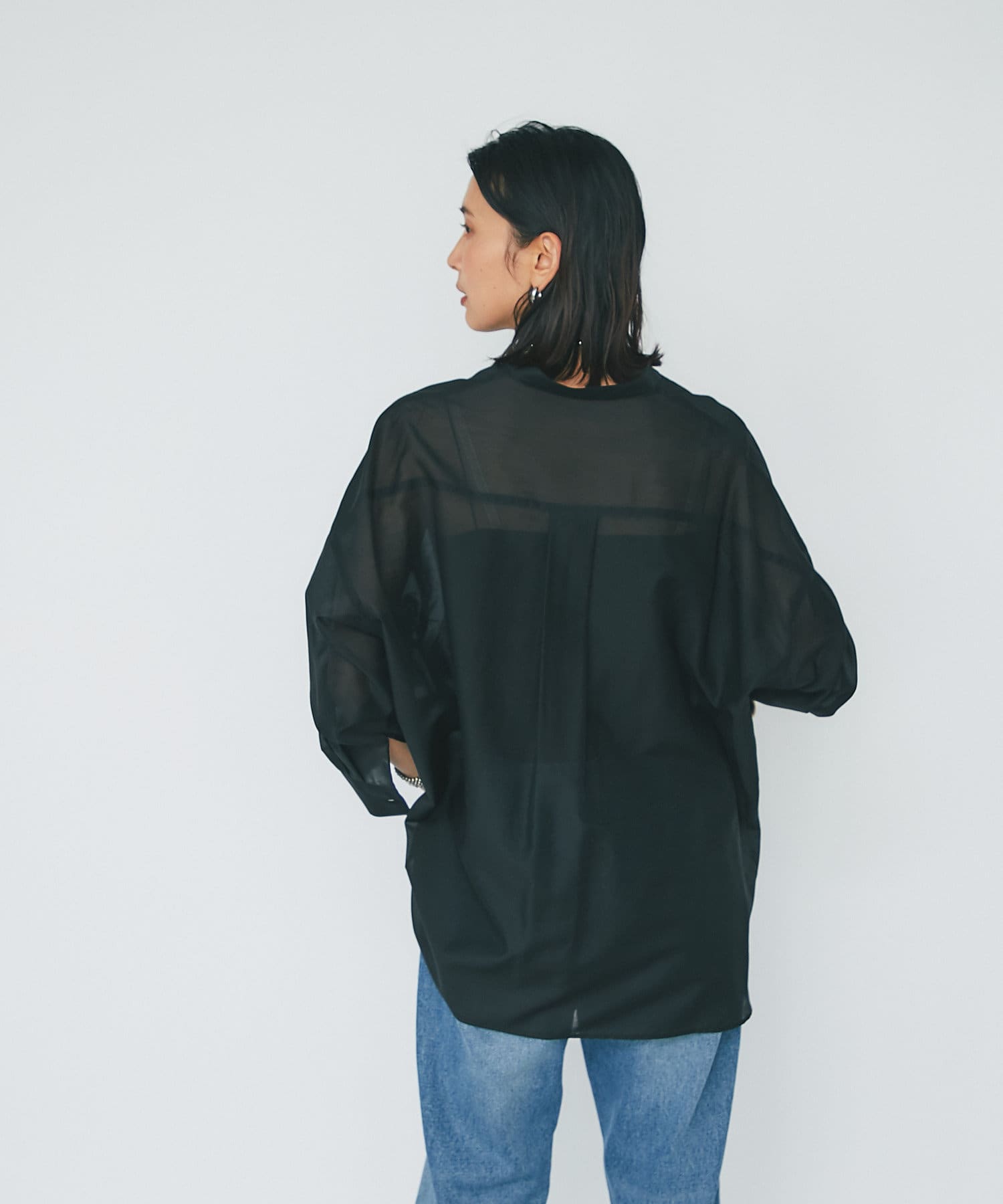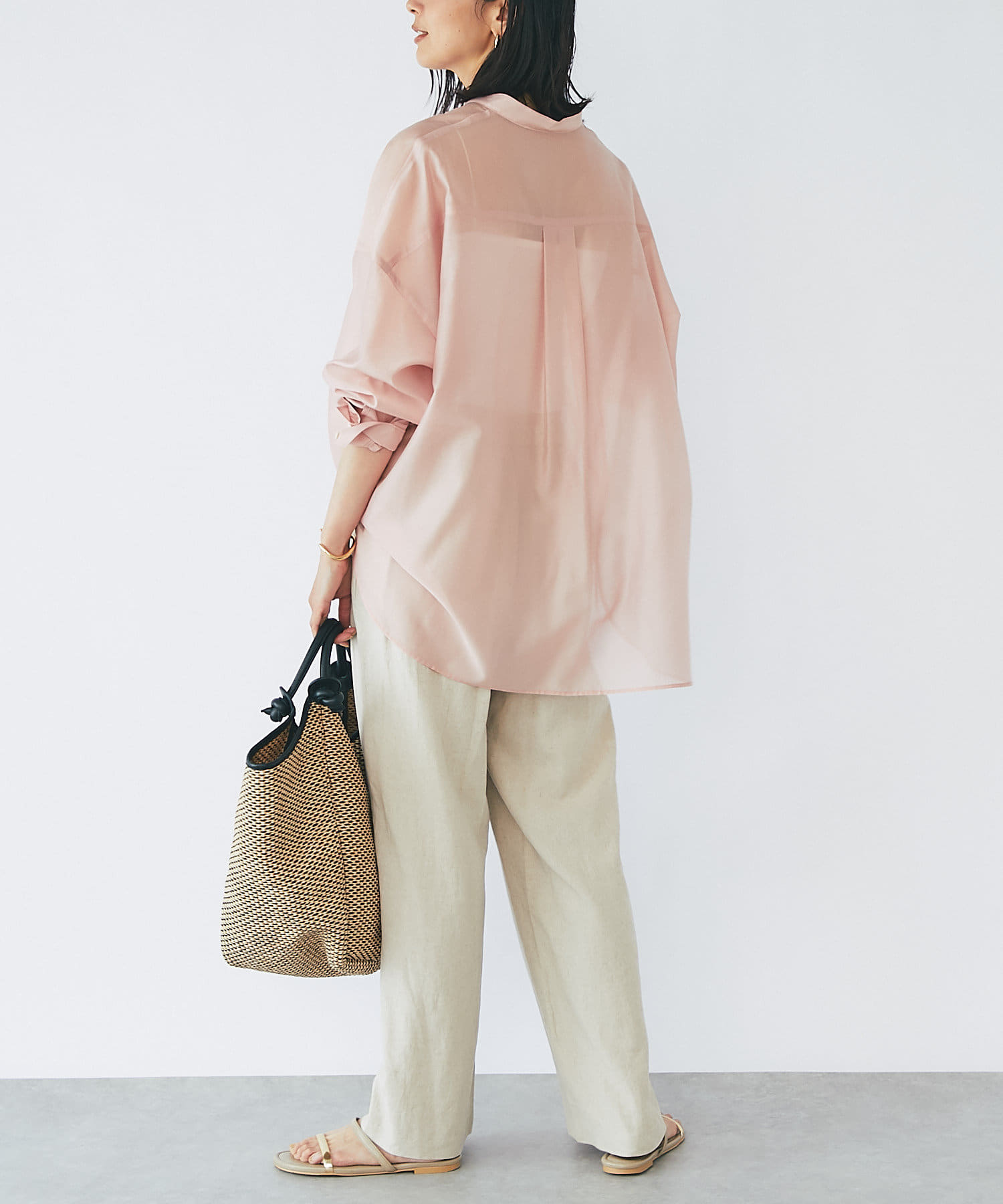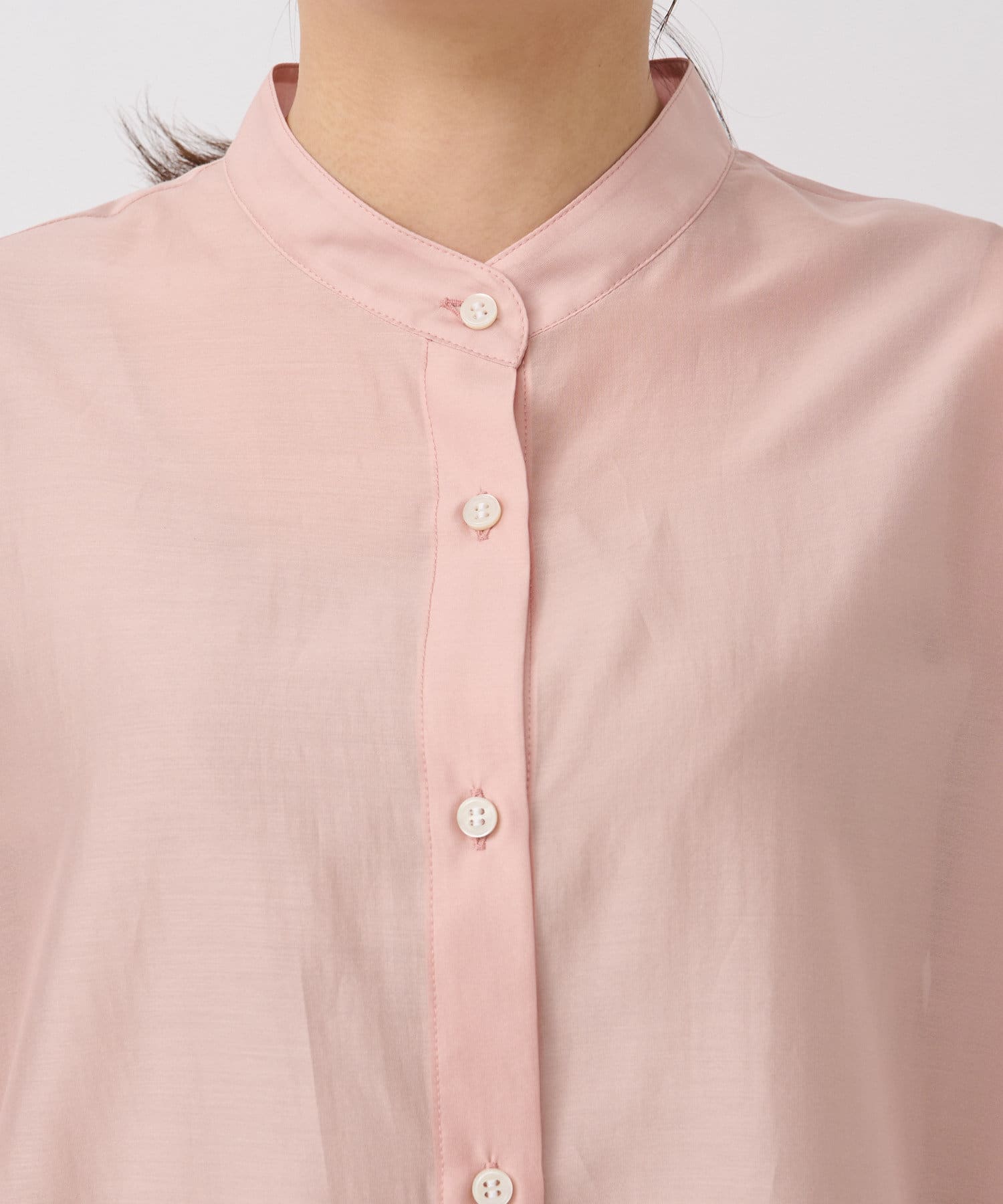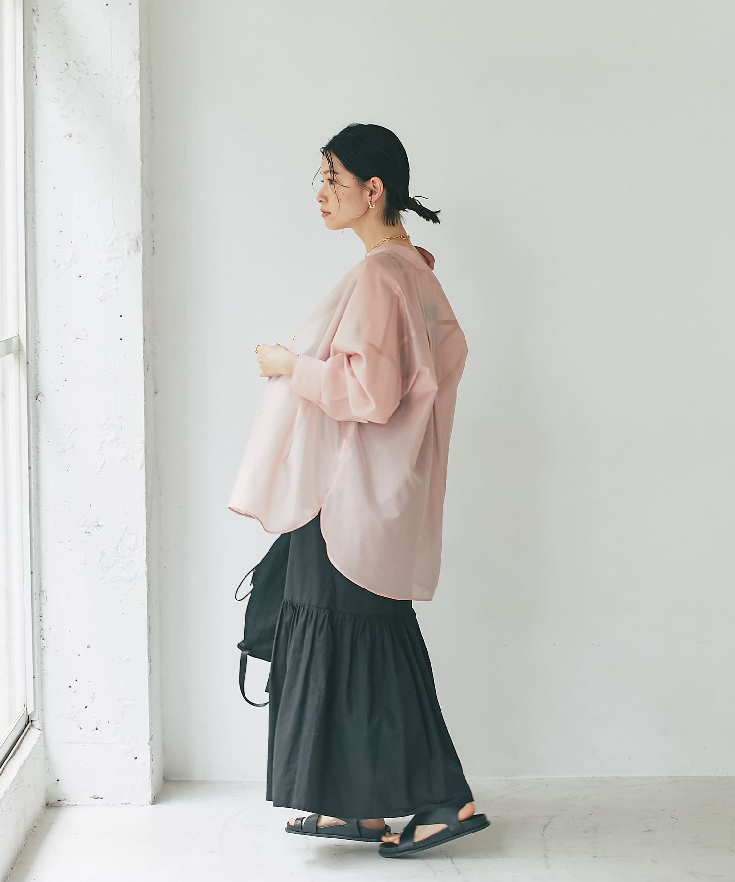 【軽やかな雰囲気のシアー素材】ナチュラルオーガンジーバンドカラーシャツ