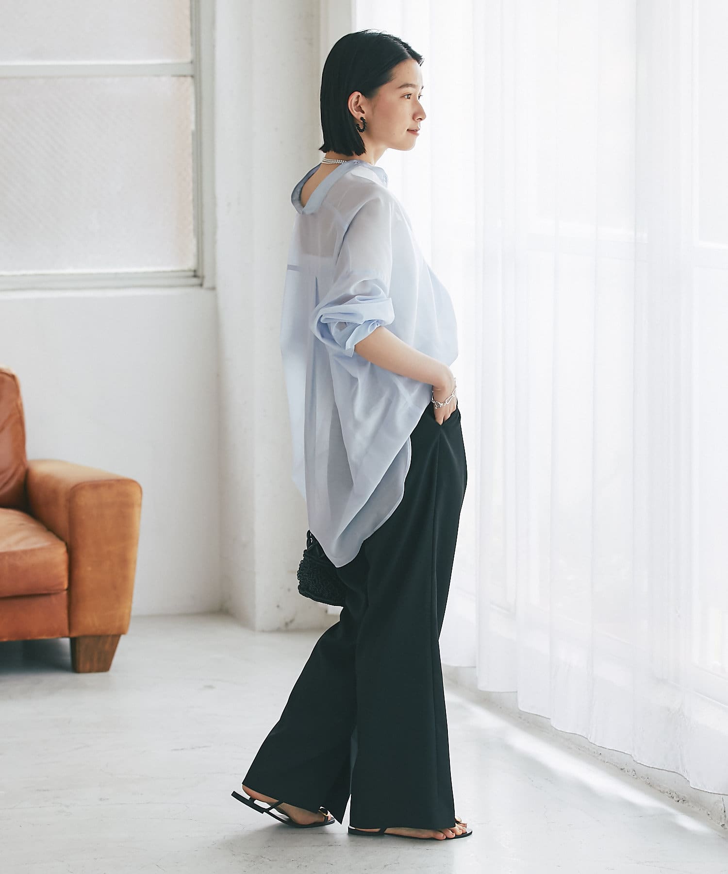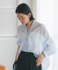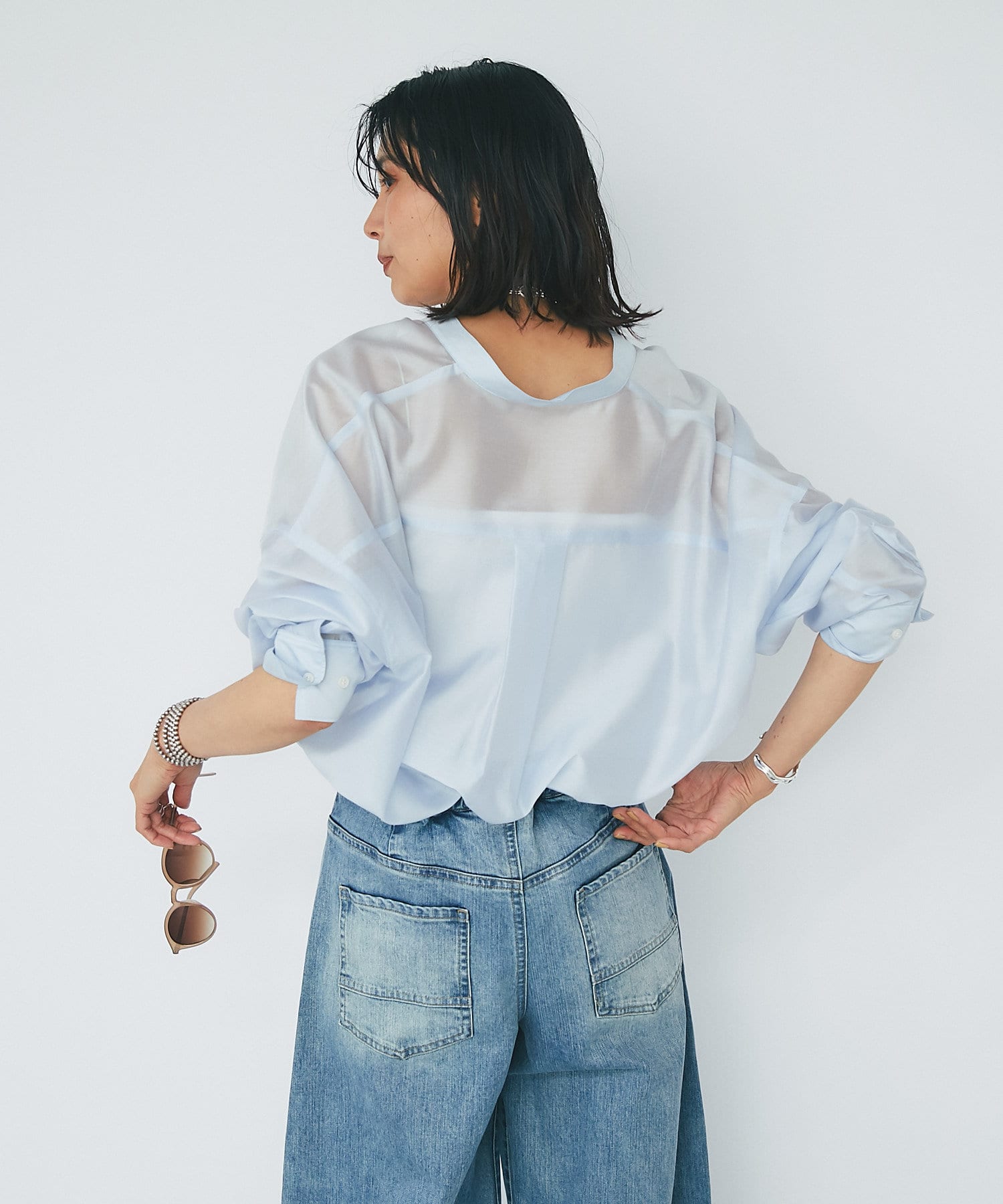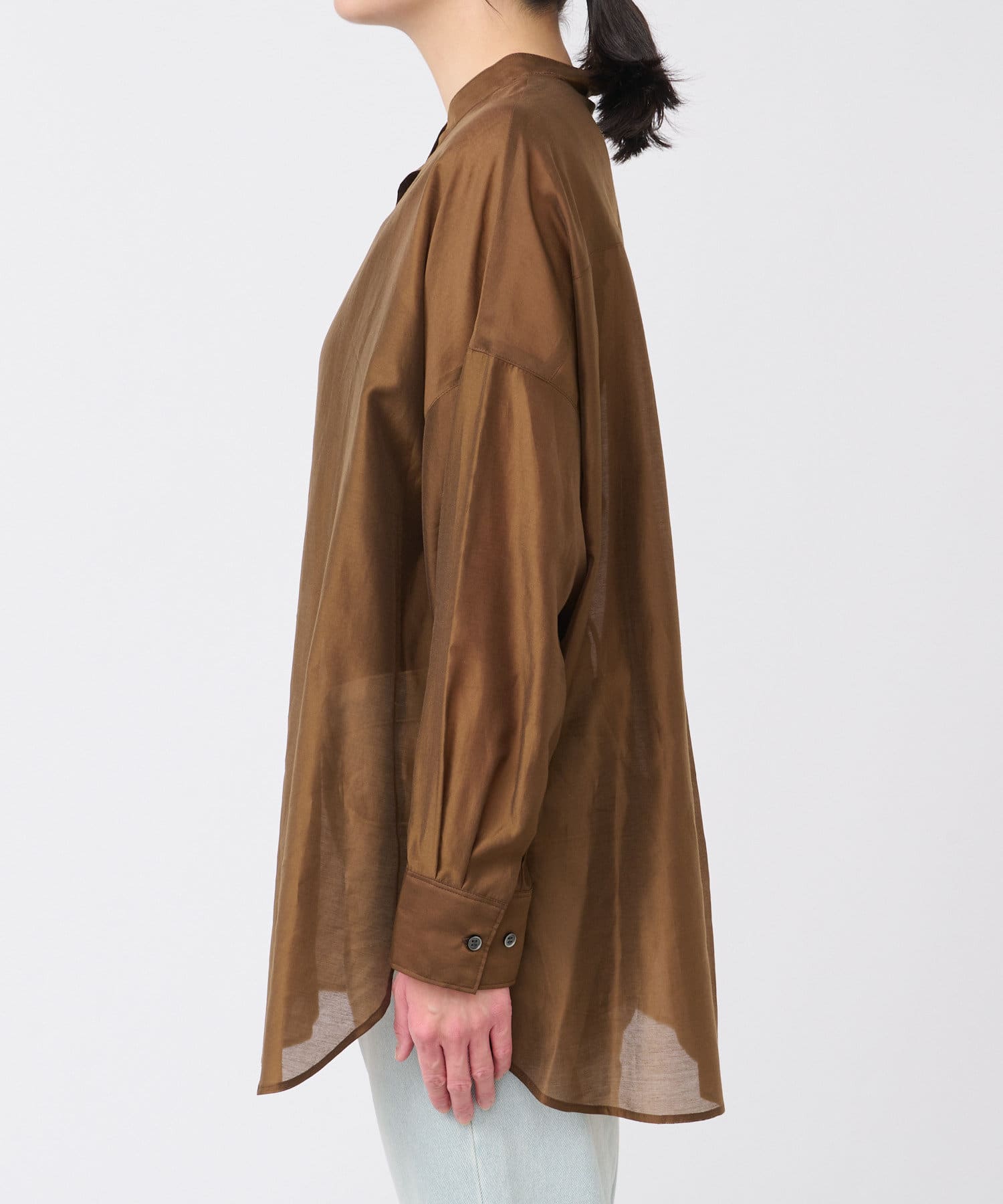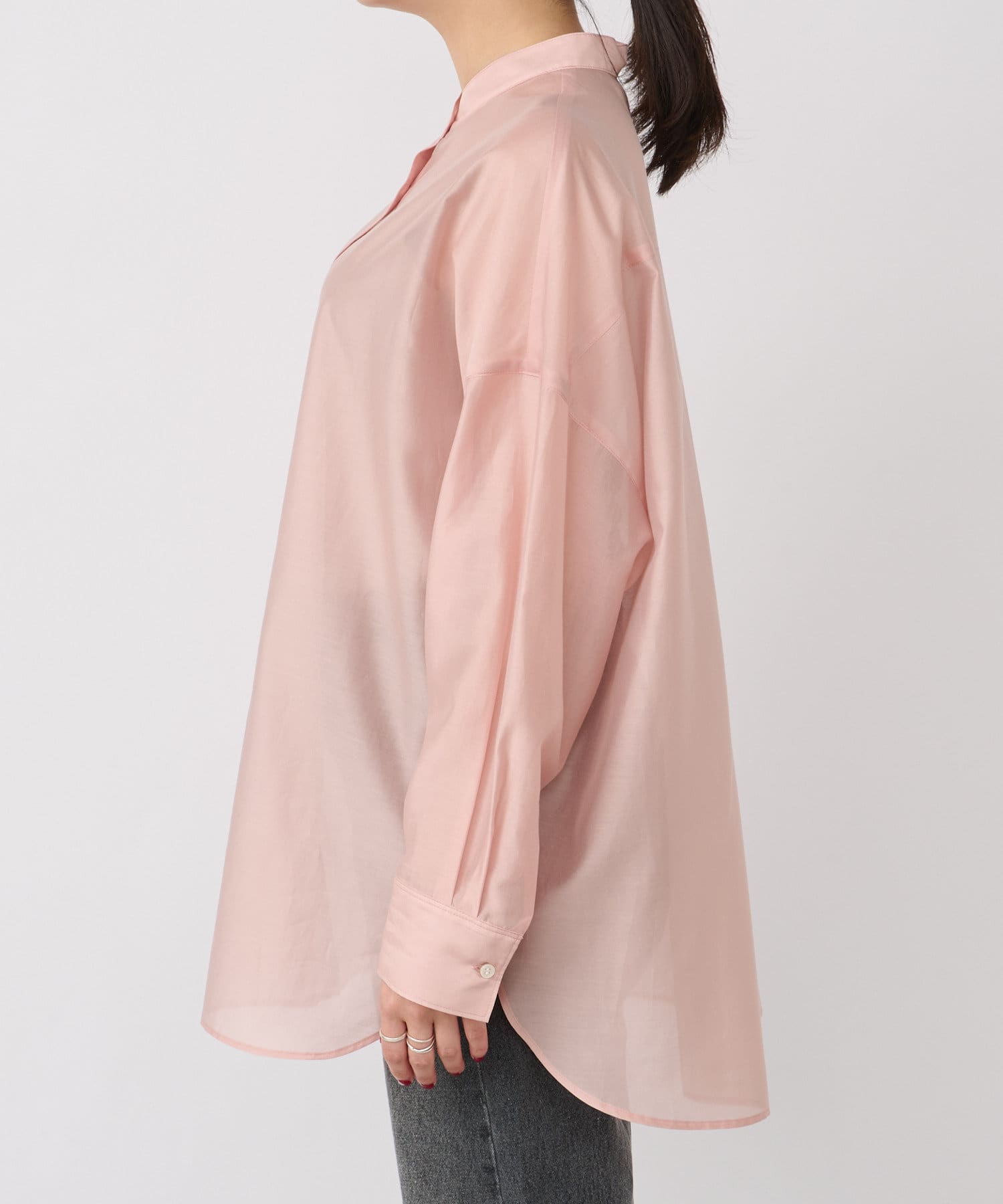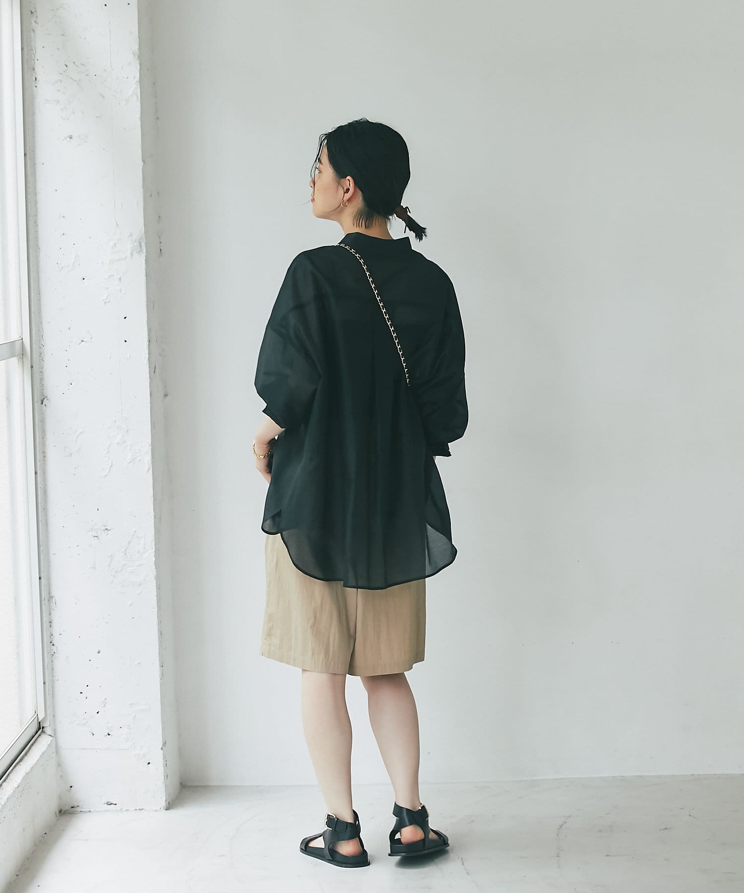 【軽やかな雰囲気のシアー素材】ナチュラルオーガンジーバンドカラーシャツ