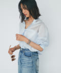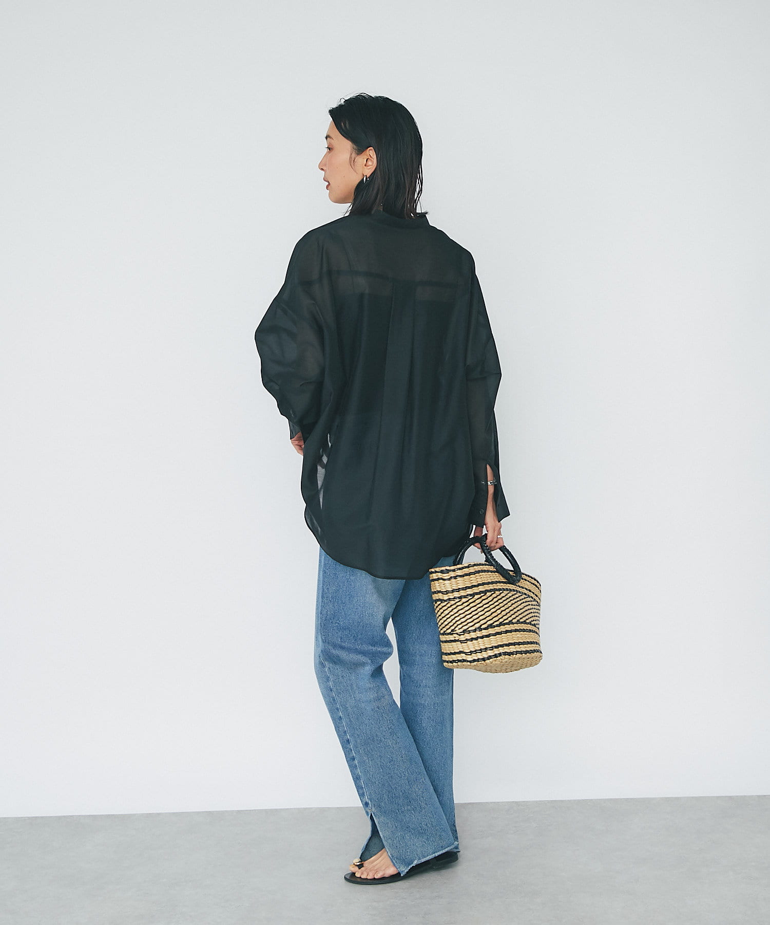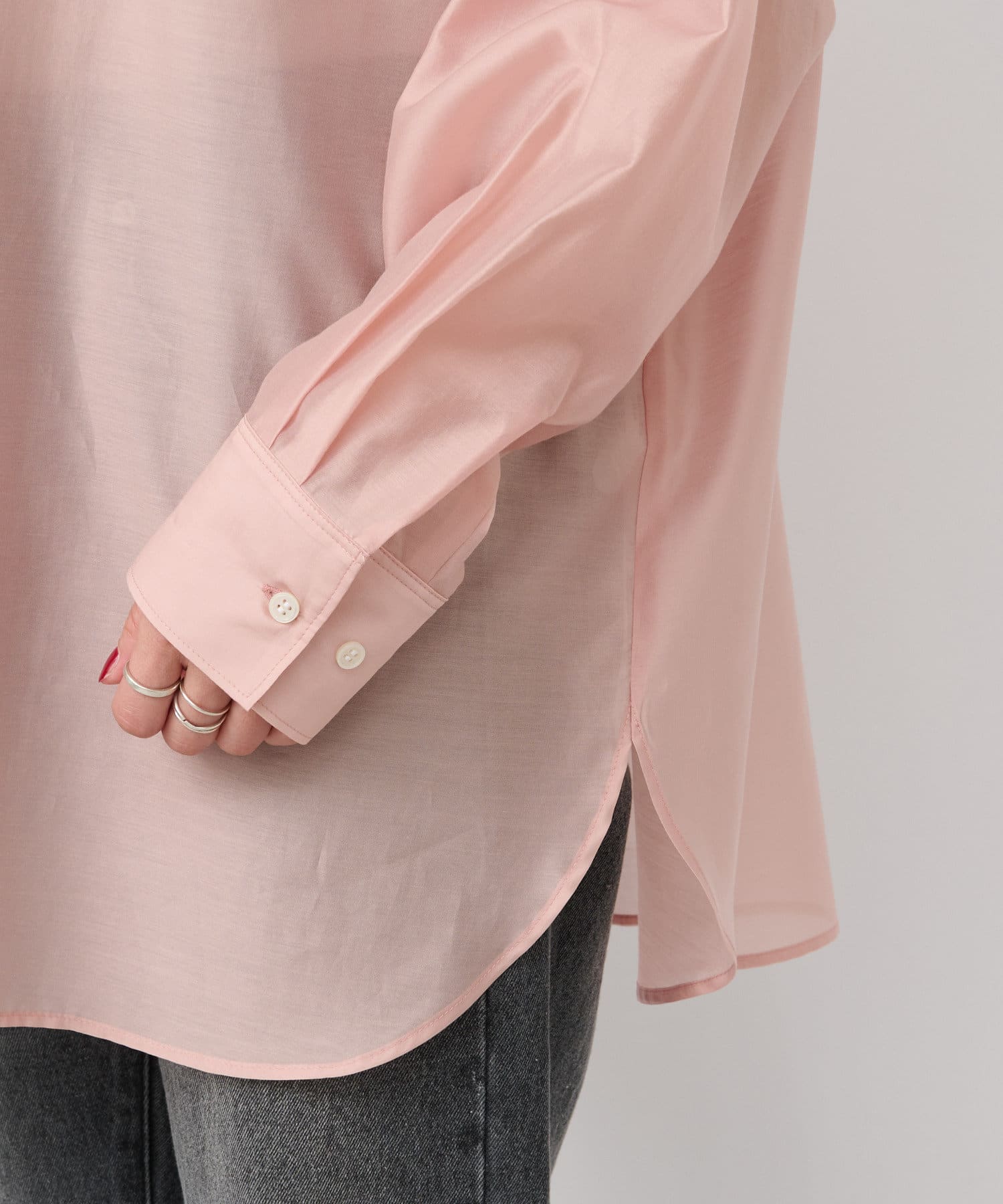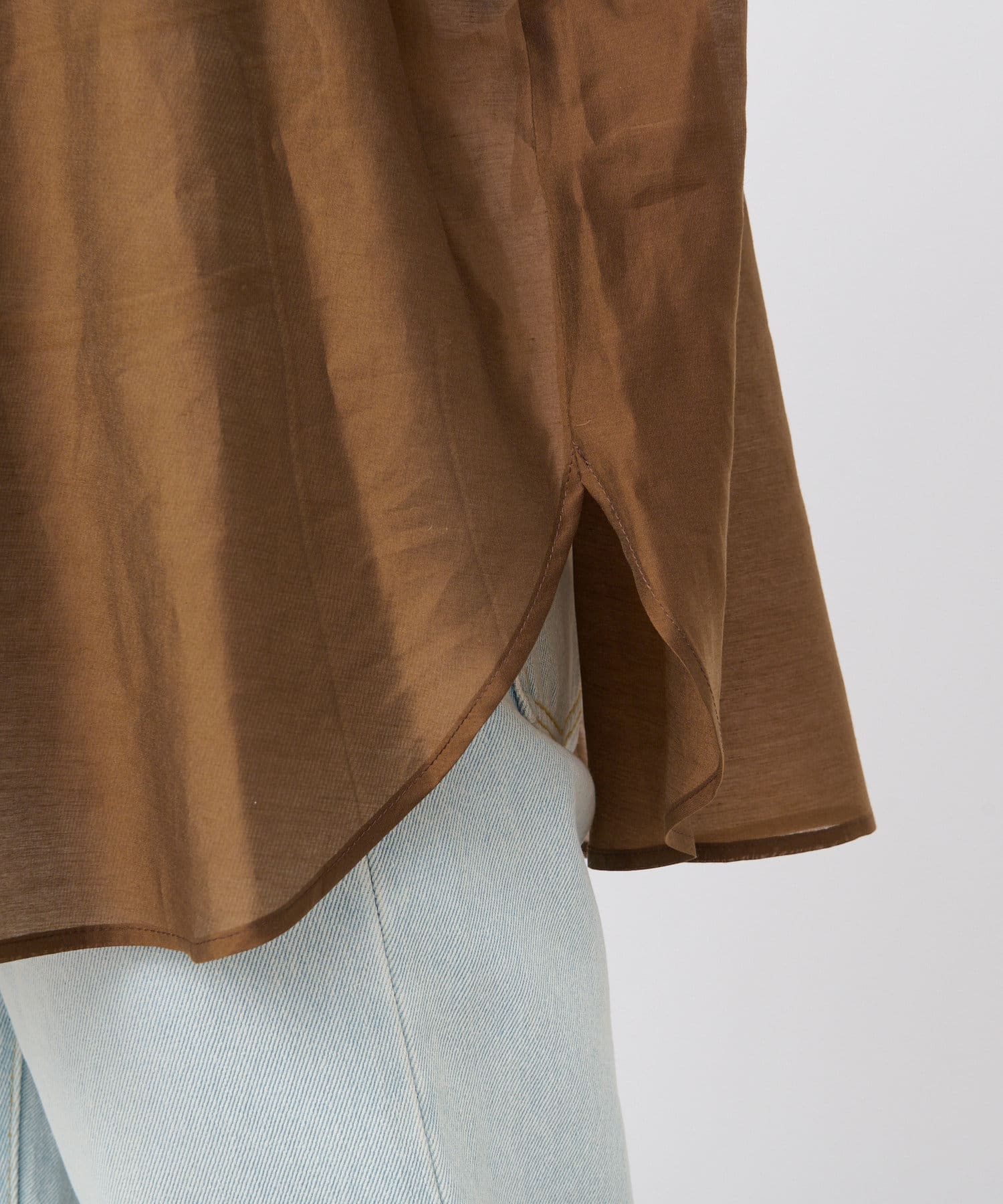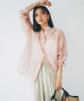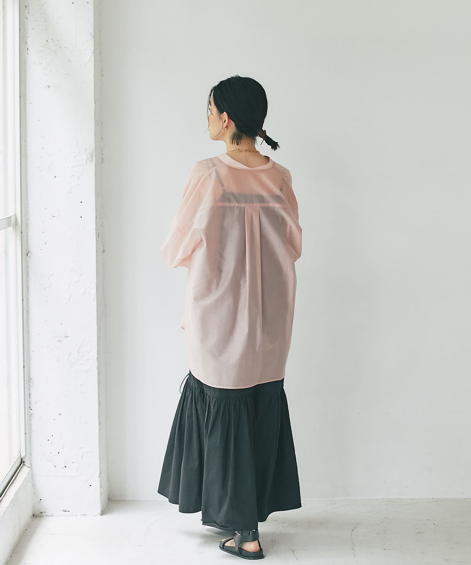 【軽やかな雰囲気のシアー素材】ナチュラルオーガンジーバンドカラーシャツ