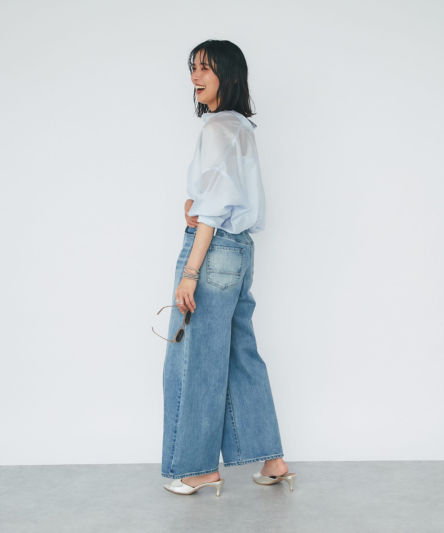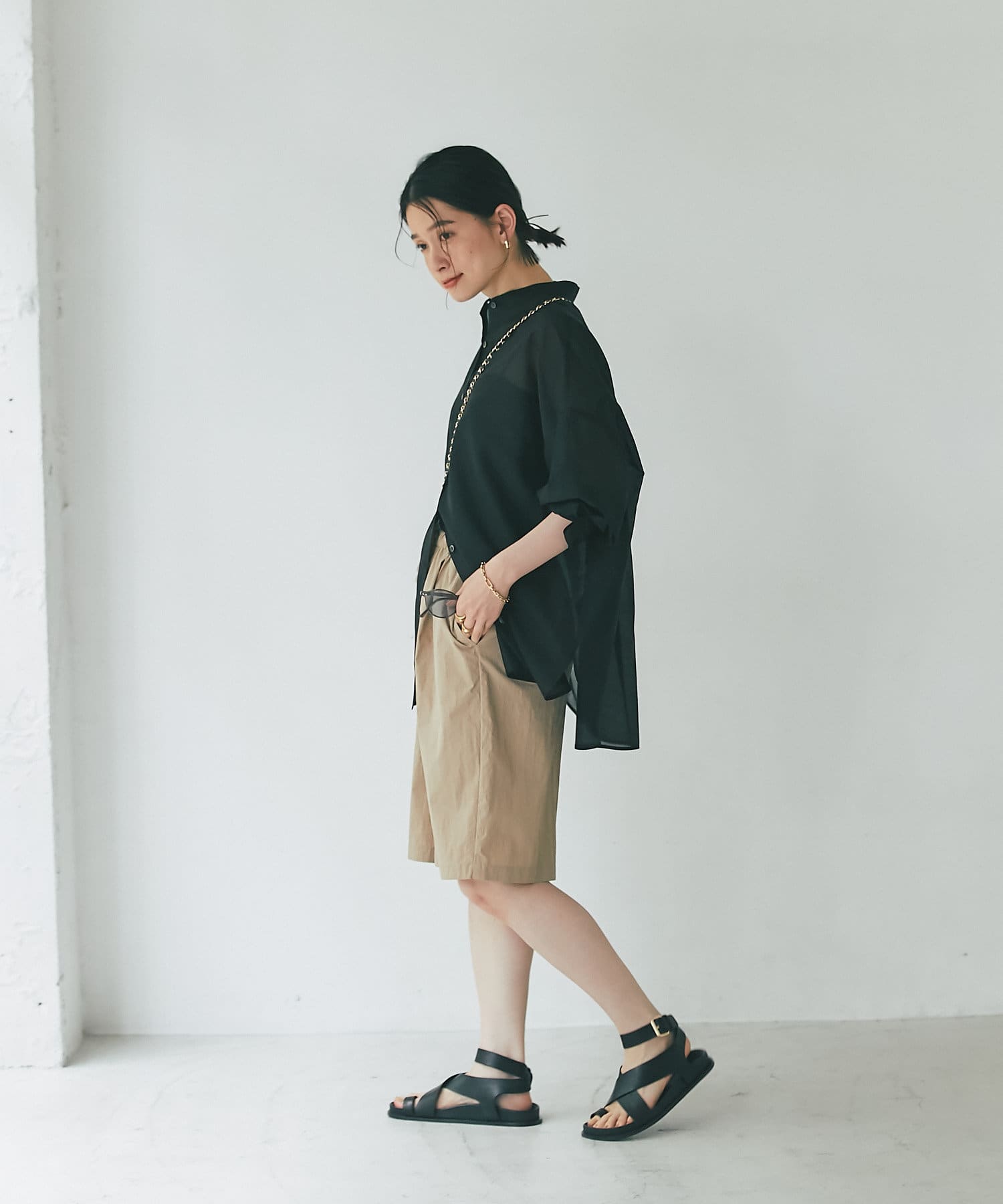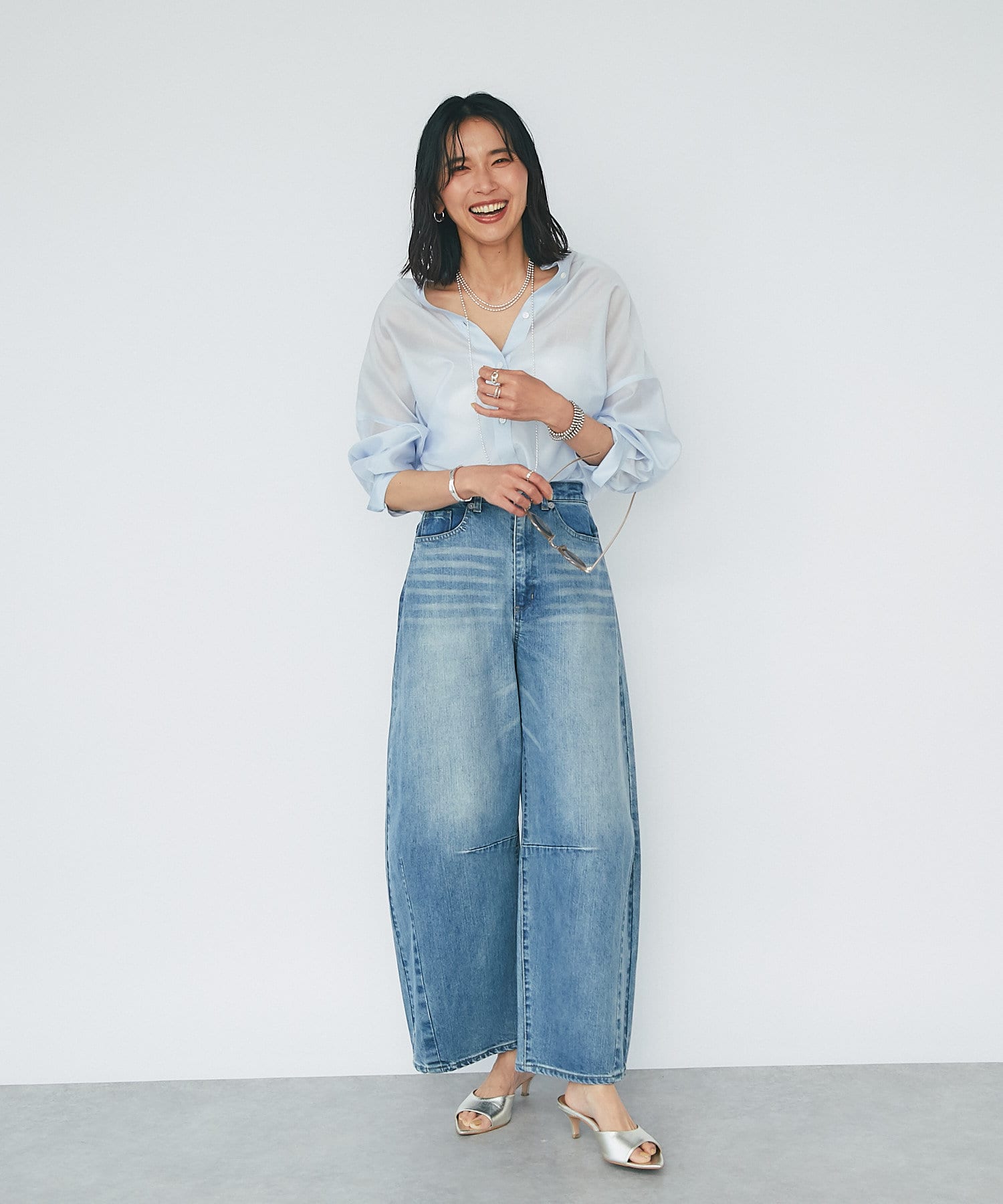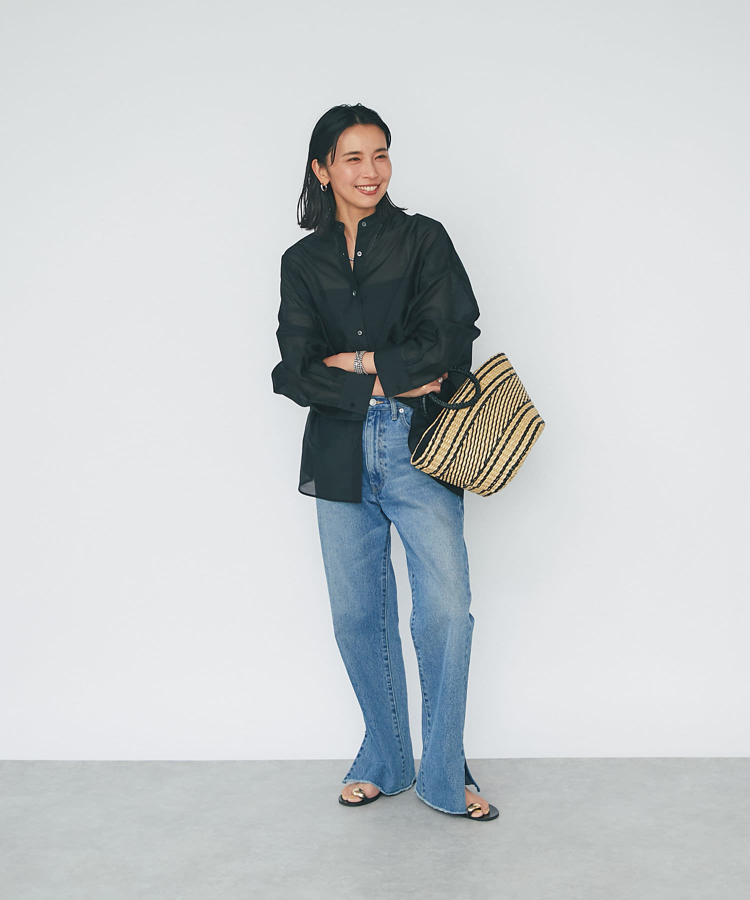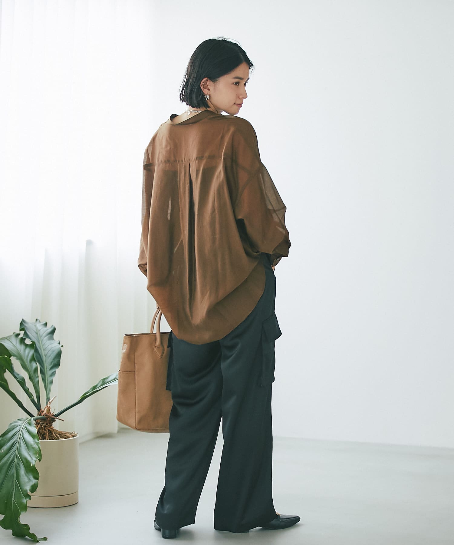 シアー感のあるアイテムなので重くなりすぎず軽やかなスタイルが完成します。