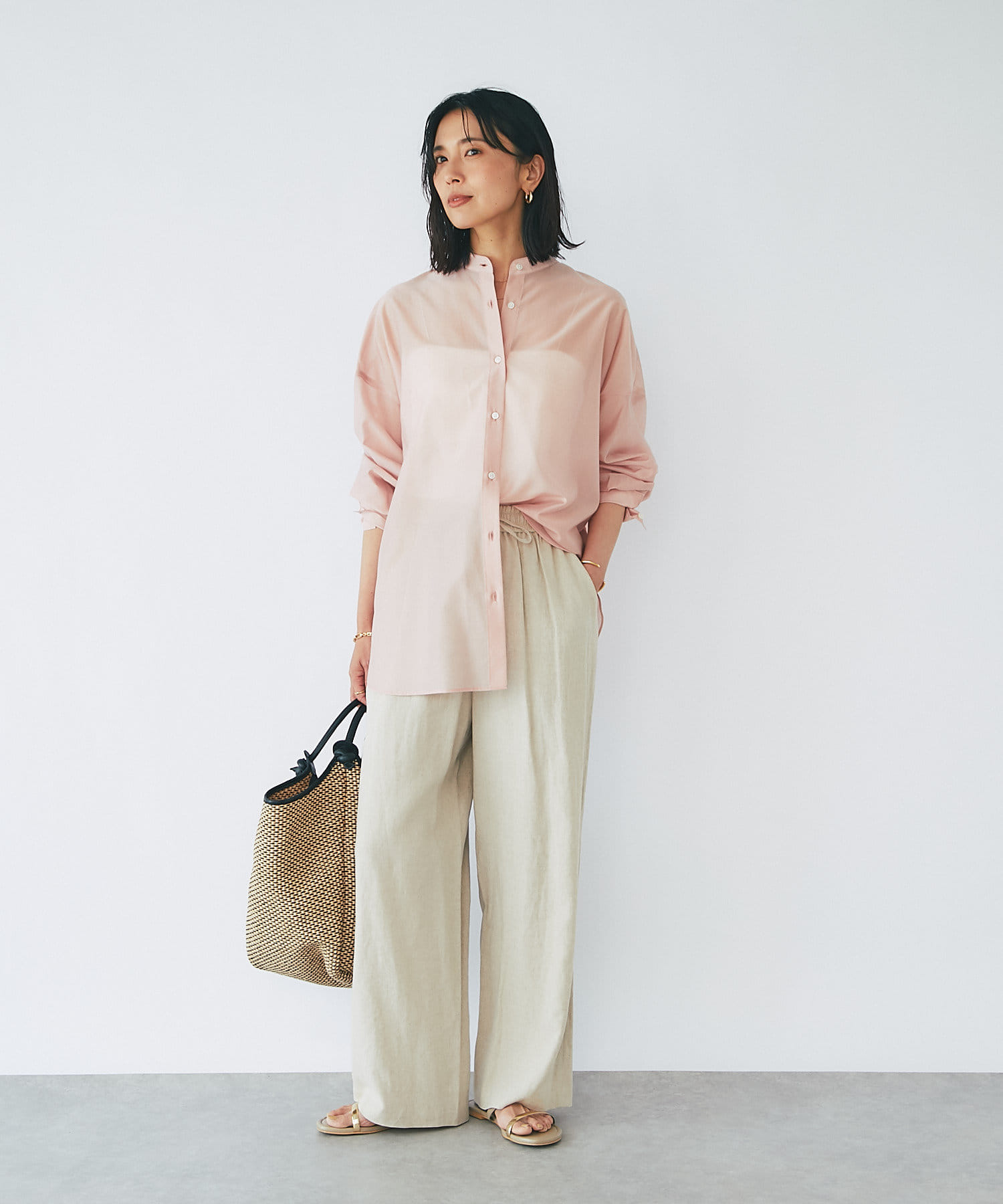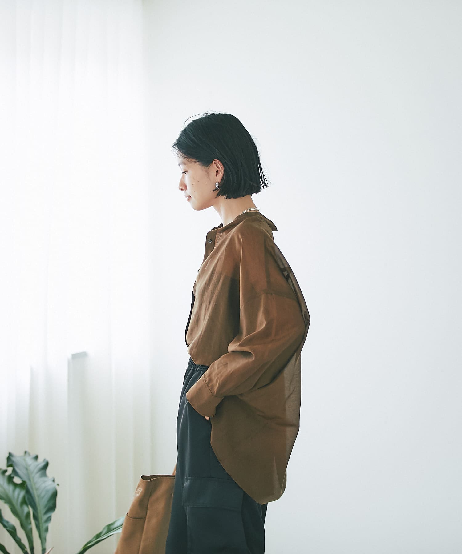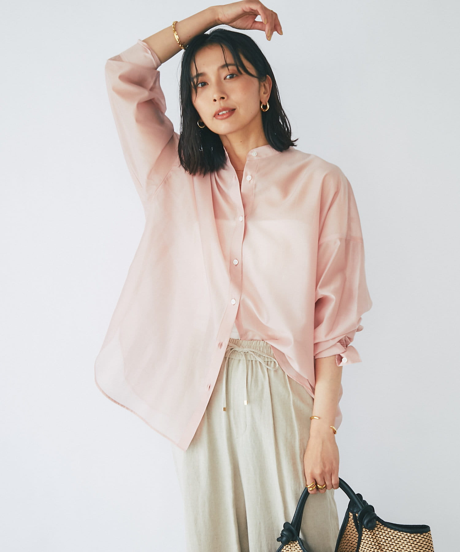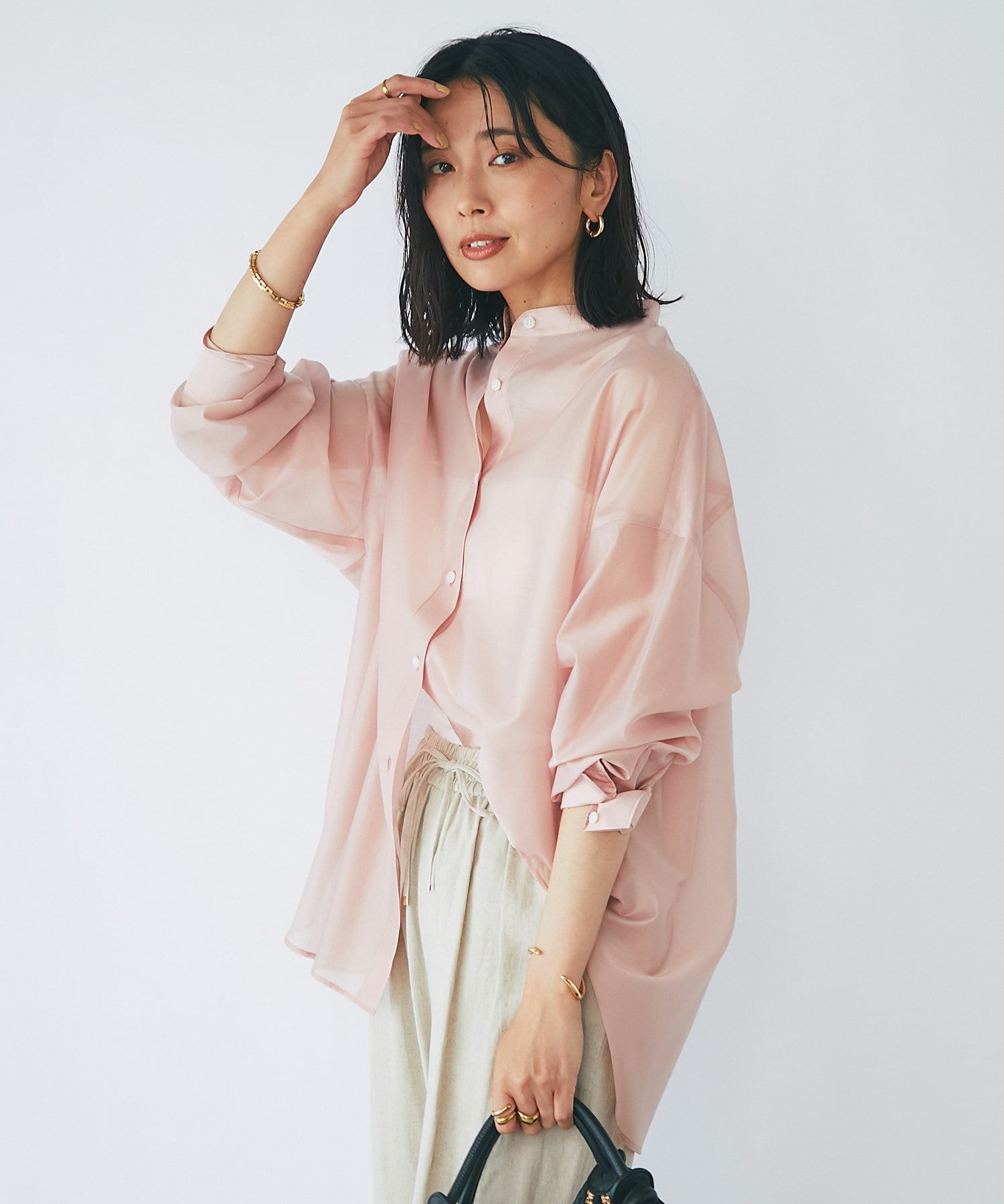 今年らしいシアー感が軽やかなバンドカラーシャツ。