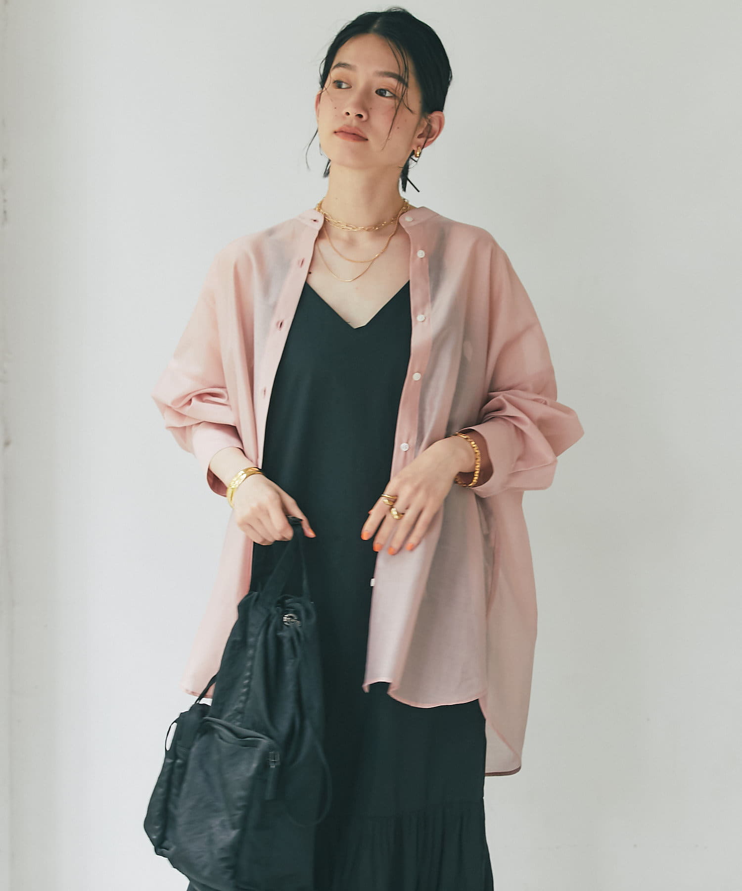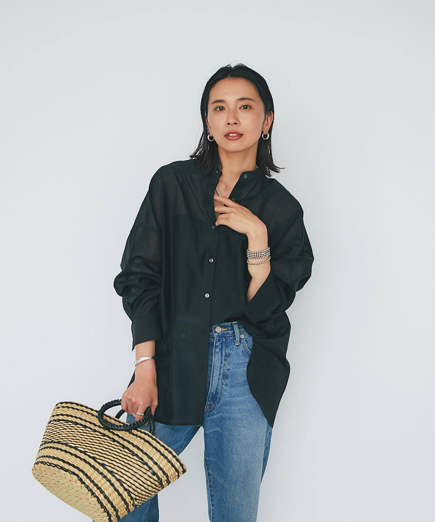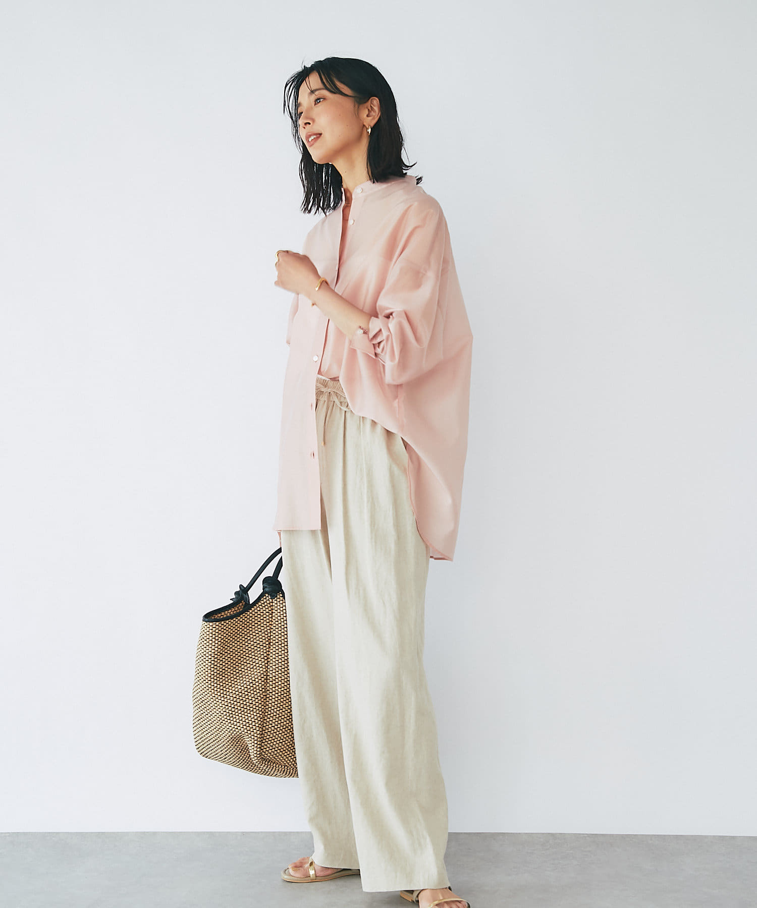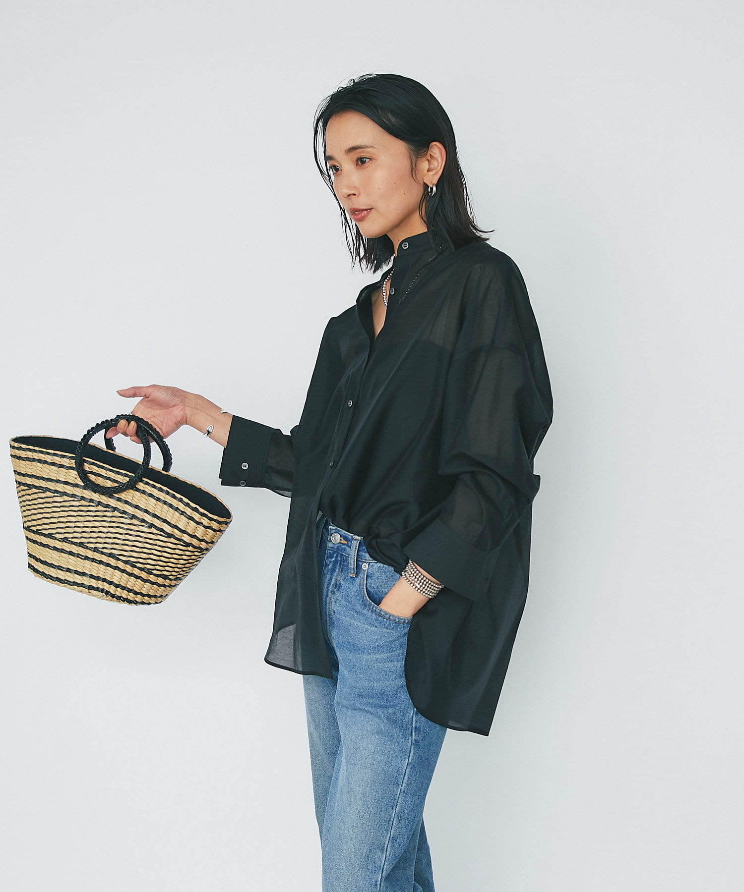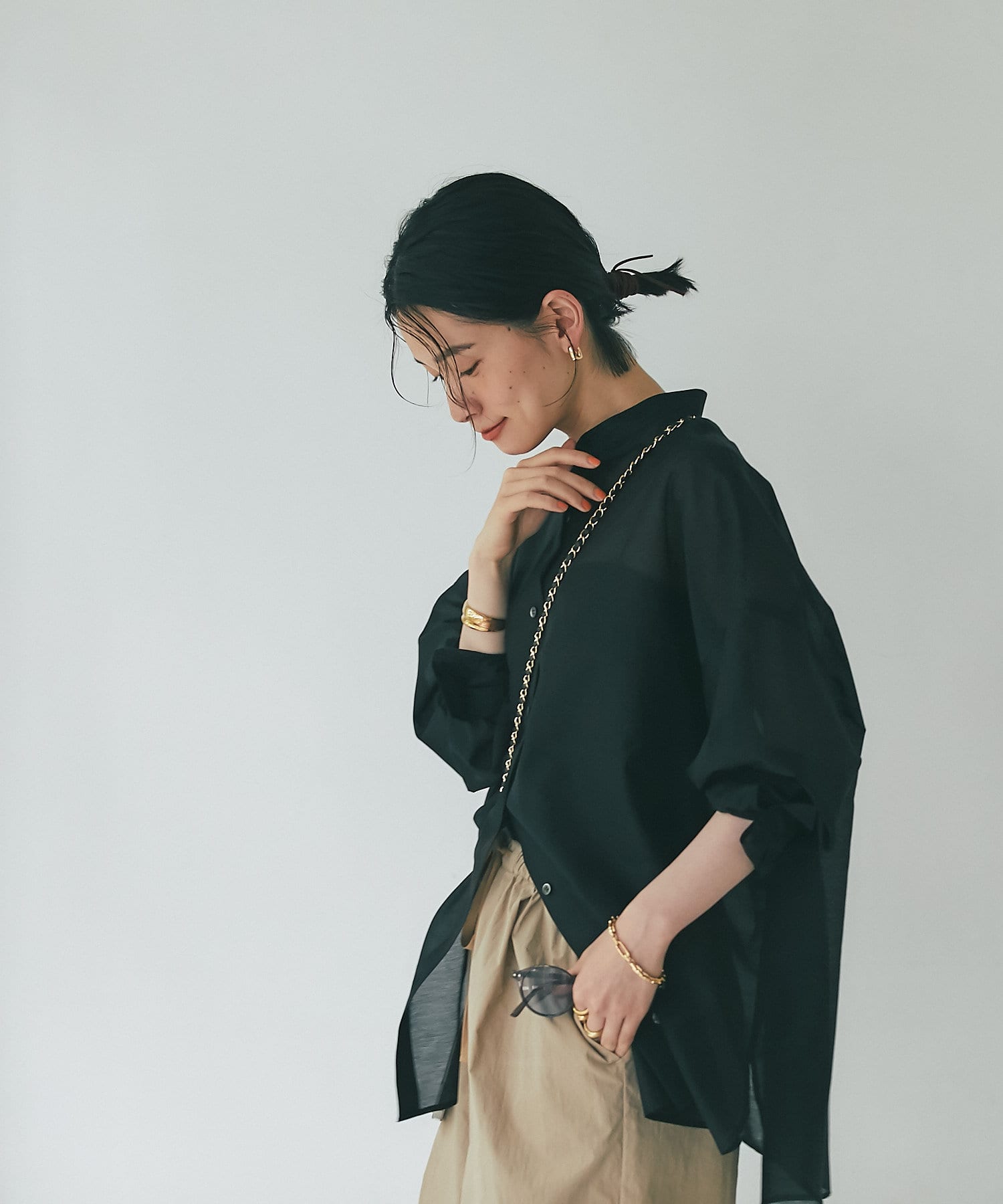 今年らしいシアー感が軽やかなバンドカラーシャツ。