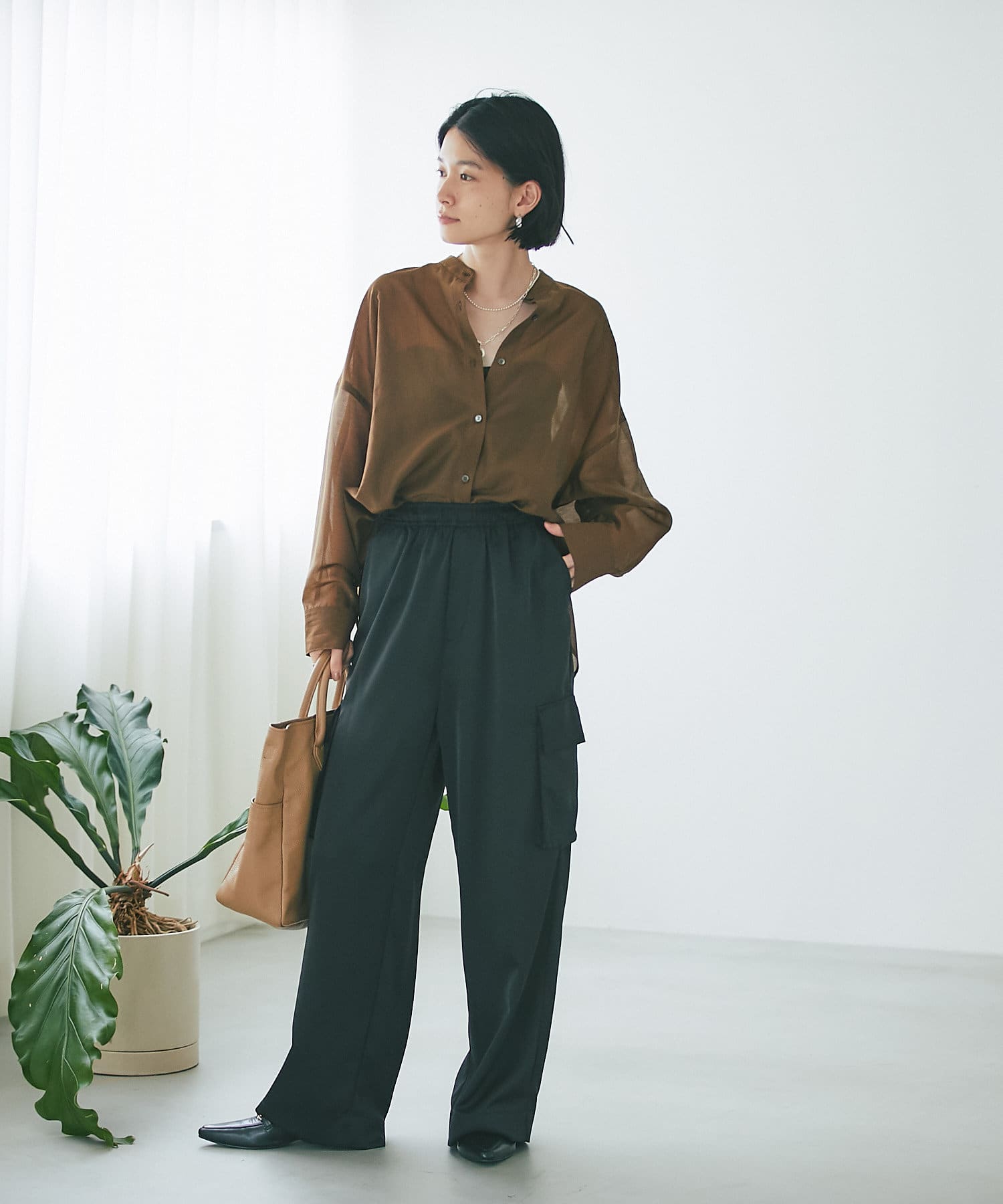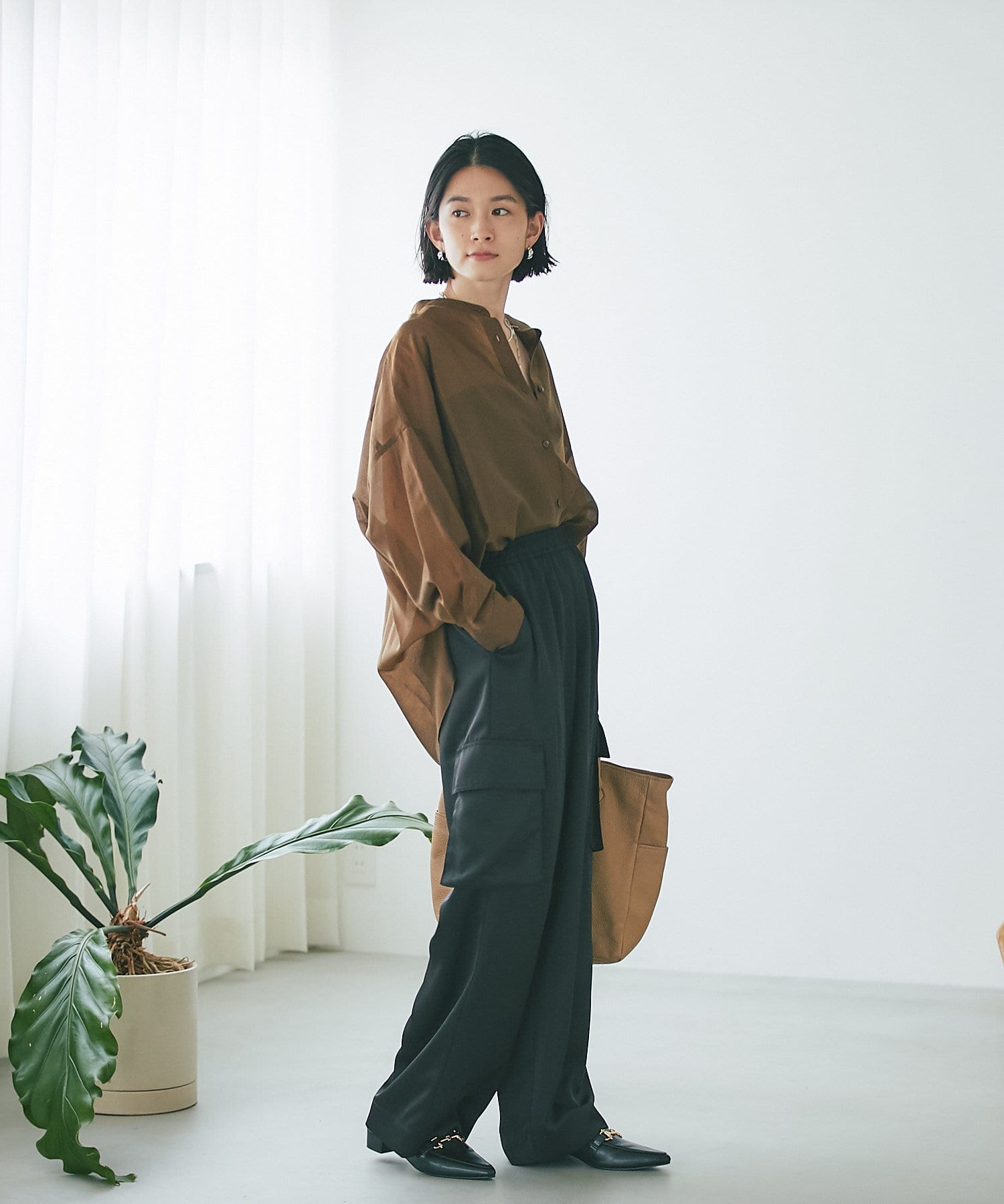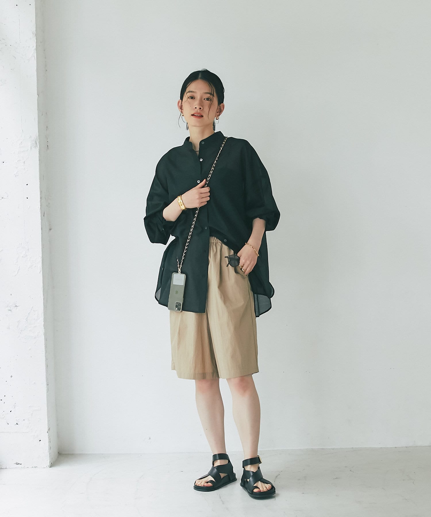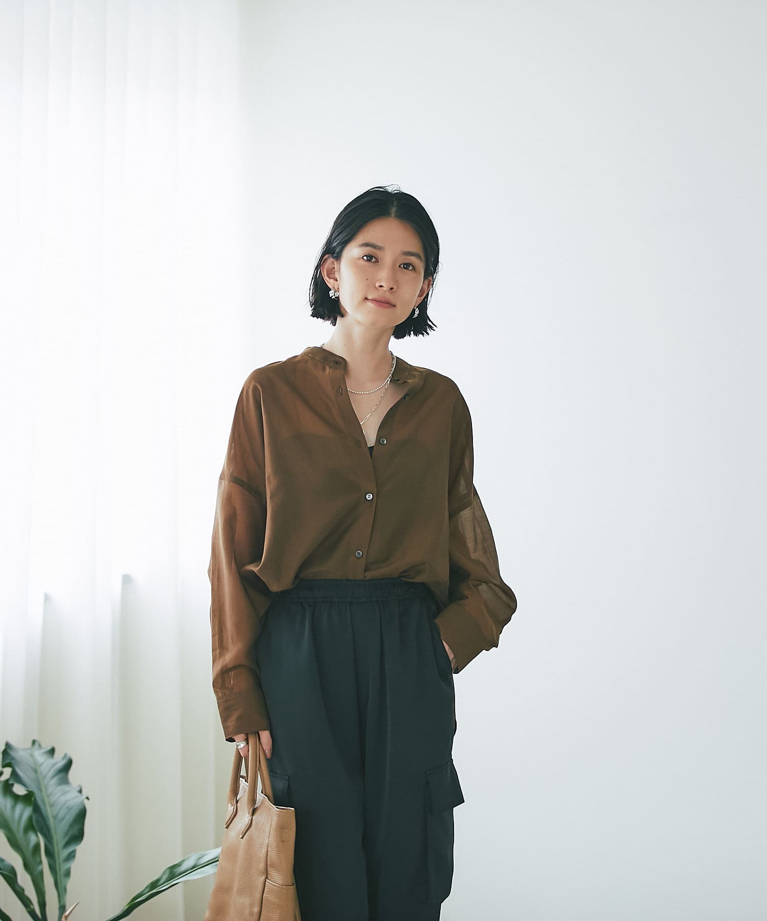 今年らしいシアー感が軽やかなバンドカラーシャツ。
