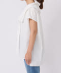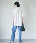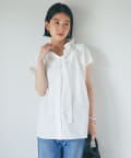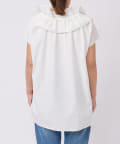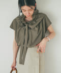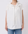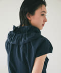 衿元のギャザーフリルがポイントのブラウス。