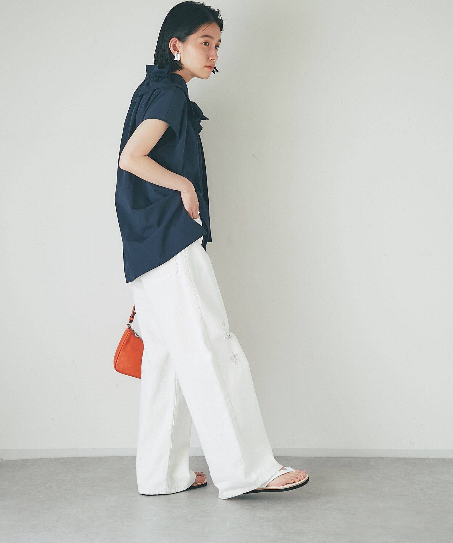 細身のボトムはもちろん、カジュアルなワイドパンツでも、女性らしくお召いただけます。