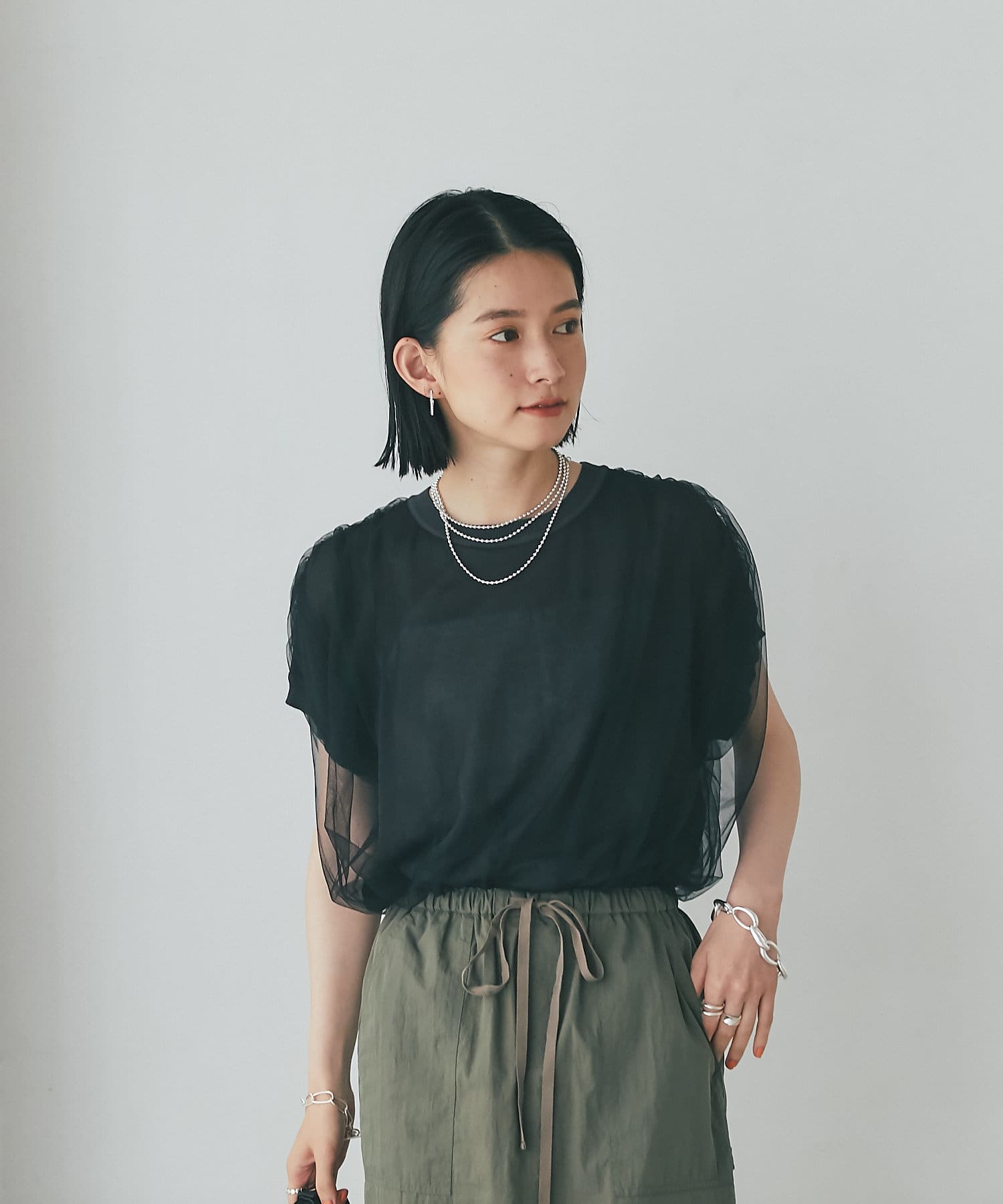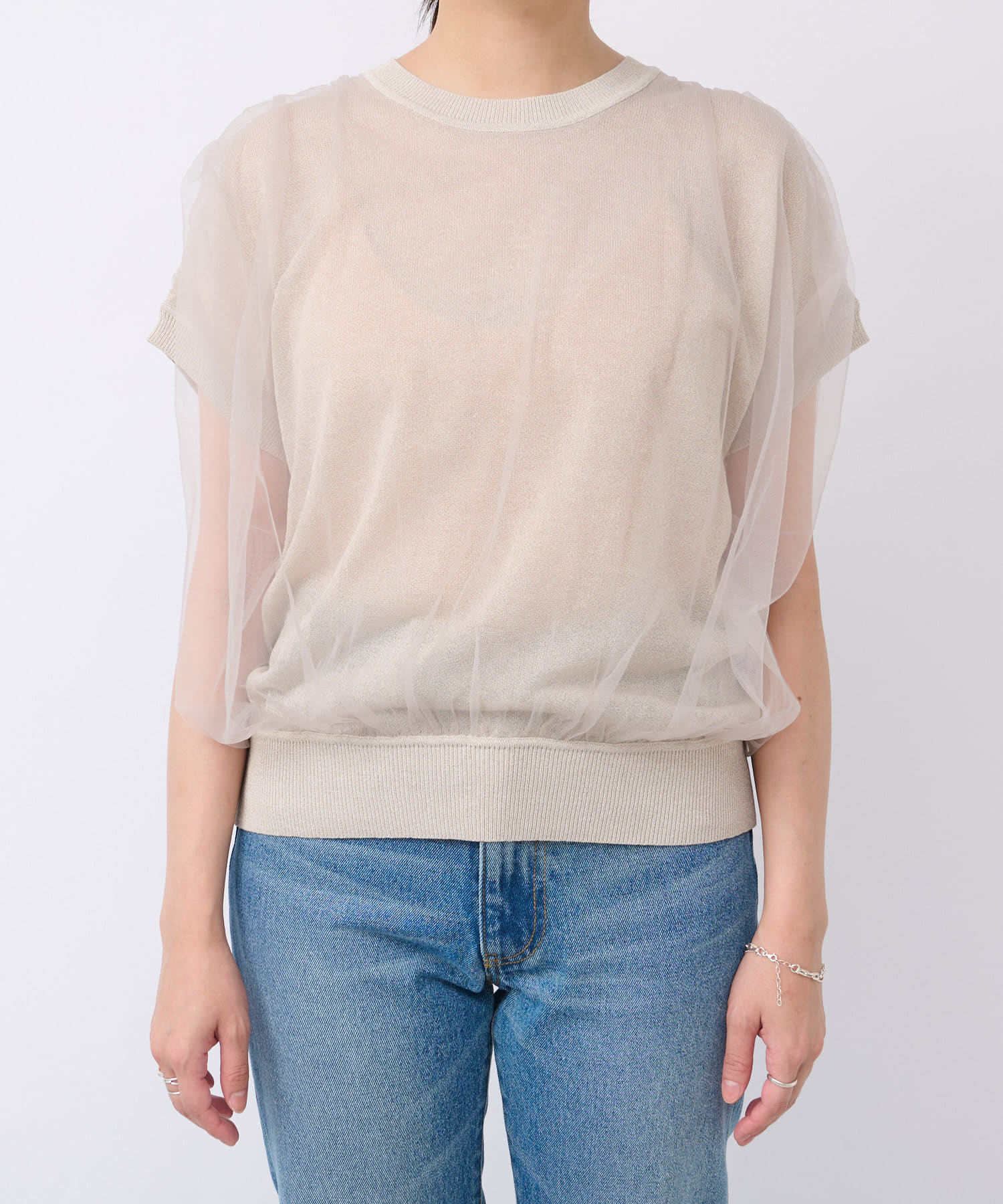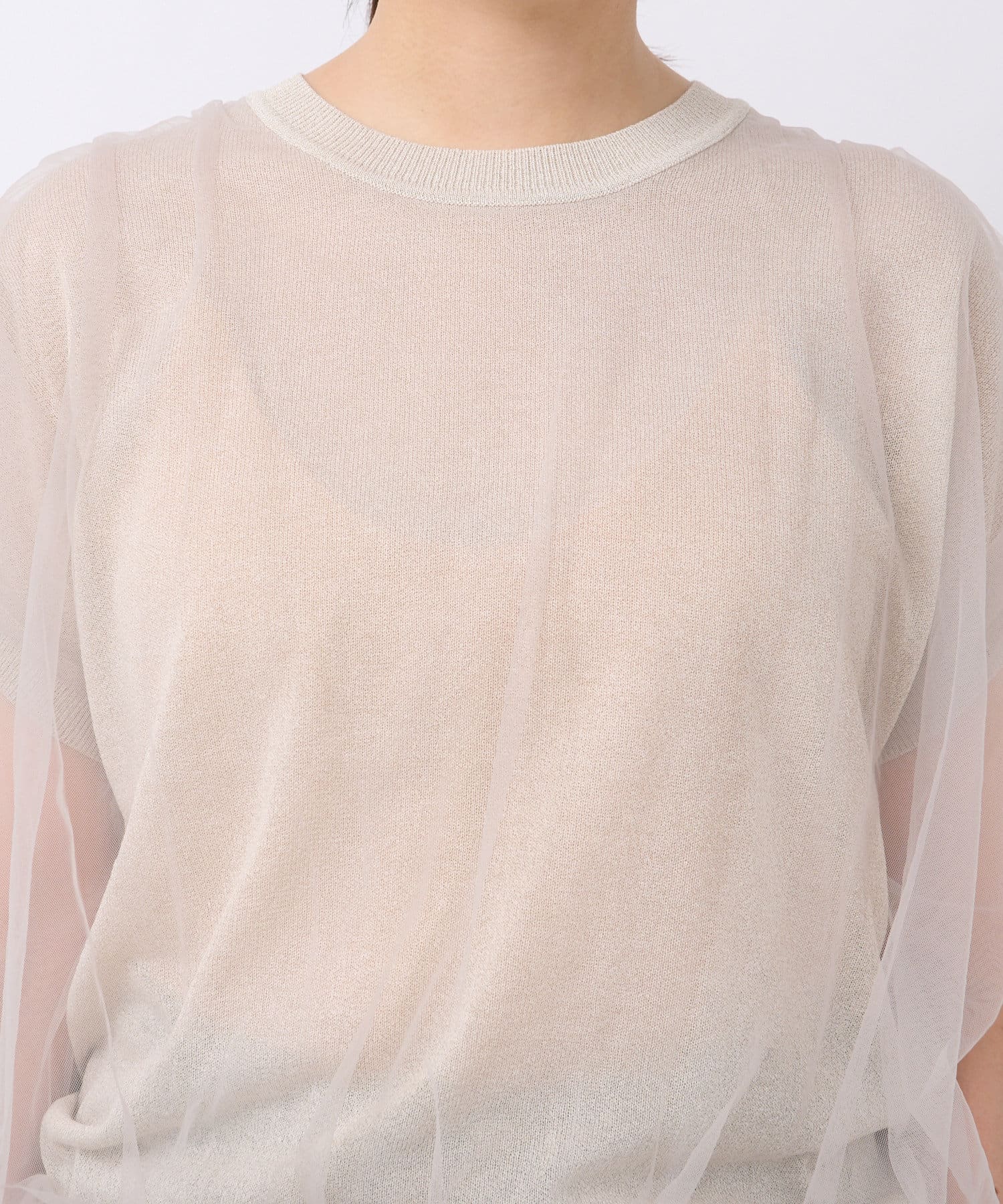 女性らしさが引き立つ、チュール素材を合わせたニットが登場。