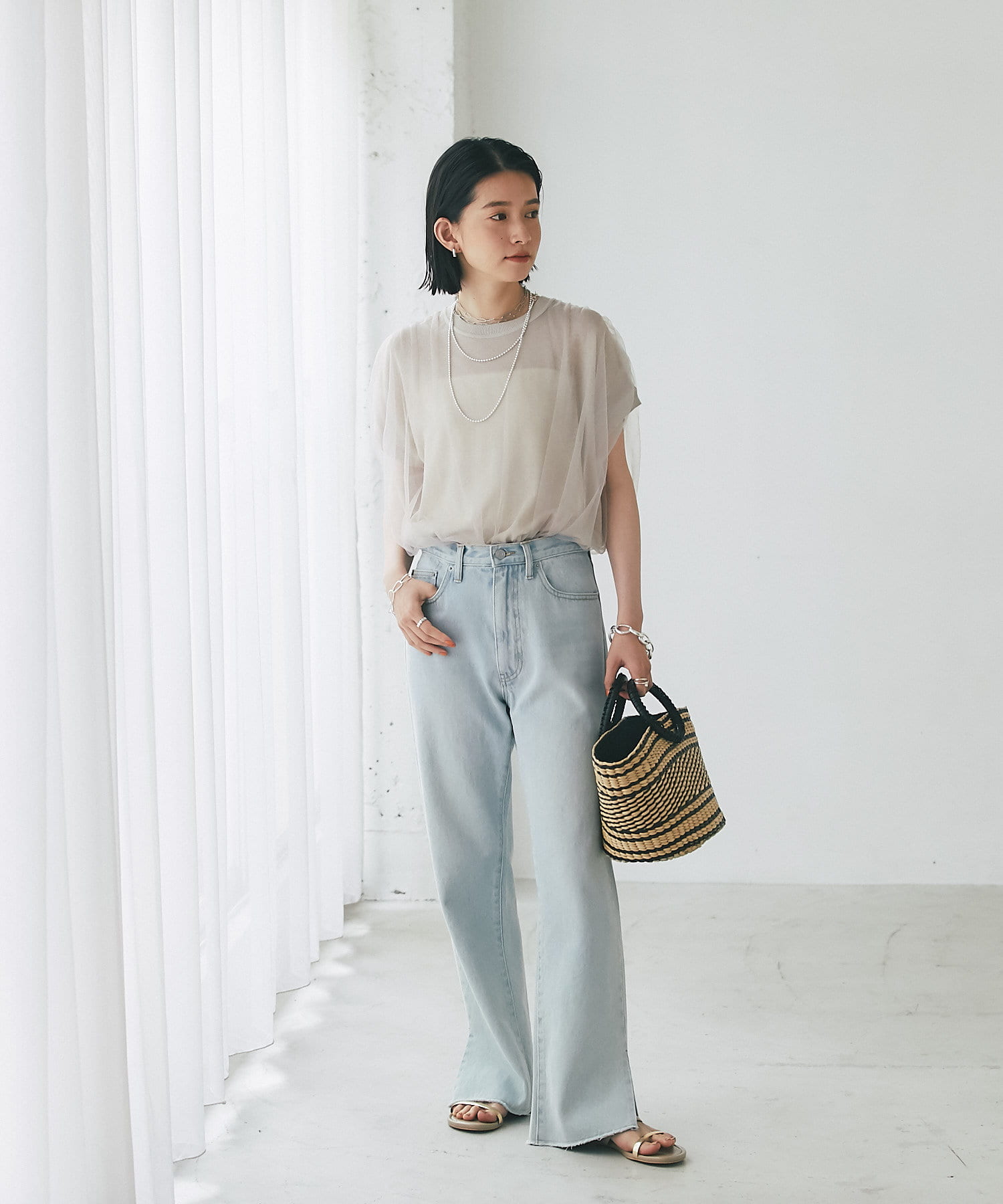 同系色の細身のパンツを合わせて、キレイめに合わせていただくのも素敵です。
