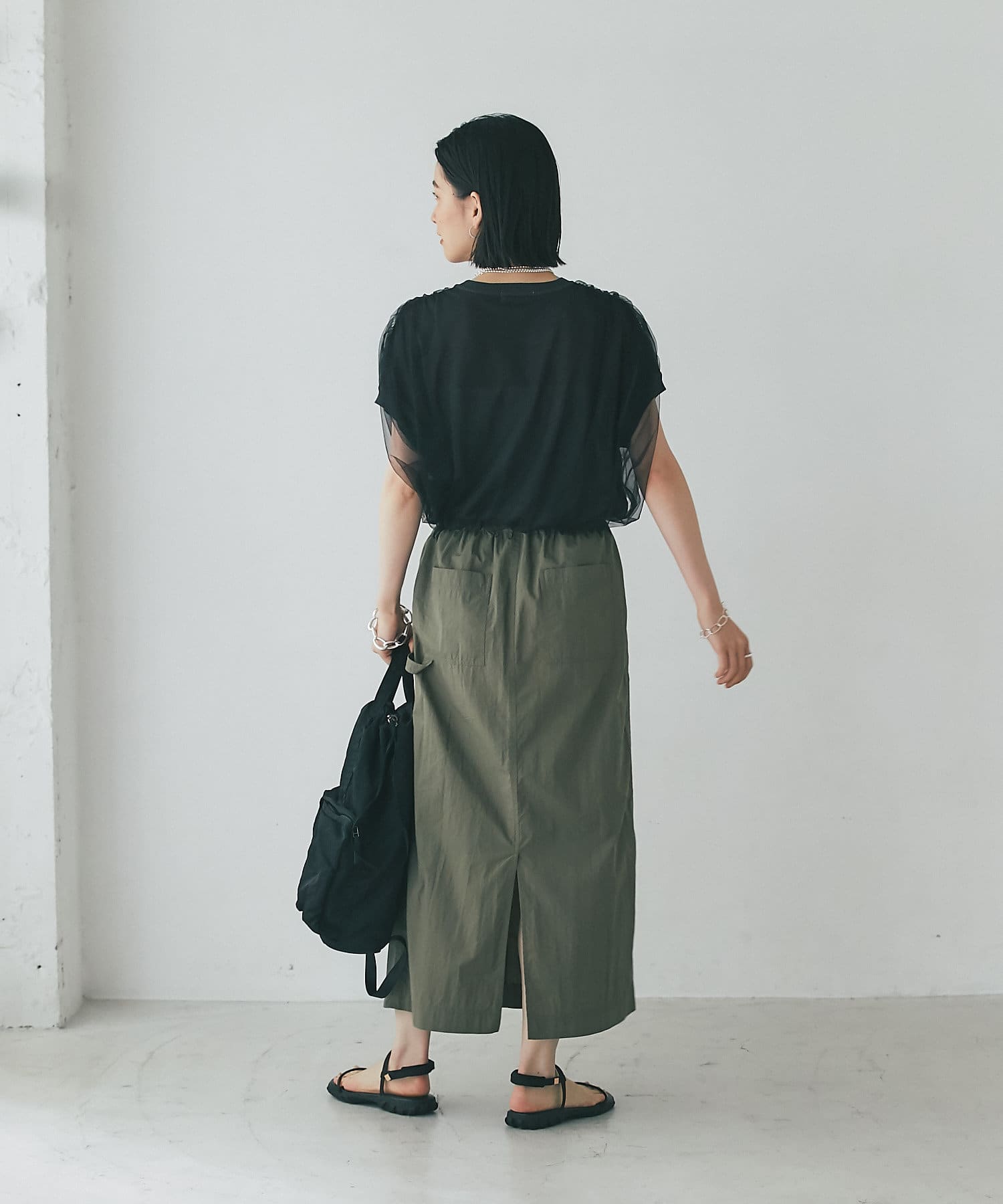 体のラインをふんわりとカバーしてくれるチュールの効果で、華奢見えも狙えます。