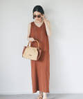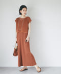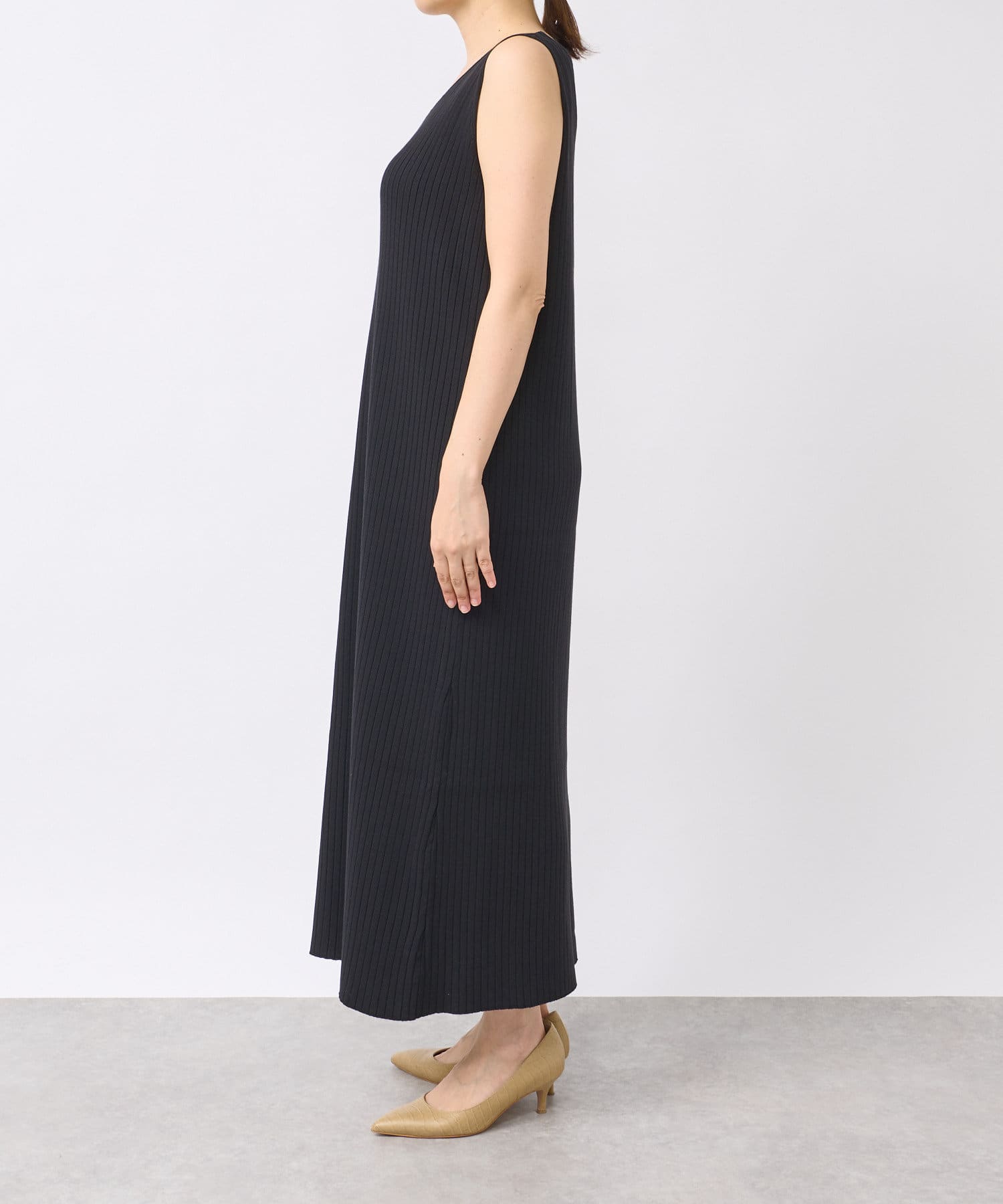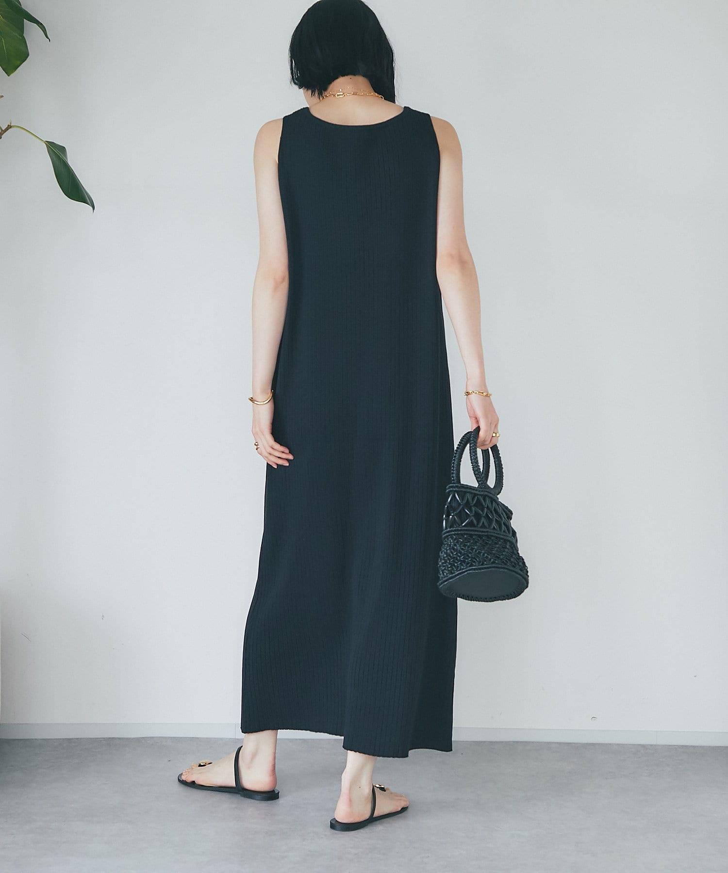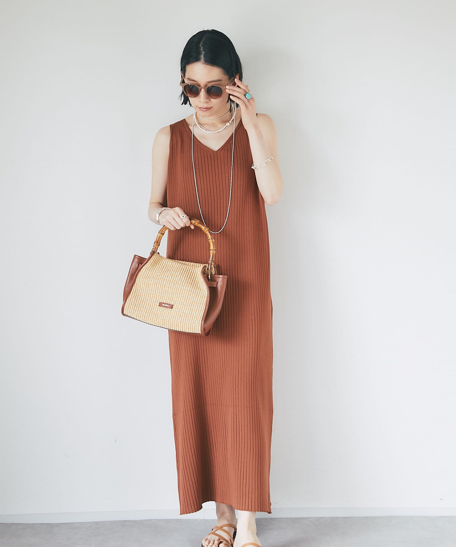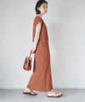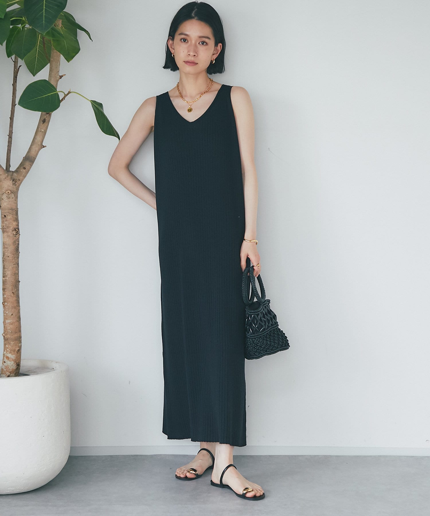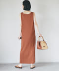 ワンピースは落ち感のある滑らかなリブ素材のため、カジュアルになりすぎずさらりと着ていただけます。