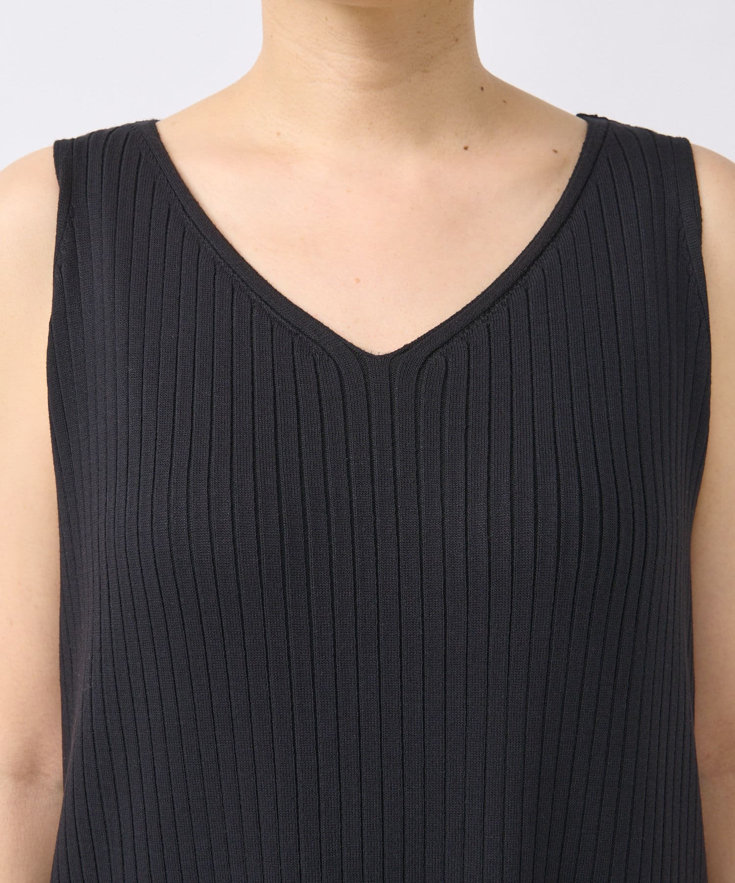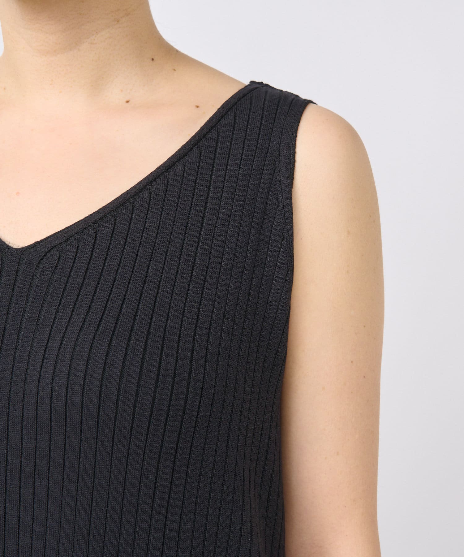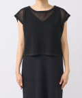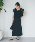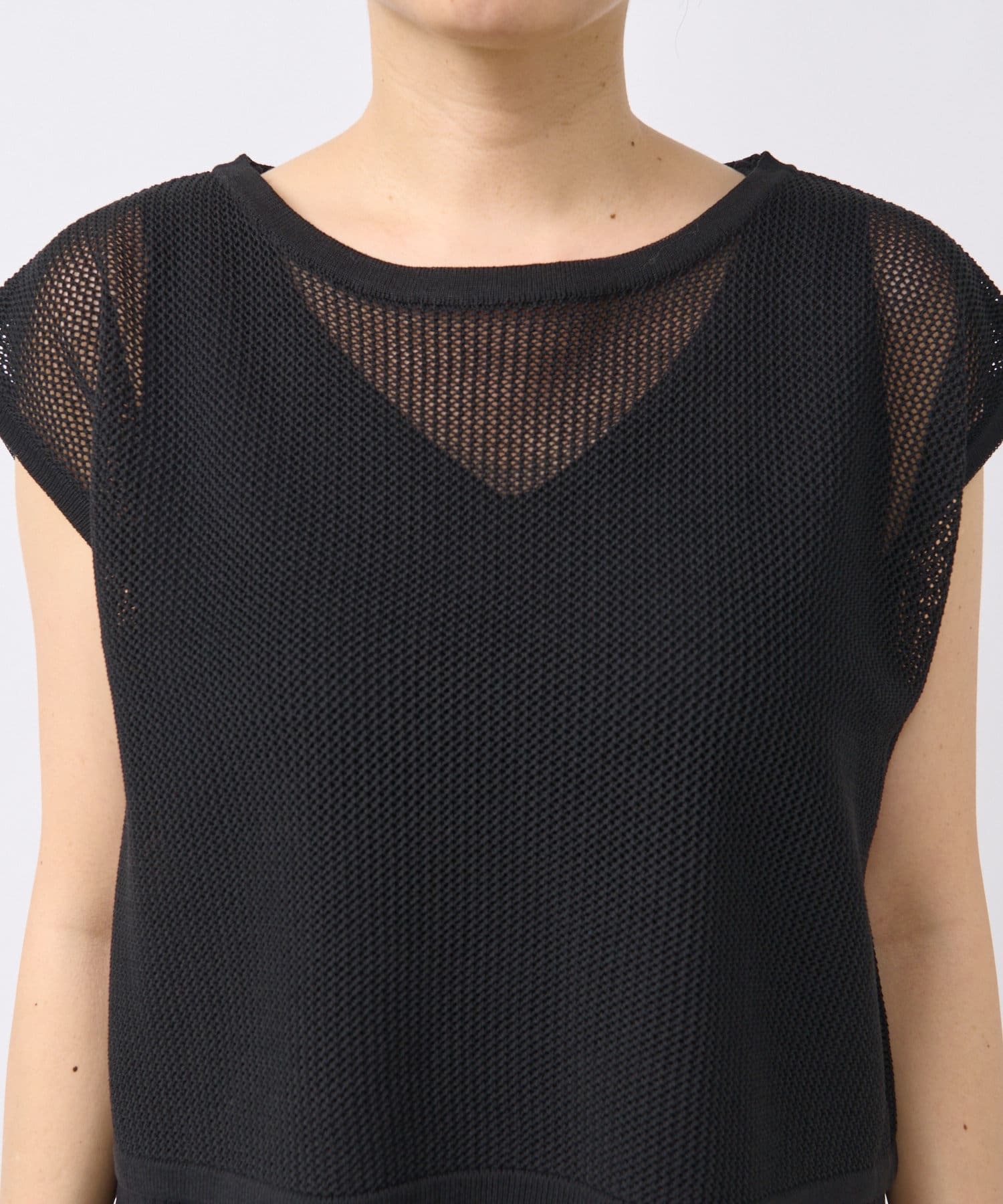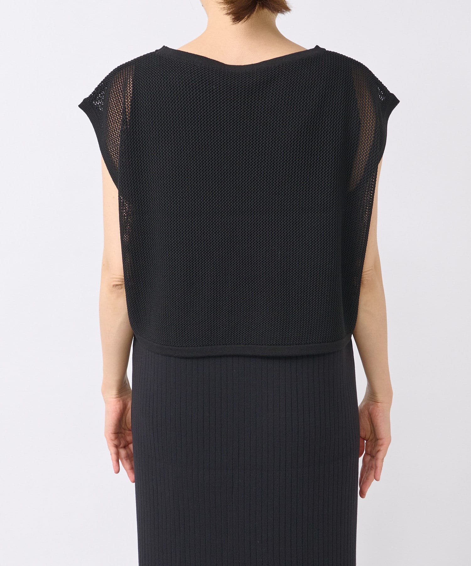 Vネックの胸元が涼しげなノースリーブワンピースと、今年らしいメッシュニットがセットになったアイテム。