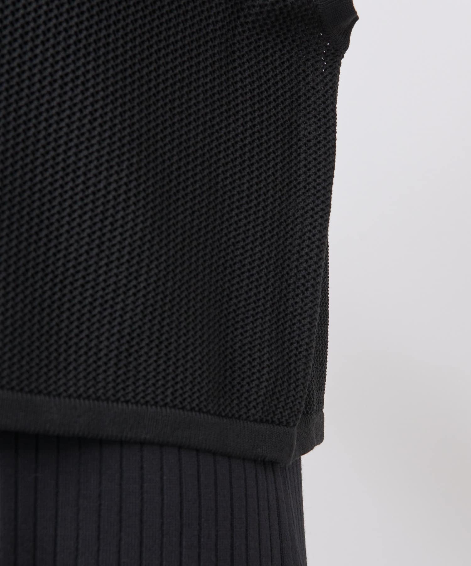 【楽ちんキレイを叶える】メッシュニット+リブワンピースセット
