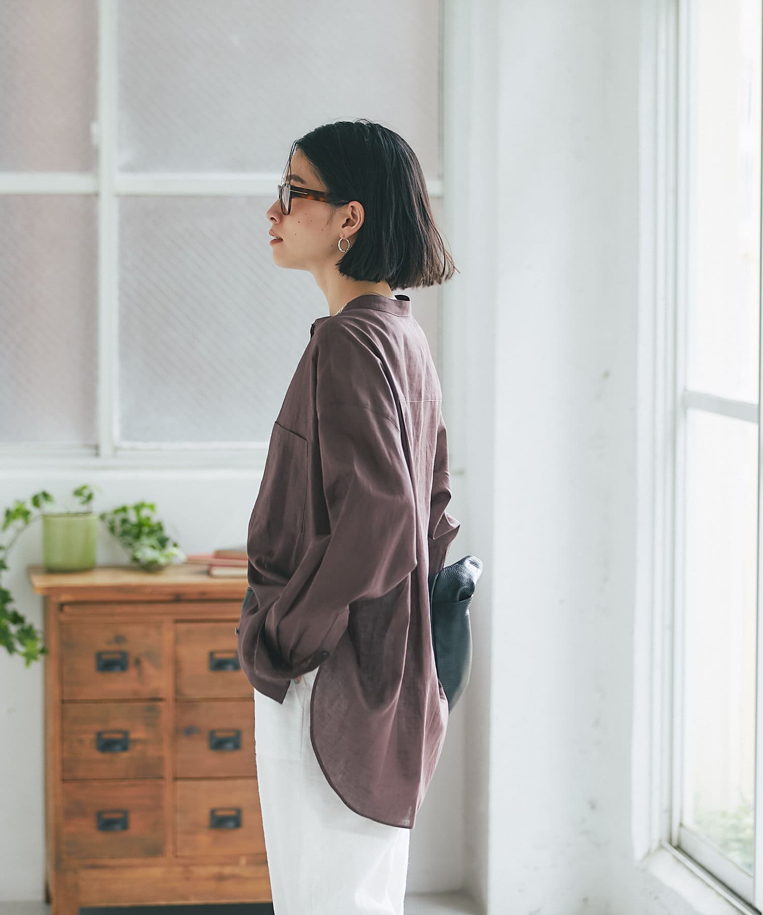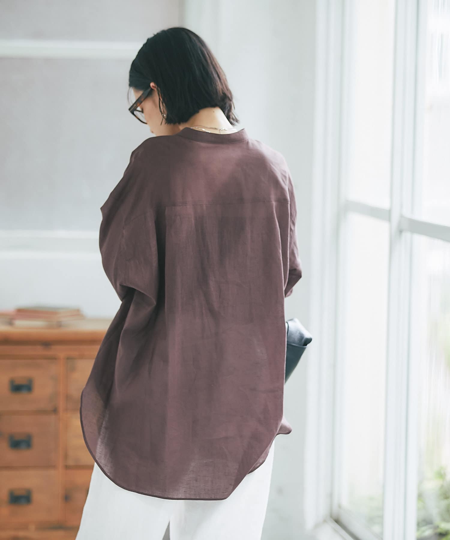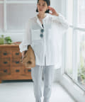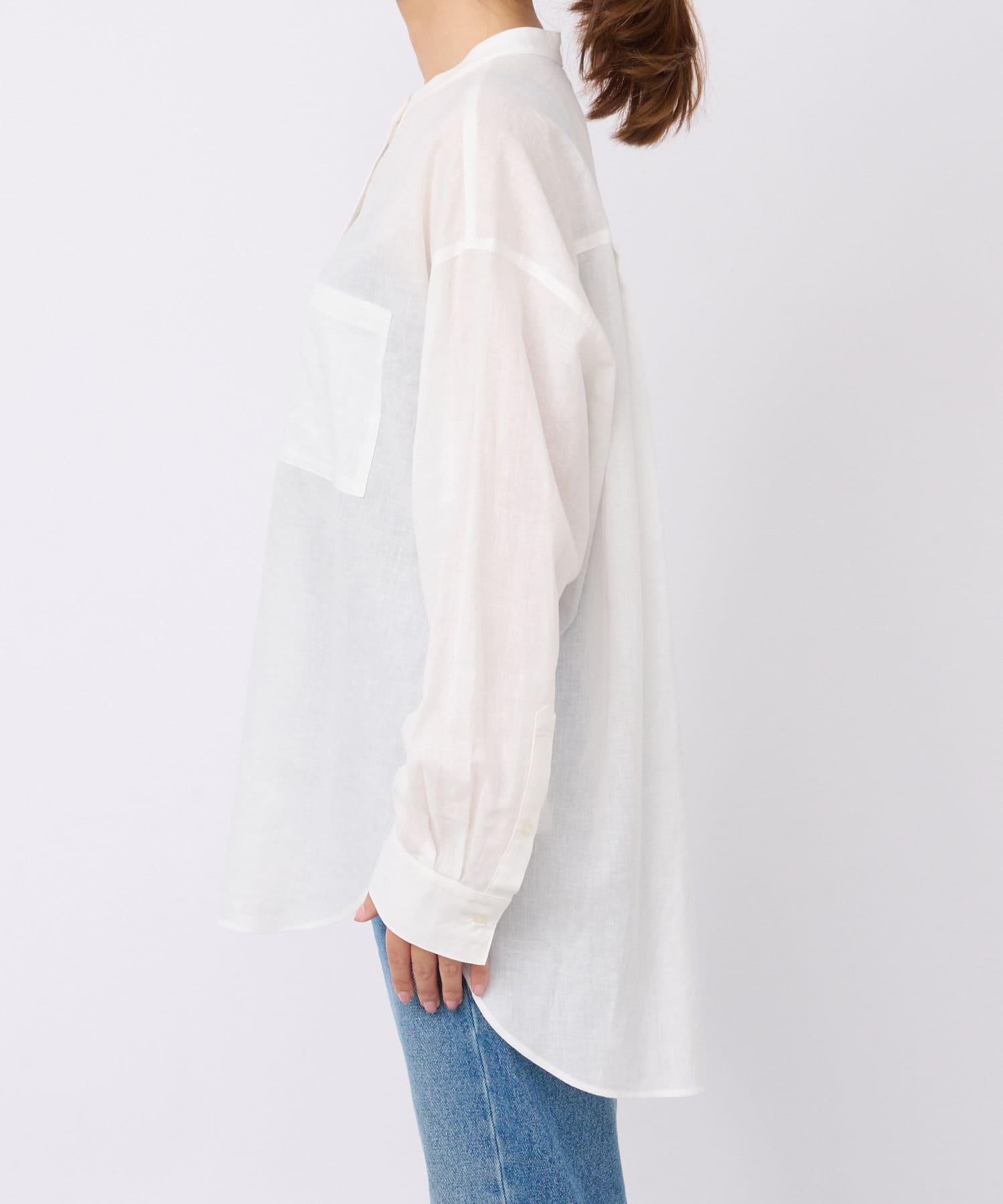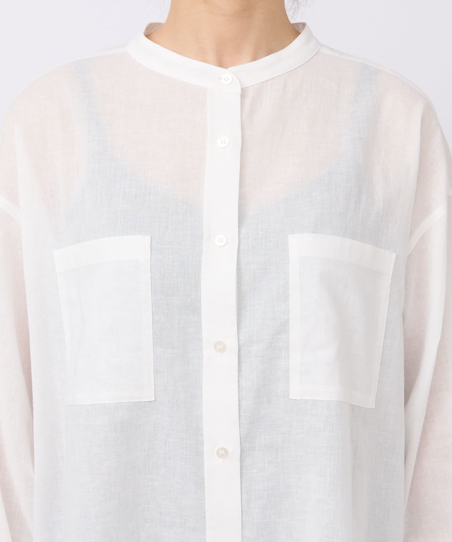 サラッとした素材とすっきりとしたバンドカラーがナチュラルすぎない印象で様々な場面でお使いいただけるアイテムです。