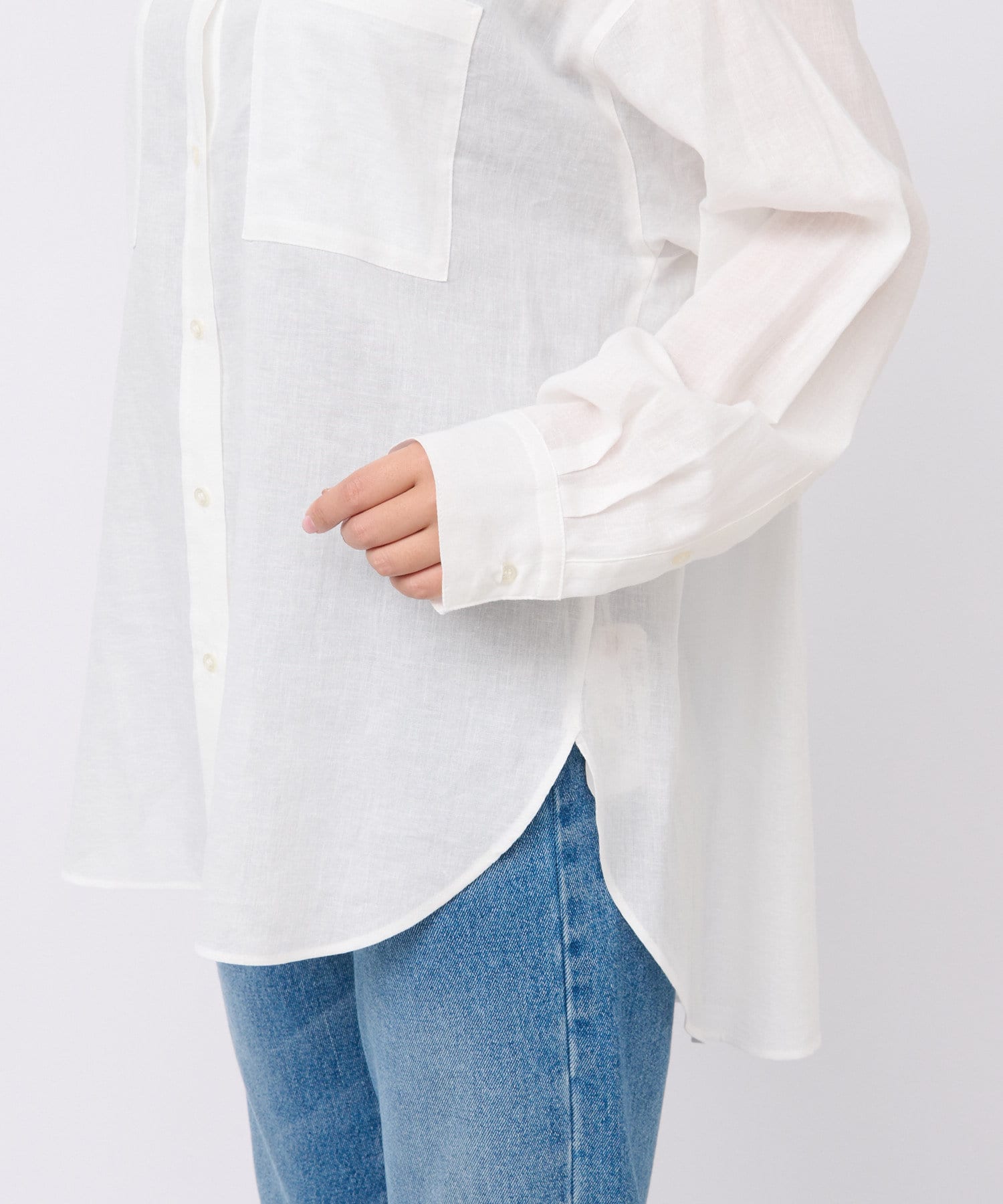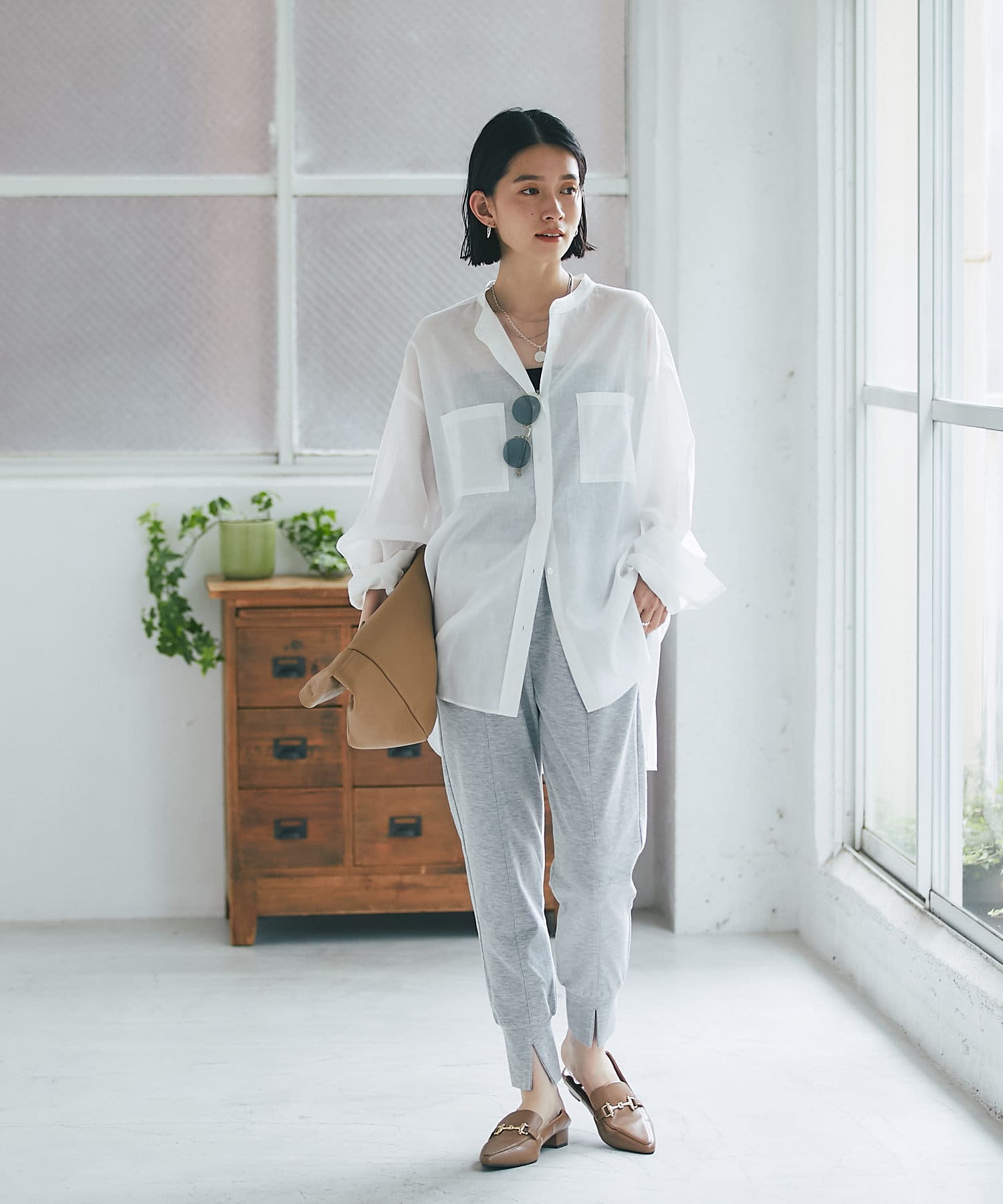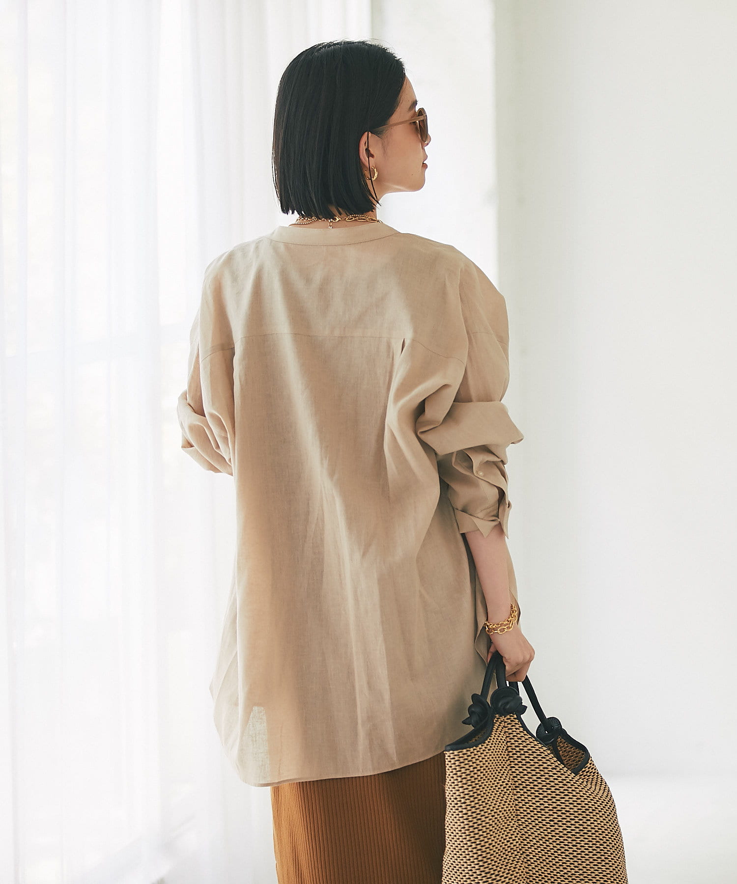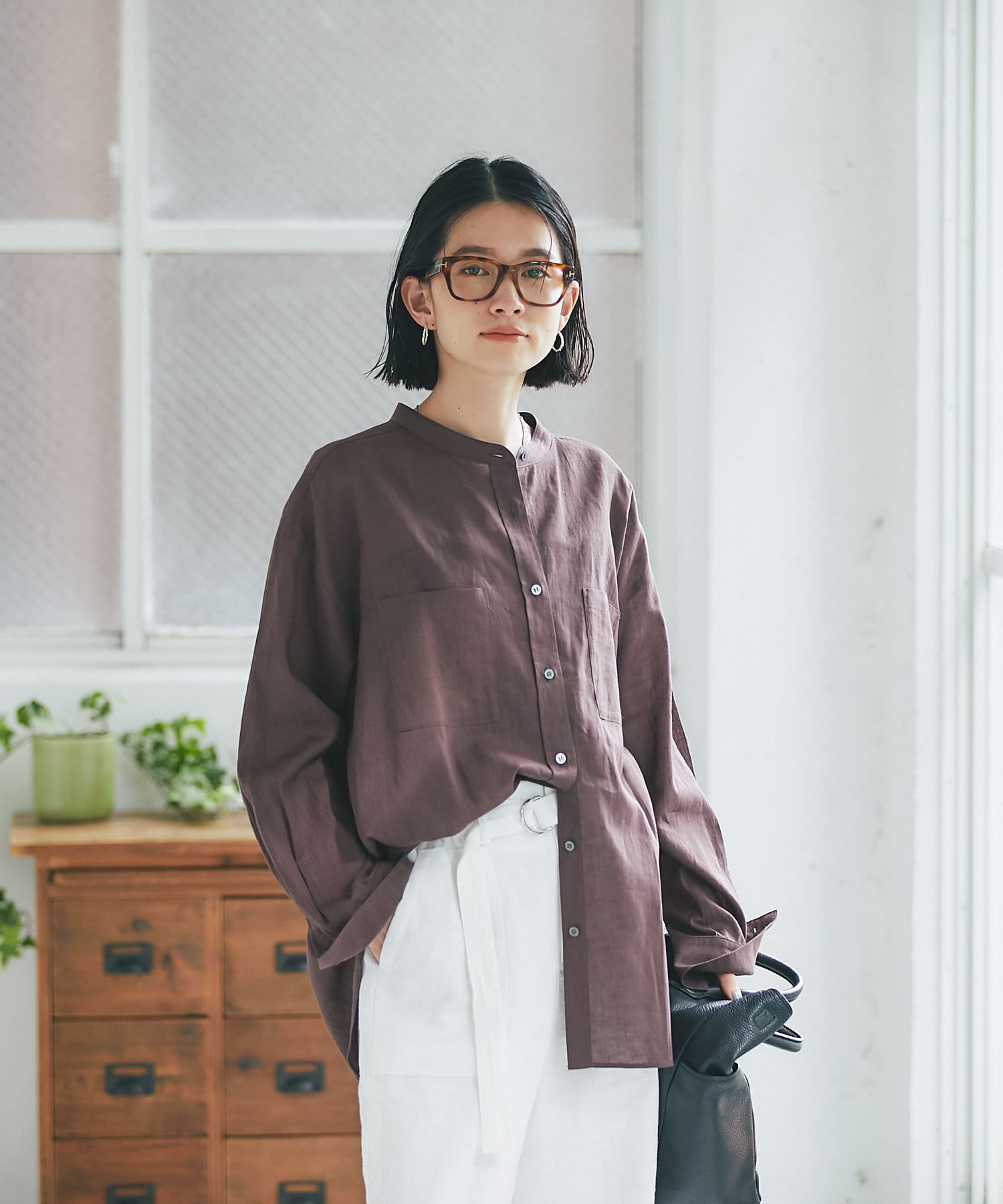 サラッとした素材とすっきりとしたバンドカラーがナチュラルすぎない印象で様々な場面でお使いいただけるアイテムです。