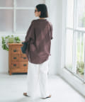 【すっきりシルエット】バンドカラー綿麻シャツ