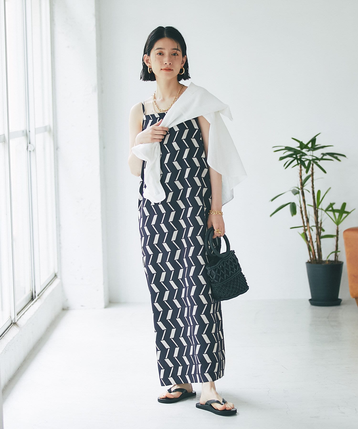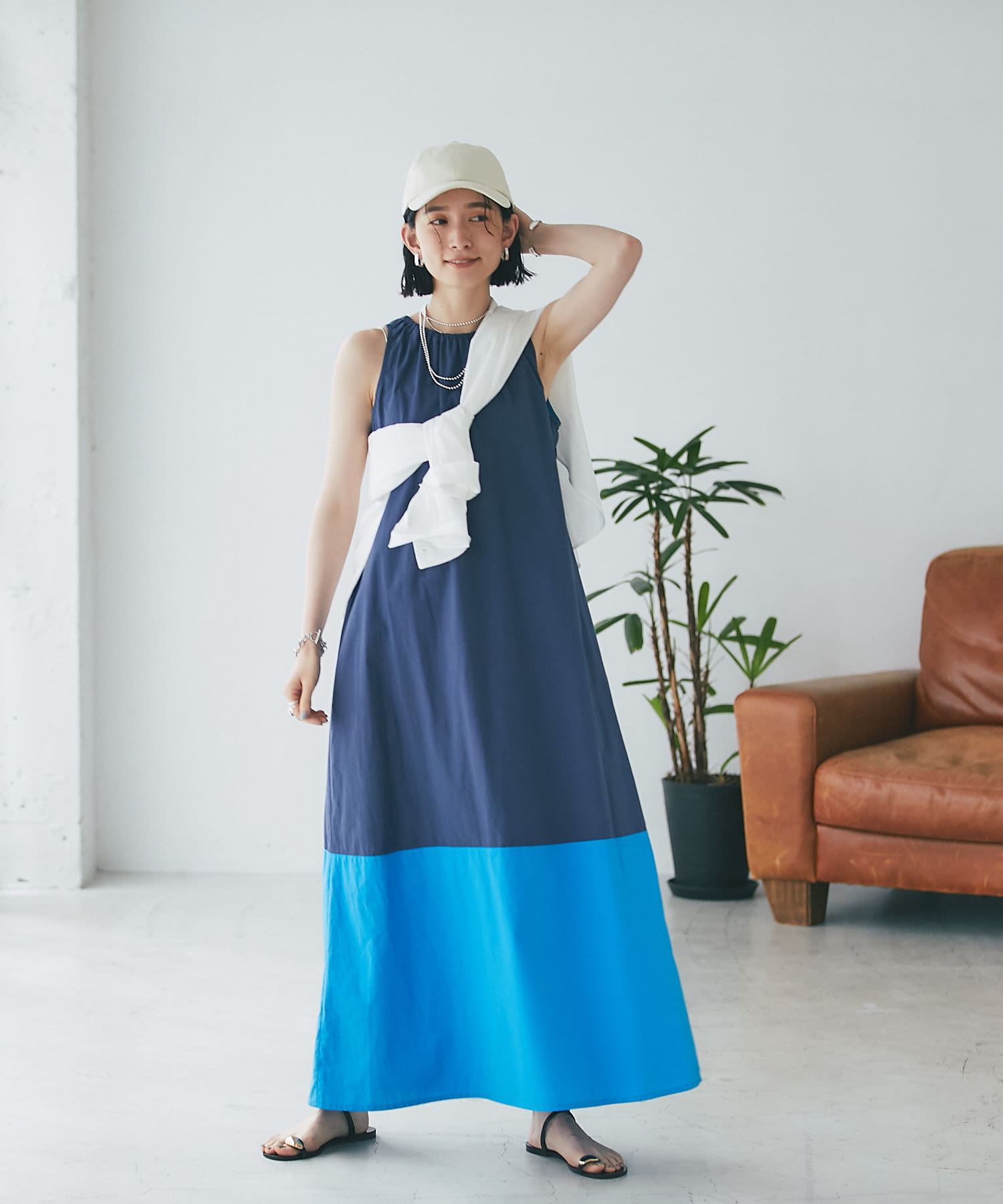 ボトムのボリュームに合わせてウエストはイン・アウトどちらでもお召しいただけるデザイン。