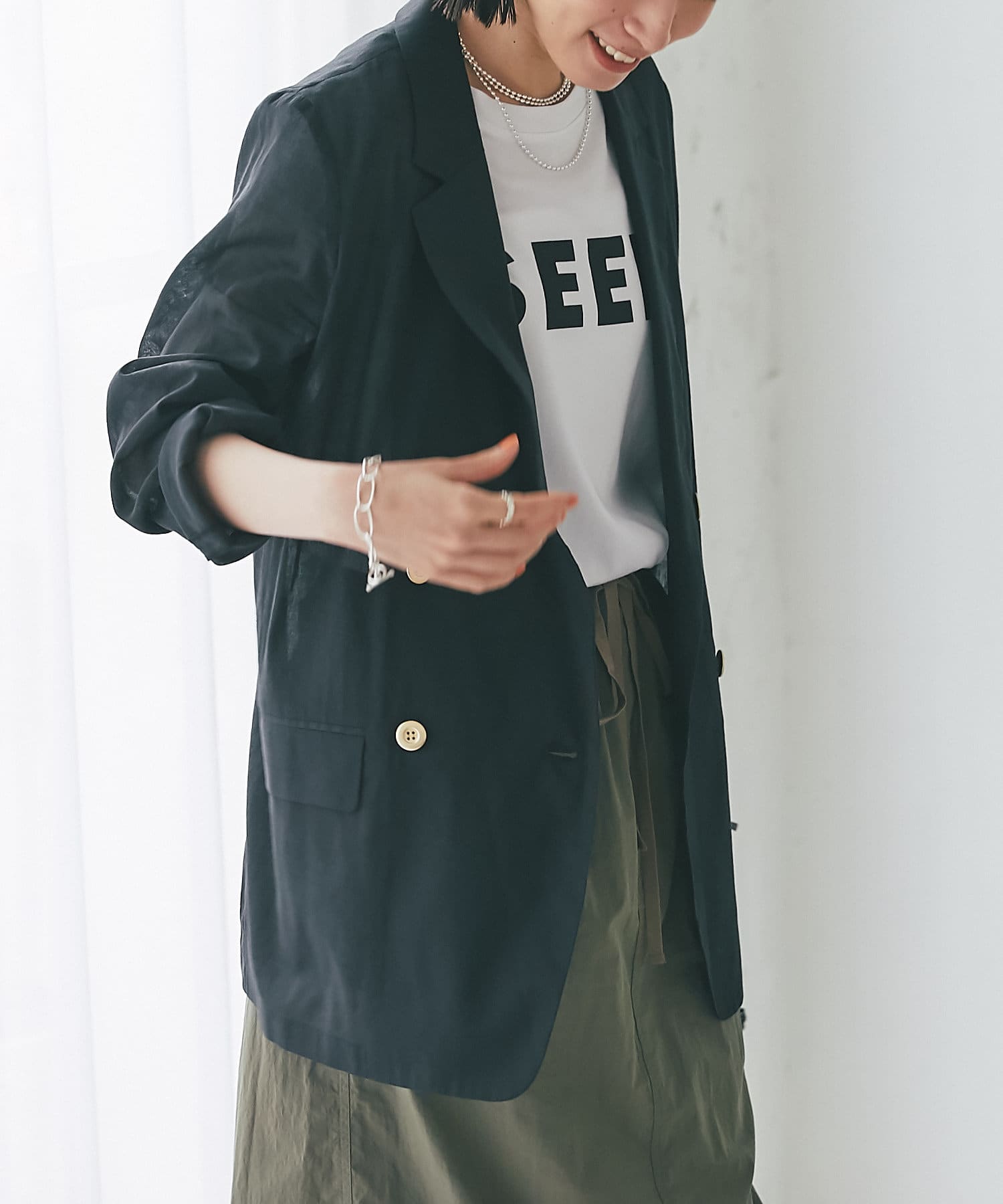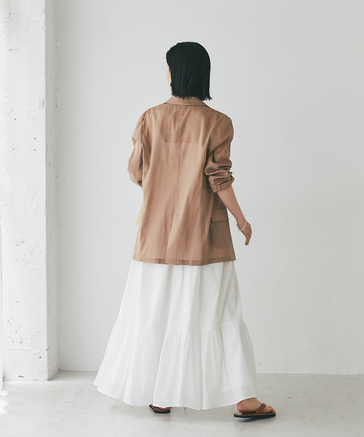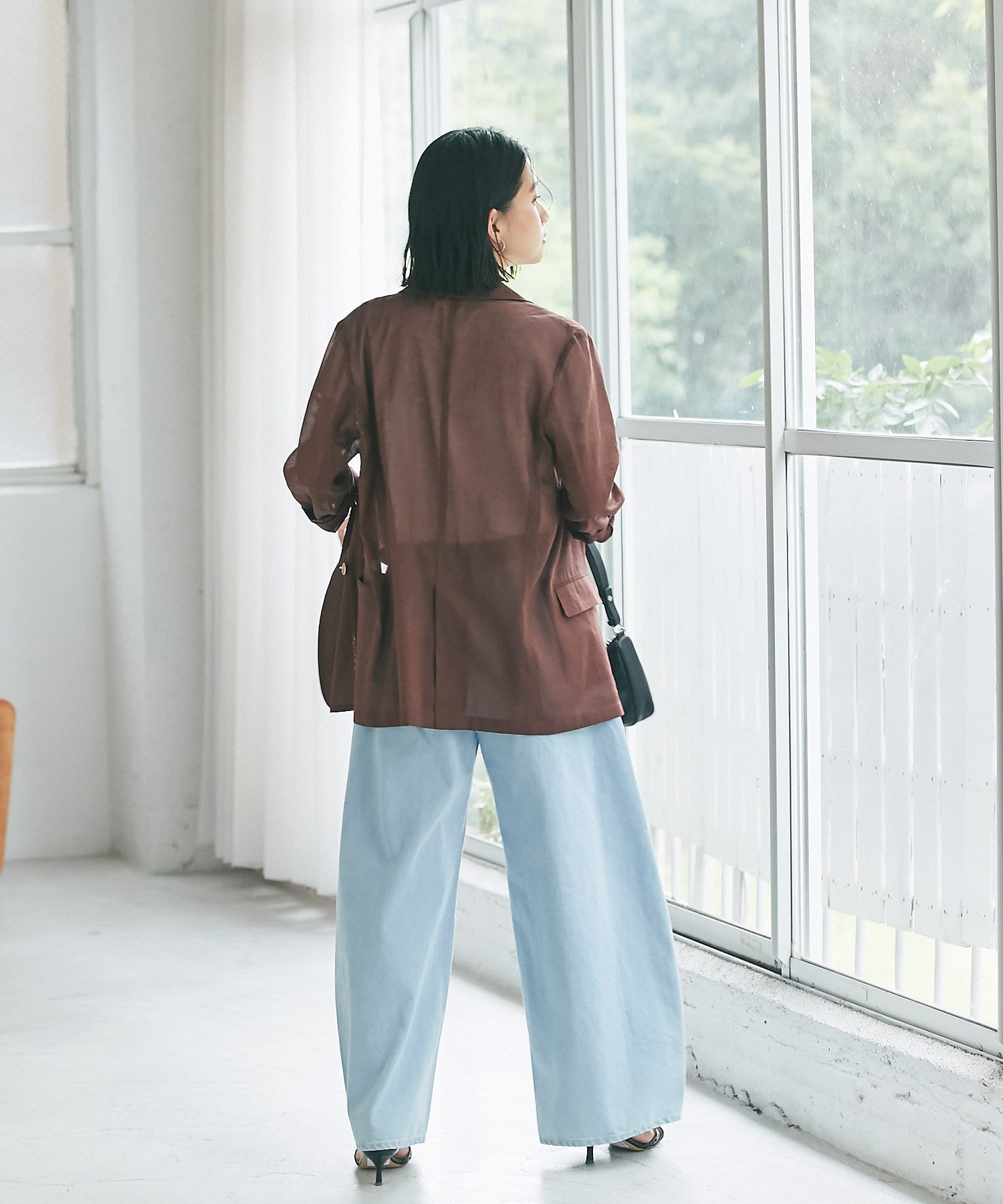 ⇒シアー感のある薄手の生地のため、真夏の羽織としてもおすすめです。