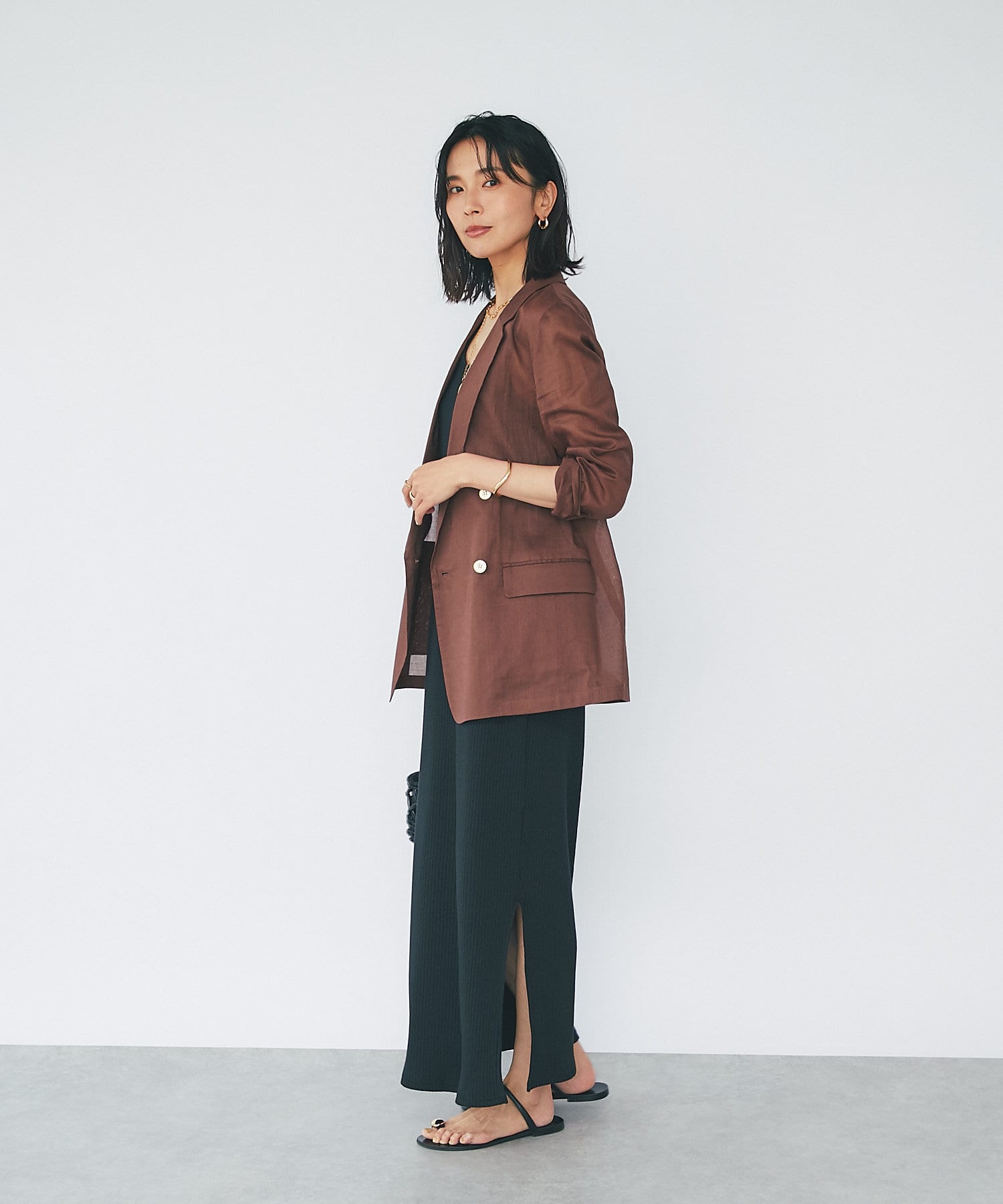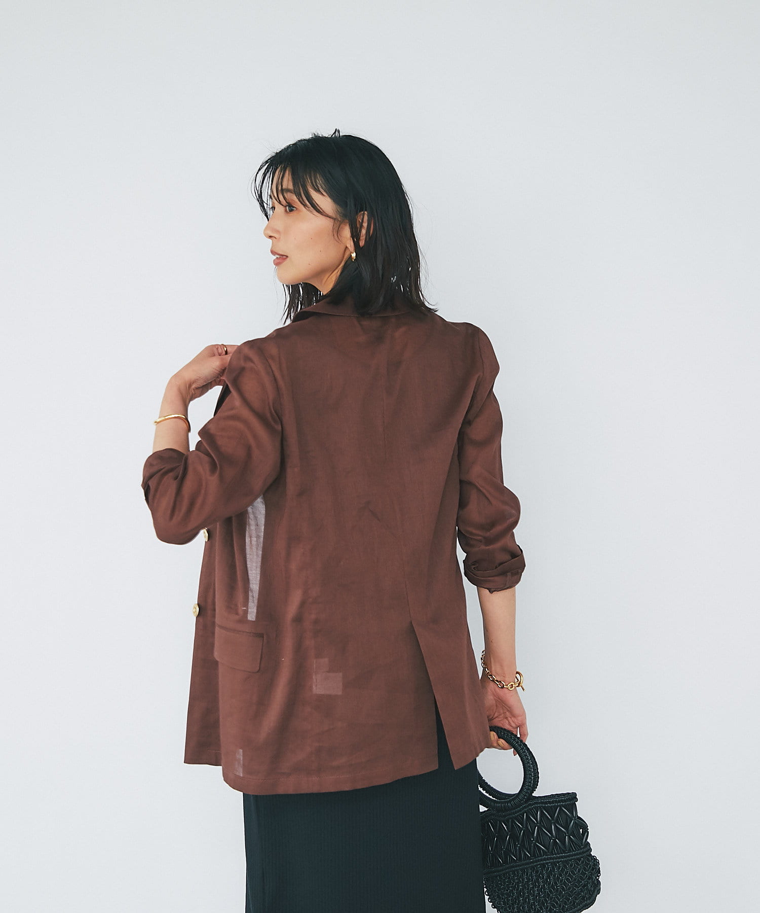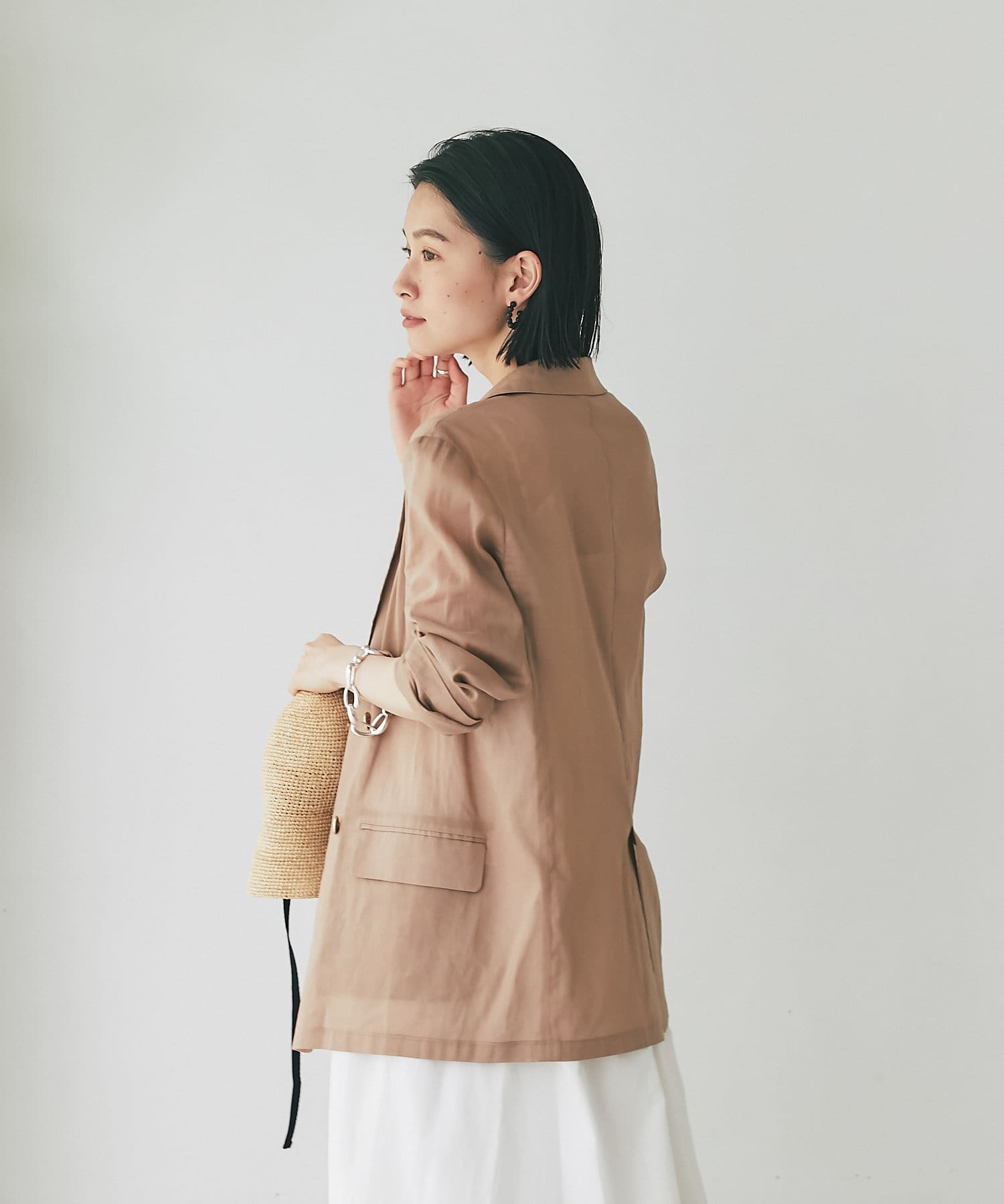 コットンとリネンの混合素材で裏地もないため暑い時期の羽織として活躍すること間違いなしのアイテムです。