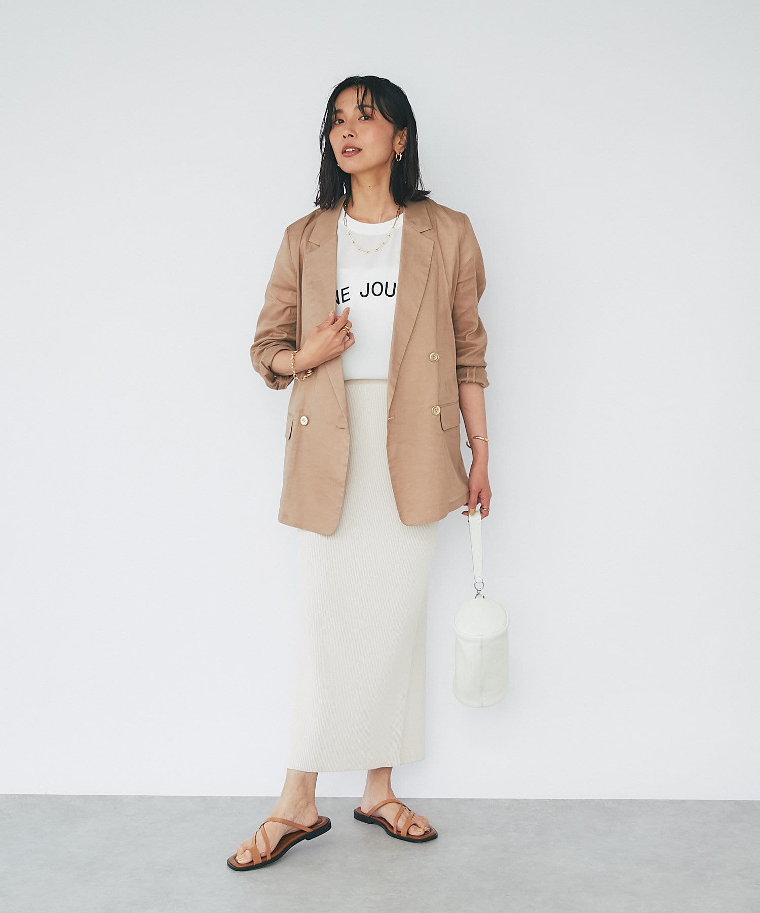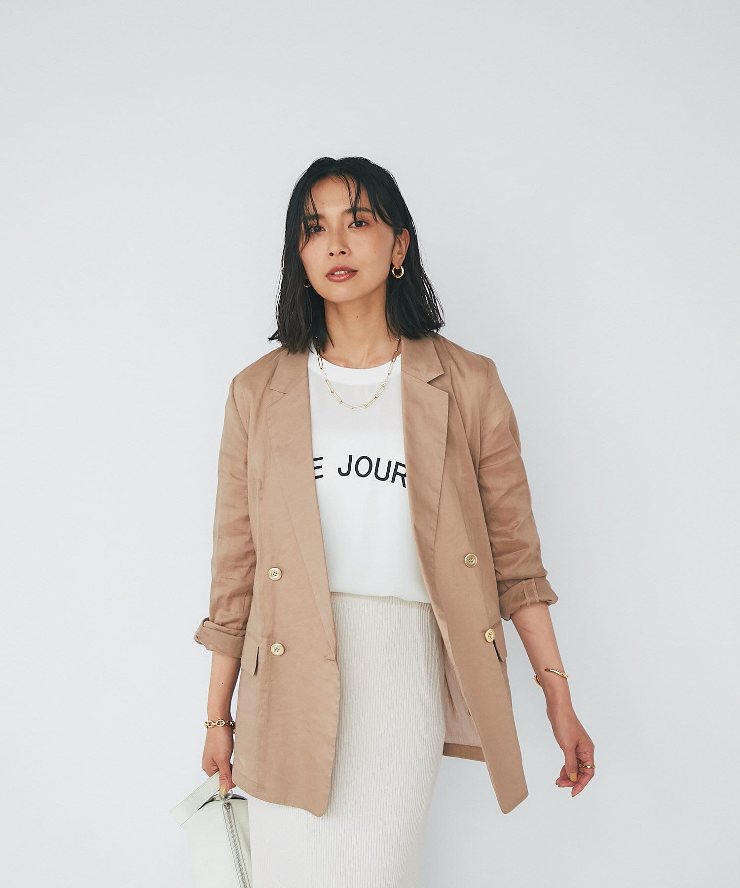 デニムやワンピースと合わせてカジュアル使いに、タイトスカートやテーパードパンツと合わせてオフィスにと様々なシーンで使い勝手のいいアイテムです。