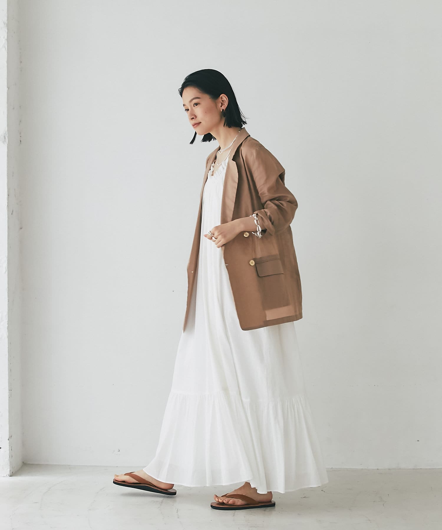 カットソーやワンピースの上にさっと羽織るのがおすすめ。