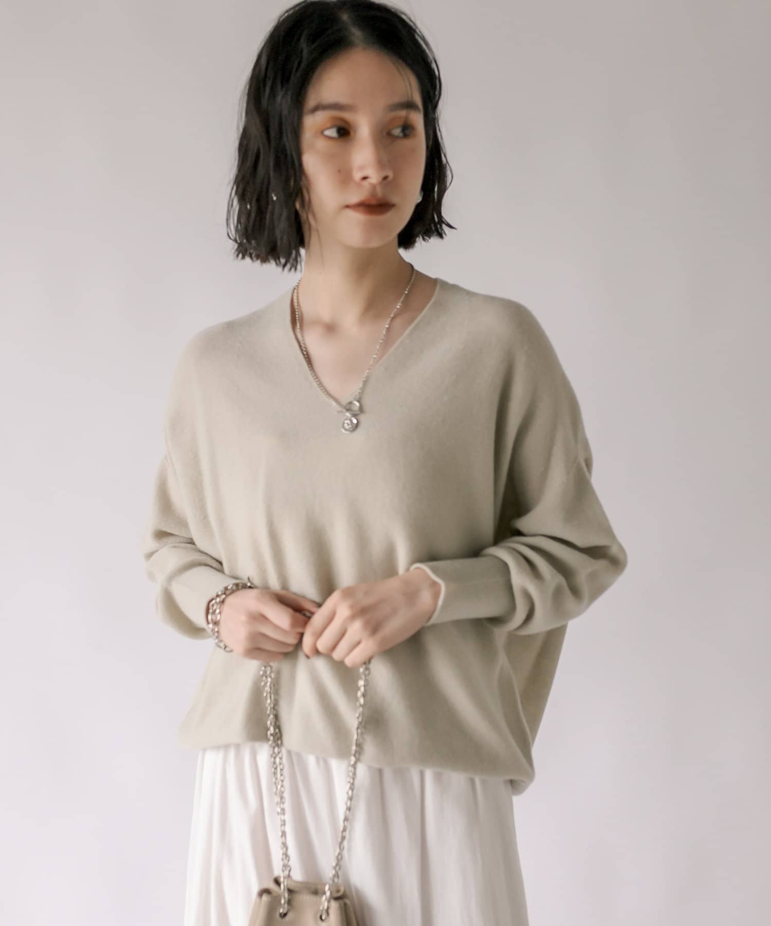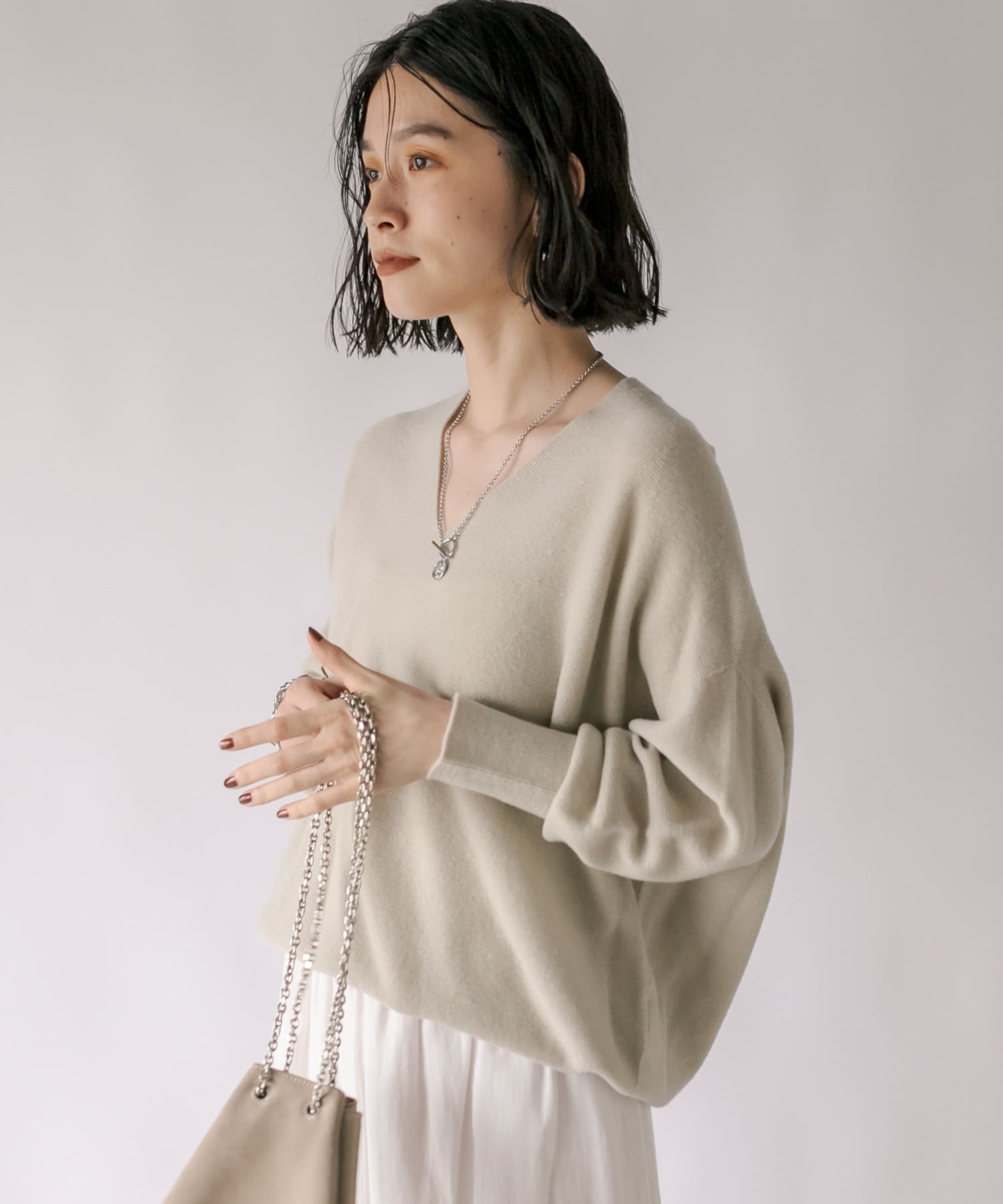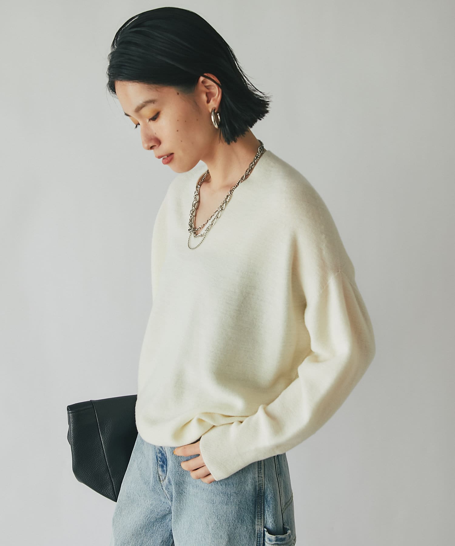 ベーシックでシンプルなデザインのため、シーンを問わず様々なボトムスとコーディネートしていただけるニット。