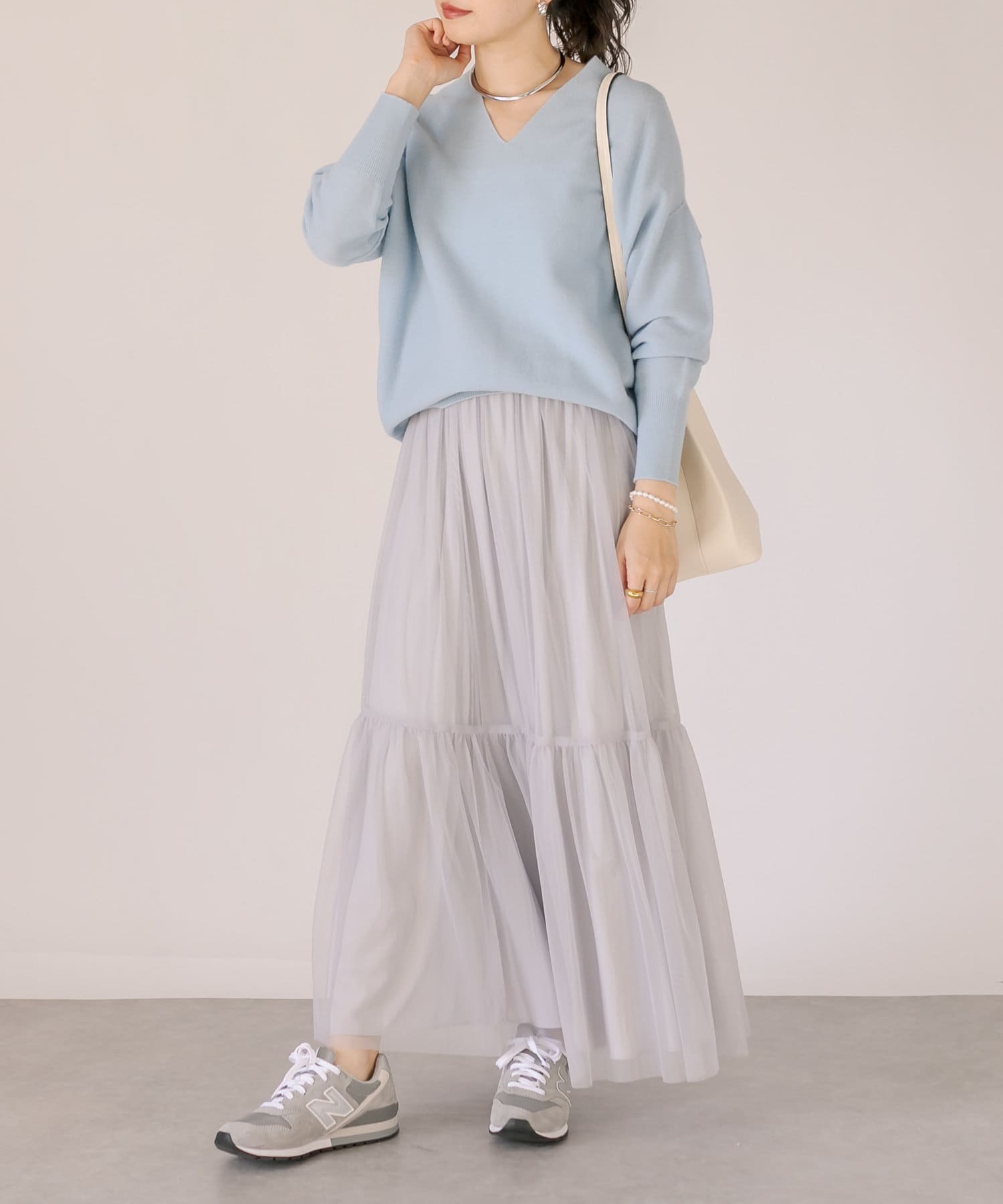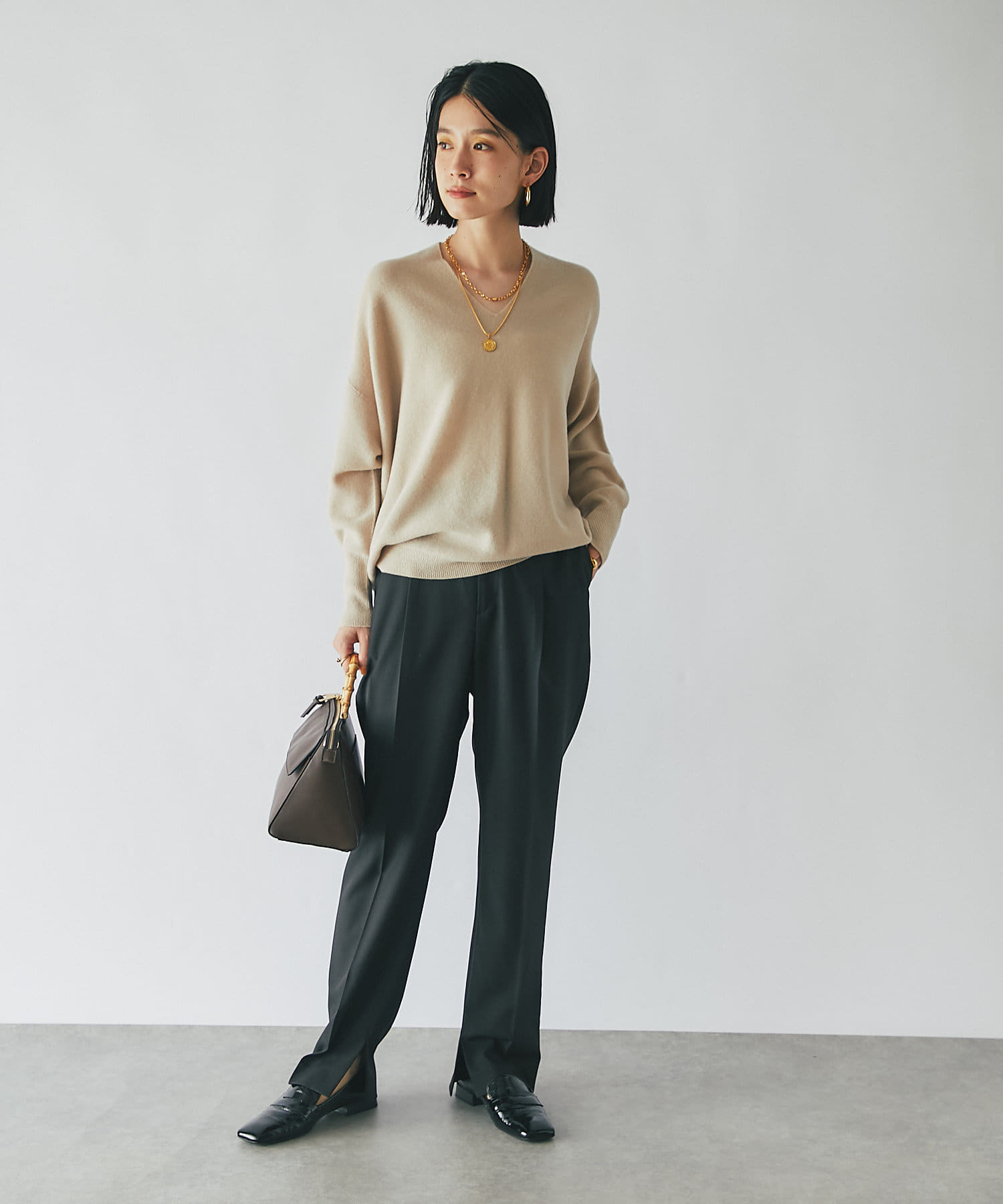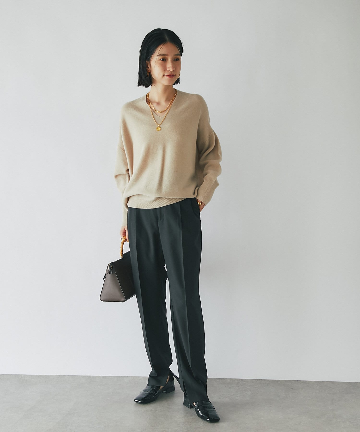 ベーシックでシンプルなデザインのため、シーンを問わず様々なボトムスとコーディネートしていただけるニット。