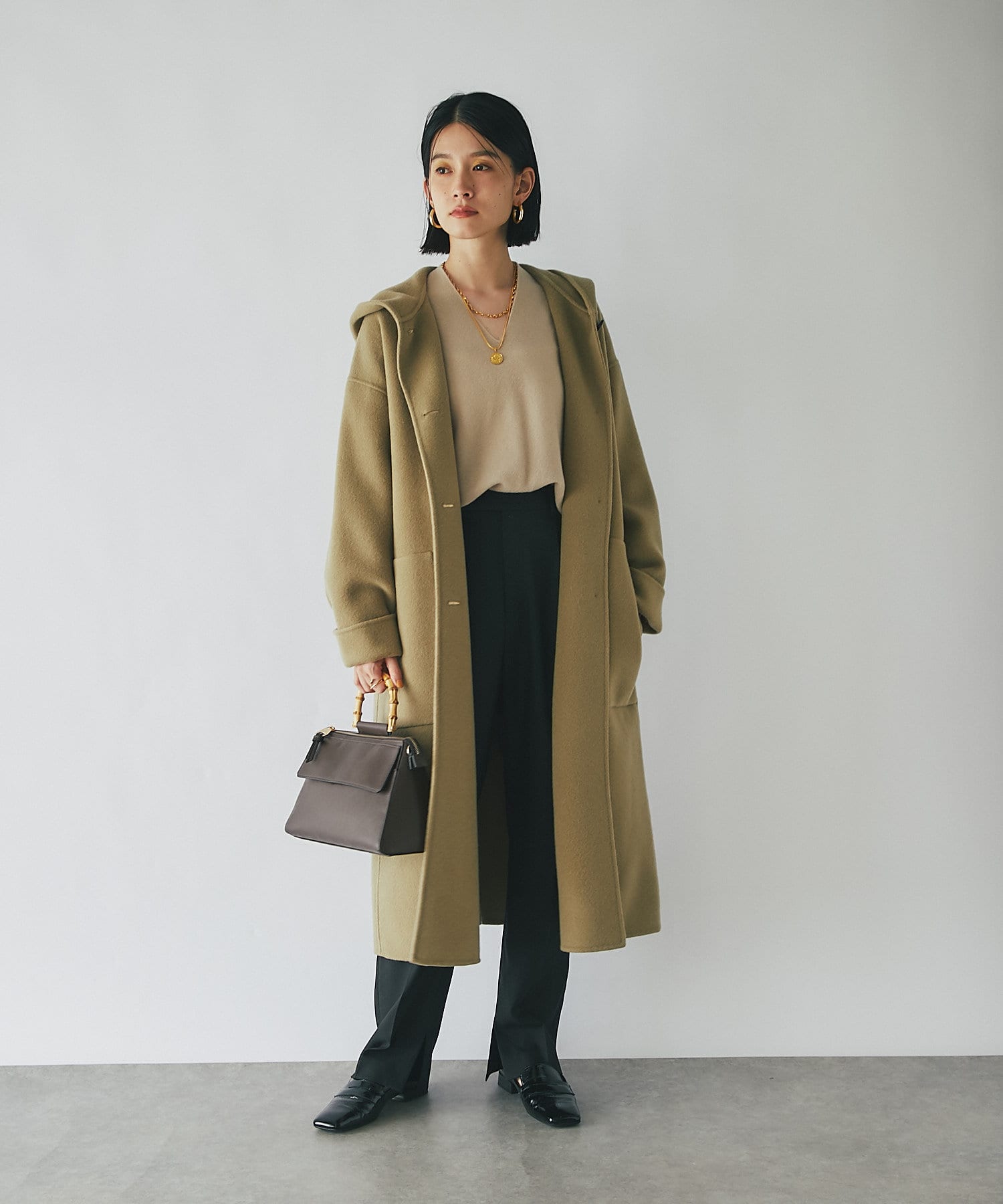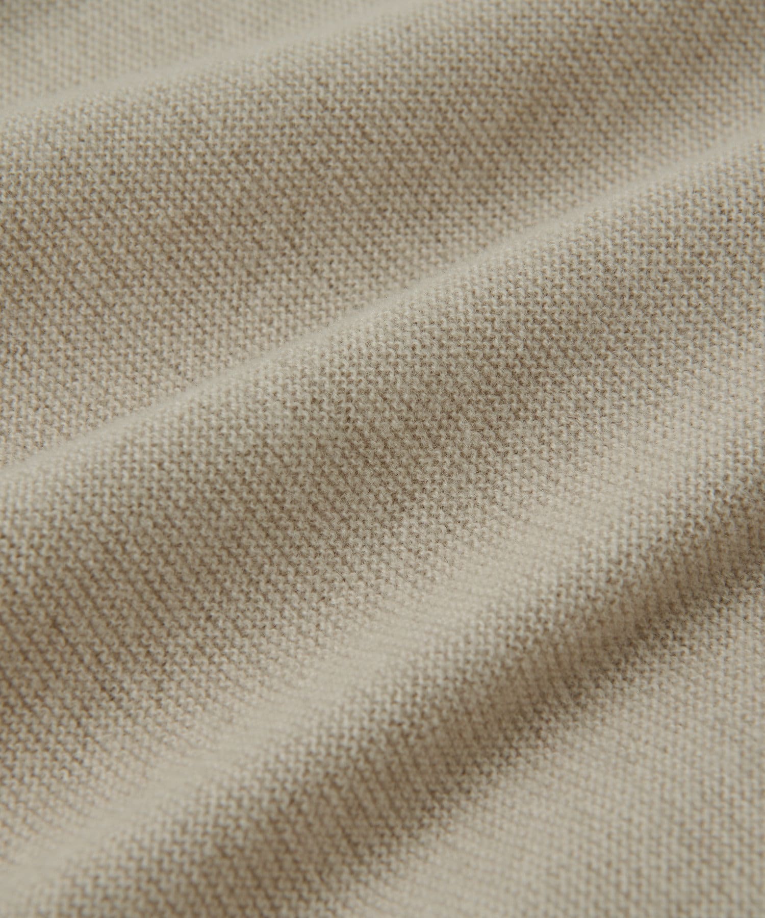 保温性の高いウール素材をしているため、軽く暖かな風合いと柔らかな着心地が魅力の一枚。