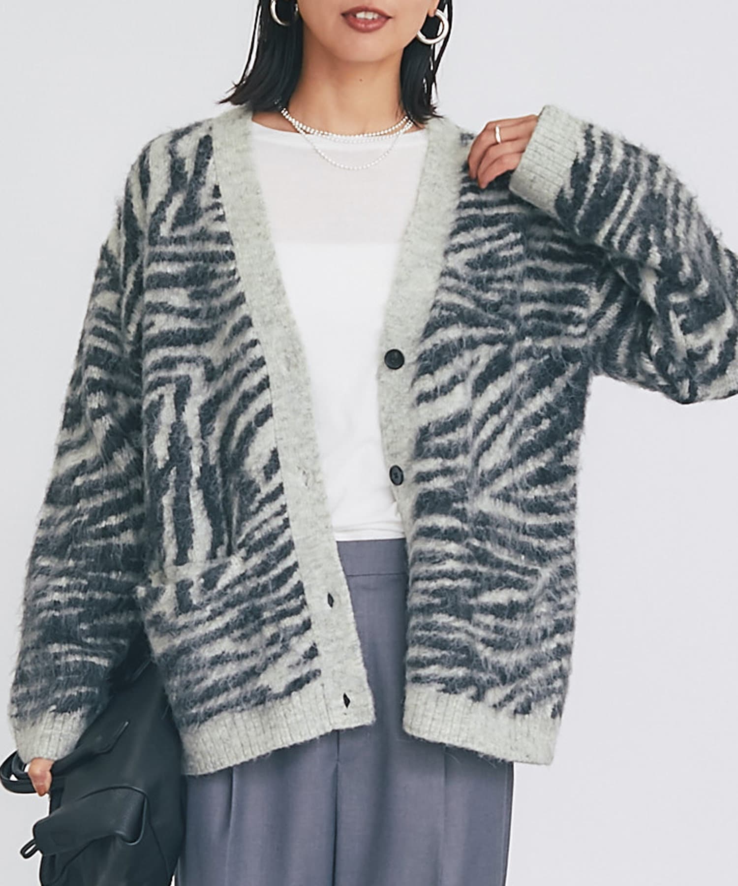 【トレンド感のあるスタイリングに】ゼブラルーズカーディガン