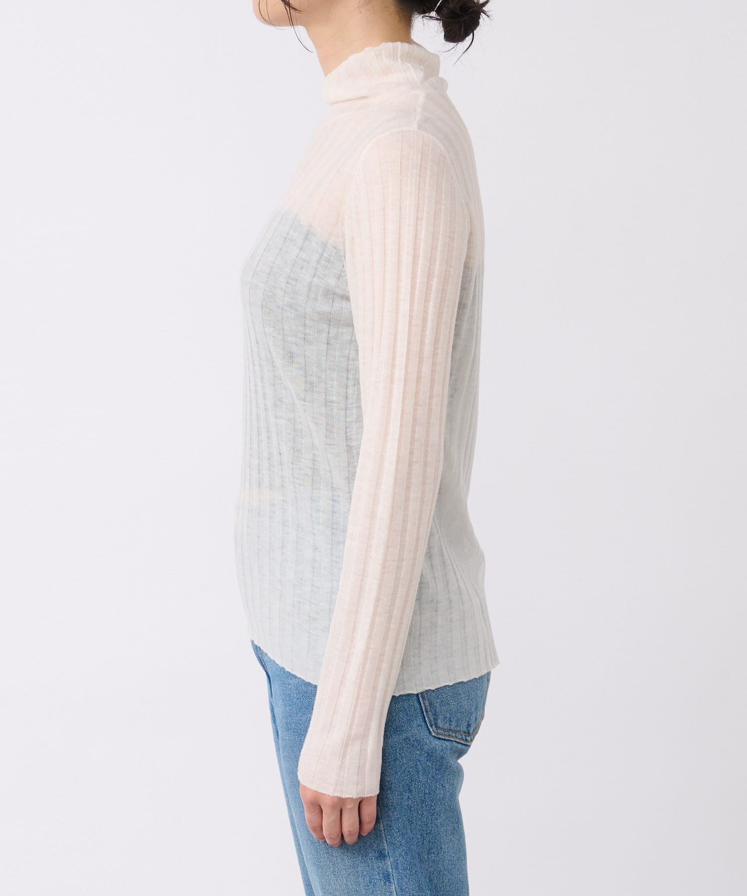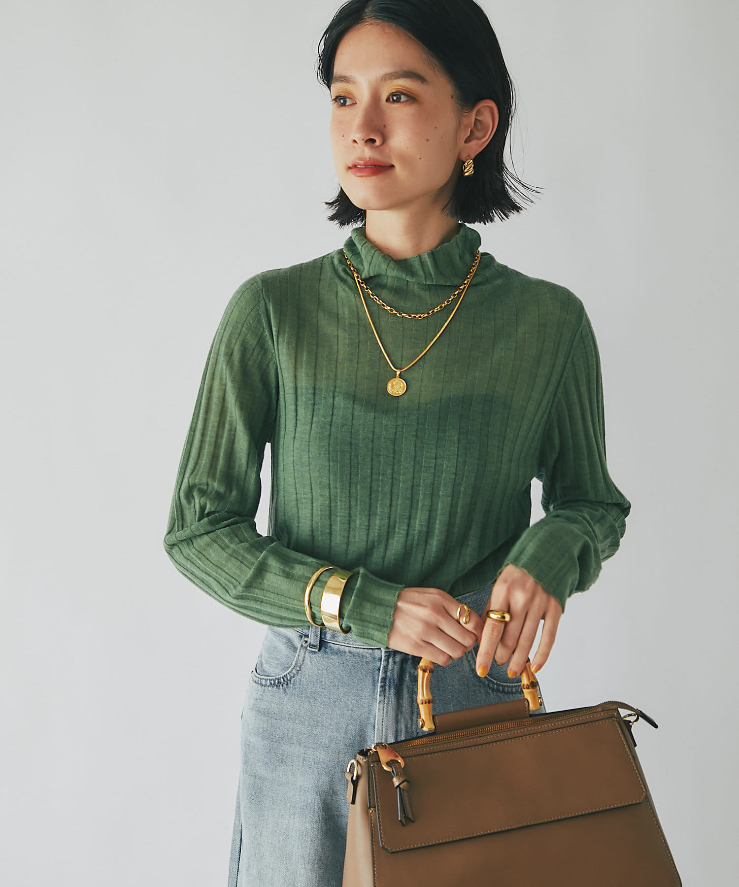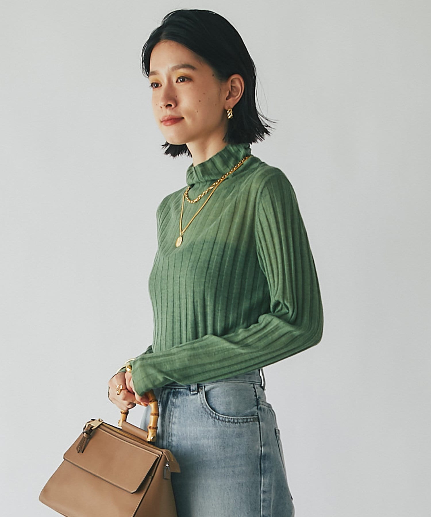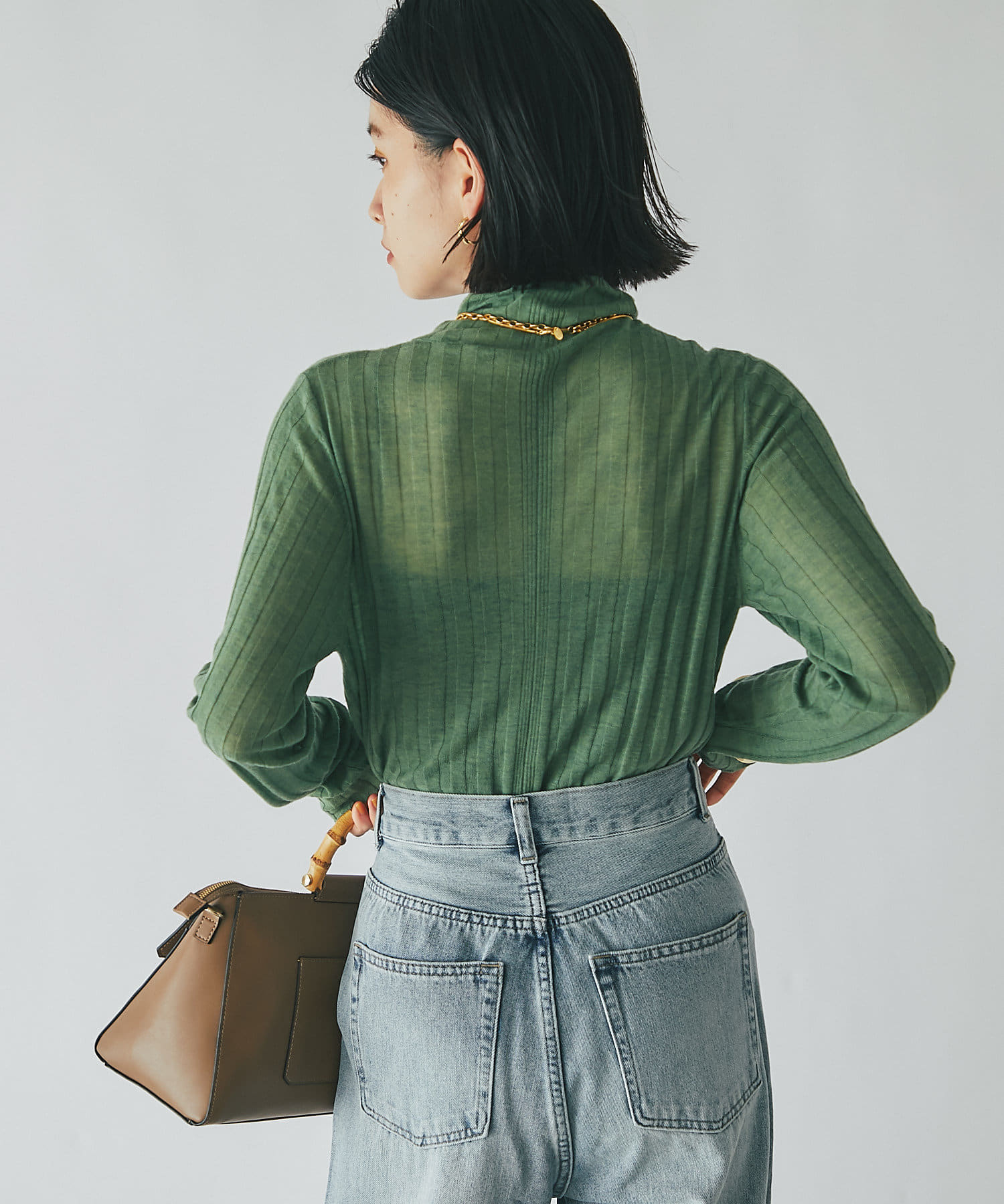 重ね着によるもたつきが苦手な方にもおすすめのシアーニットです。