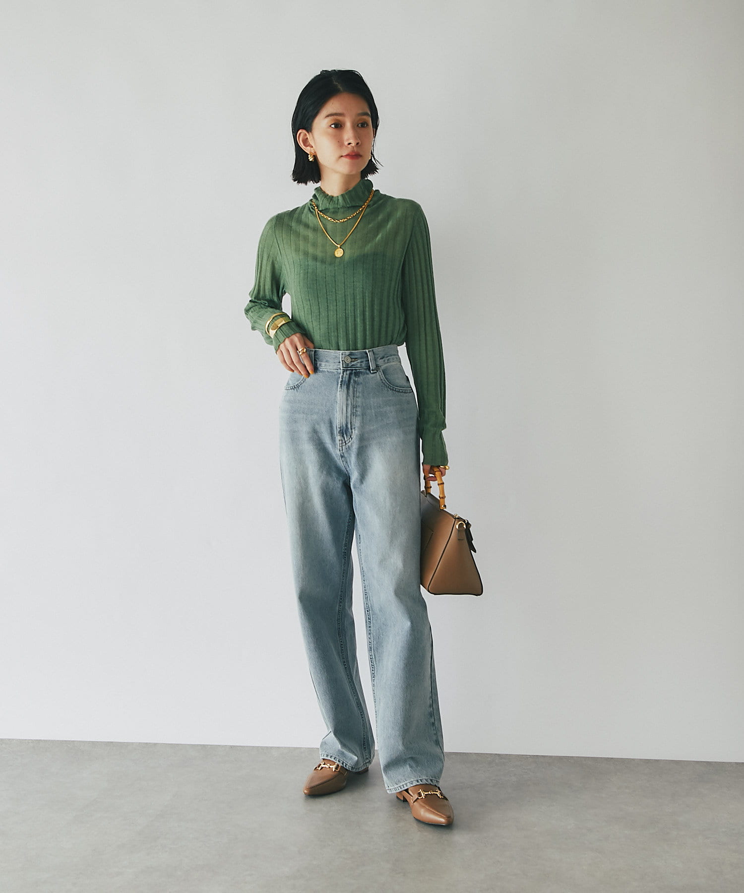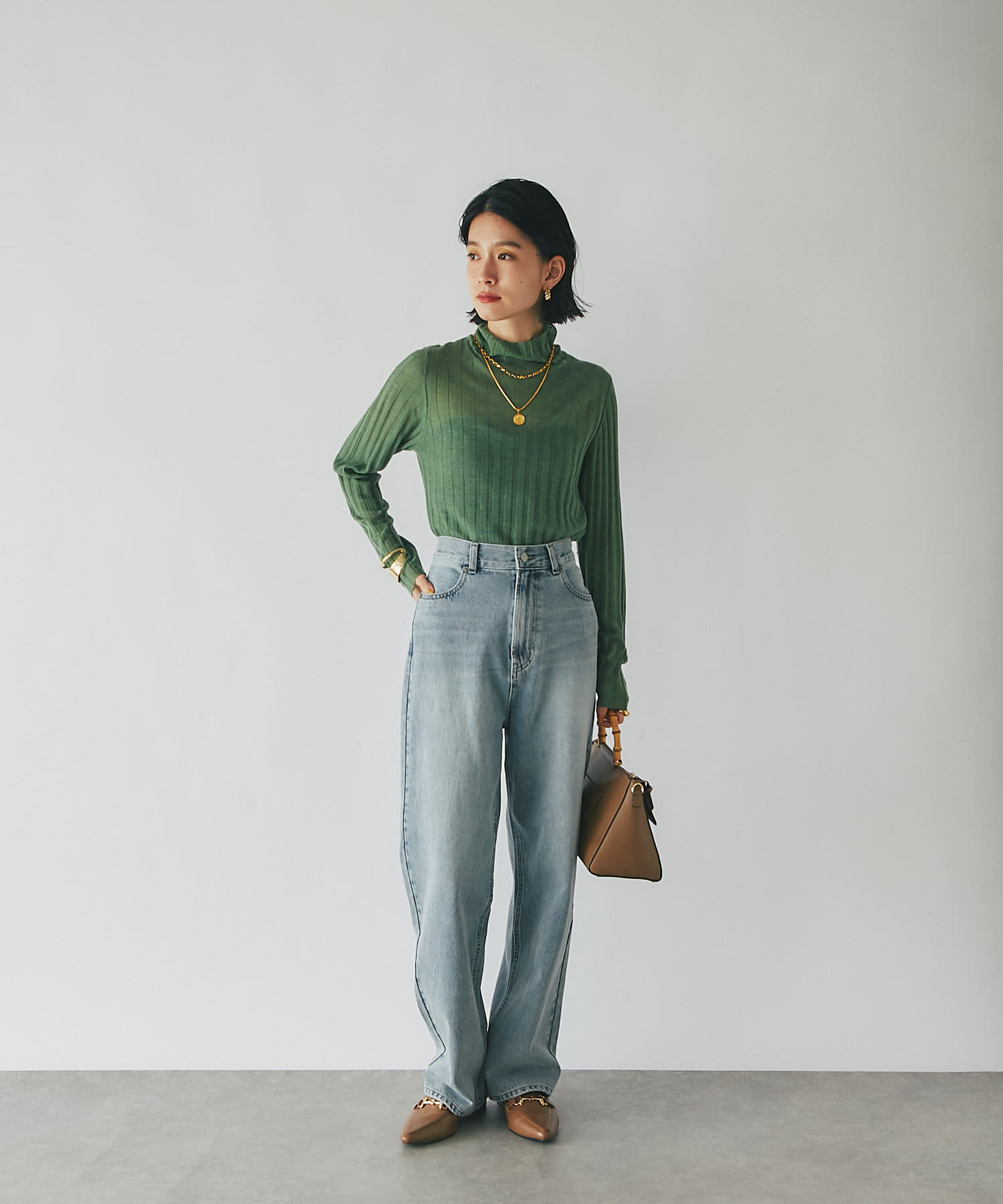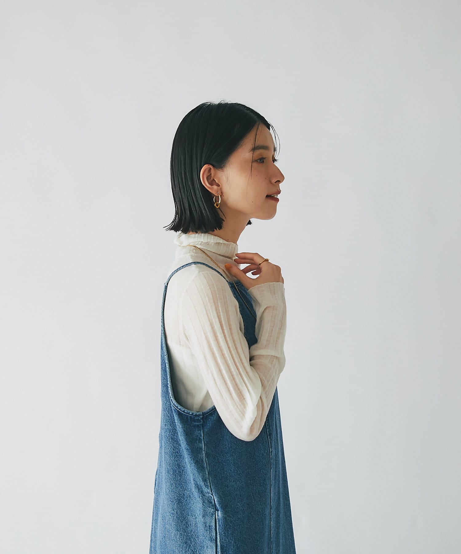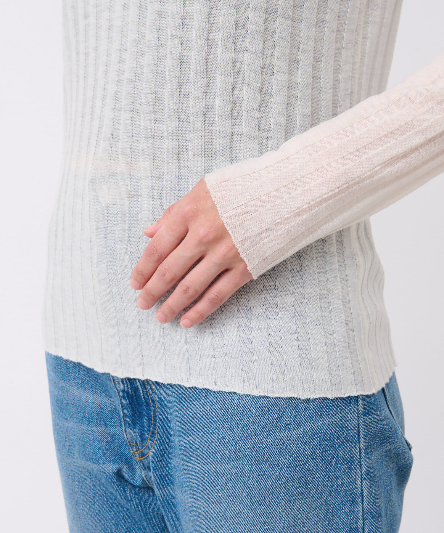重ね着によるもたつきが苦手な方にもおすすめのシアーニットです。