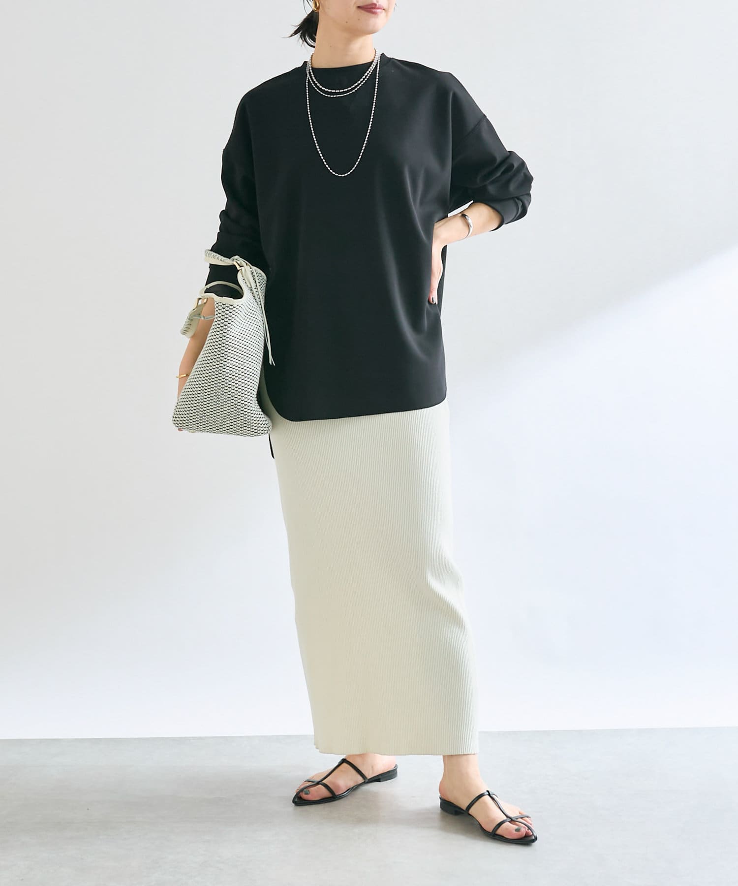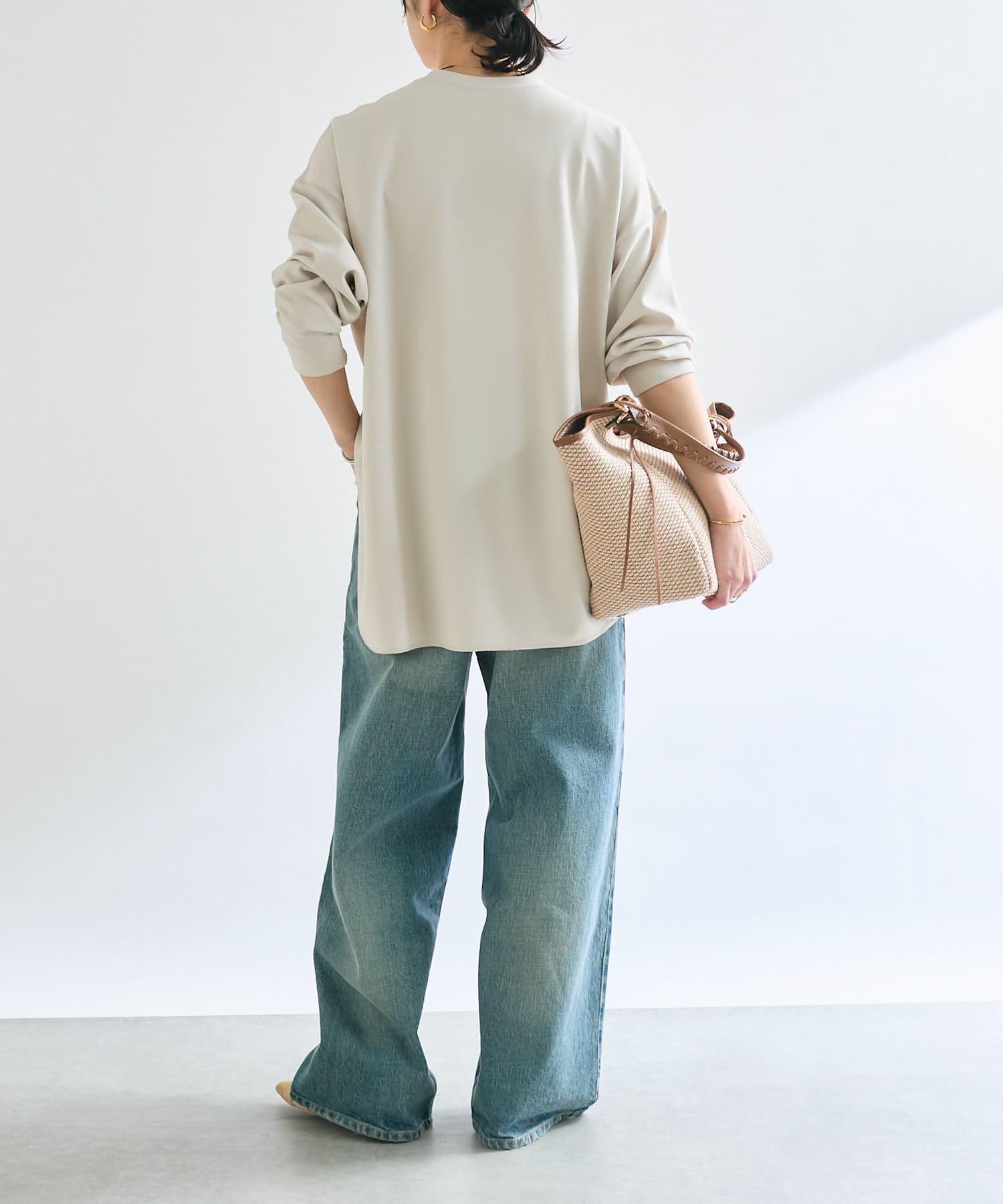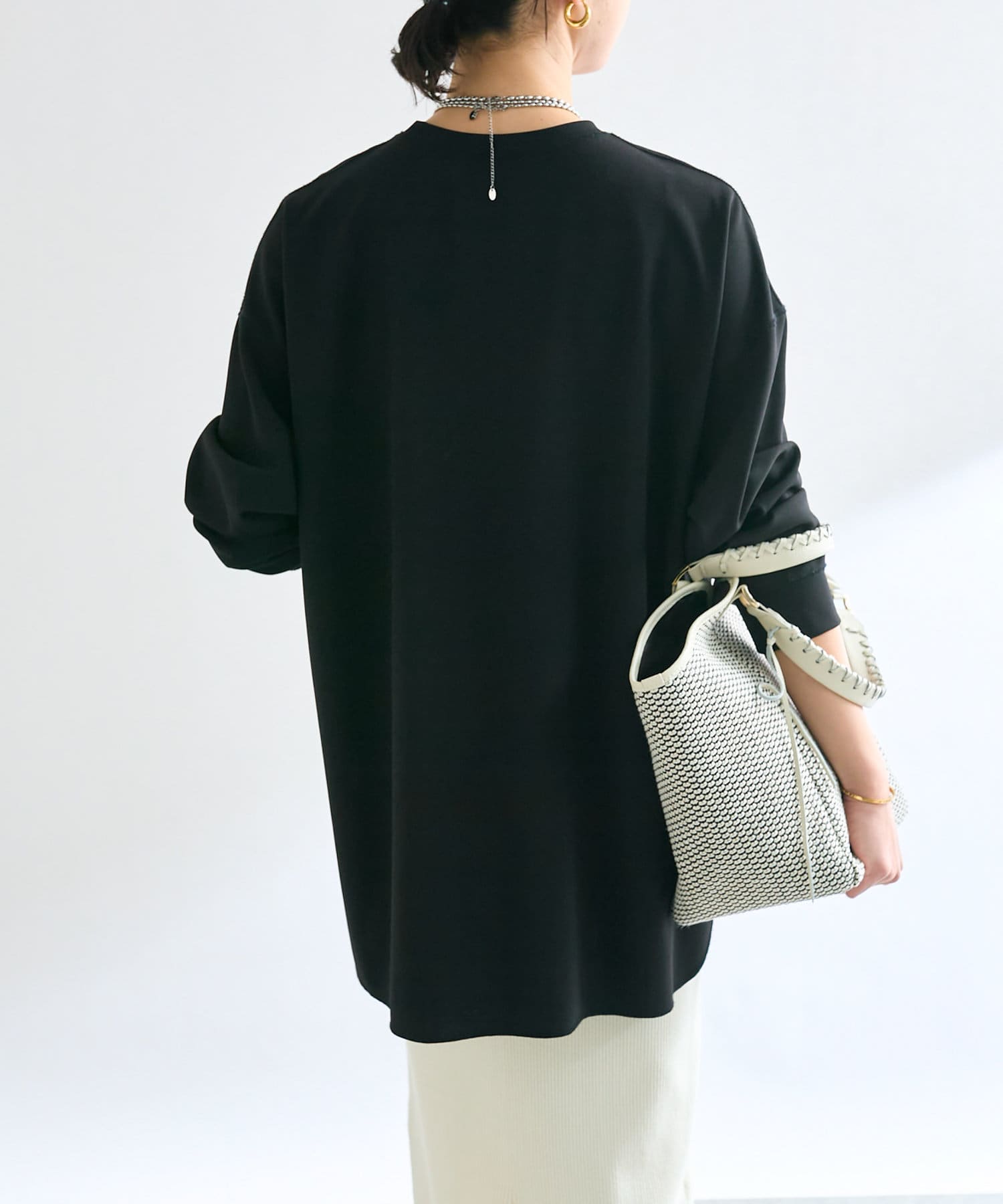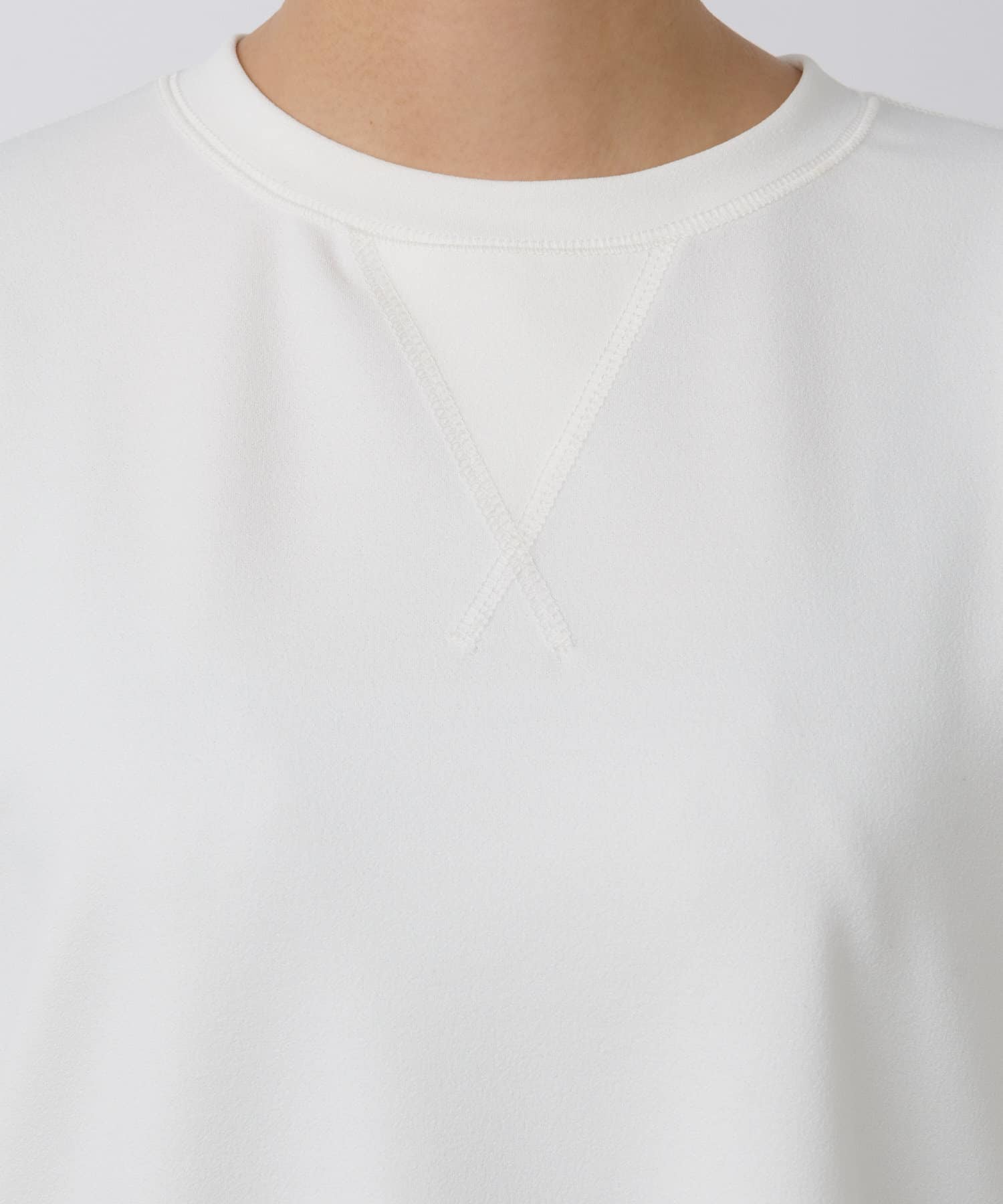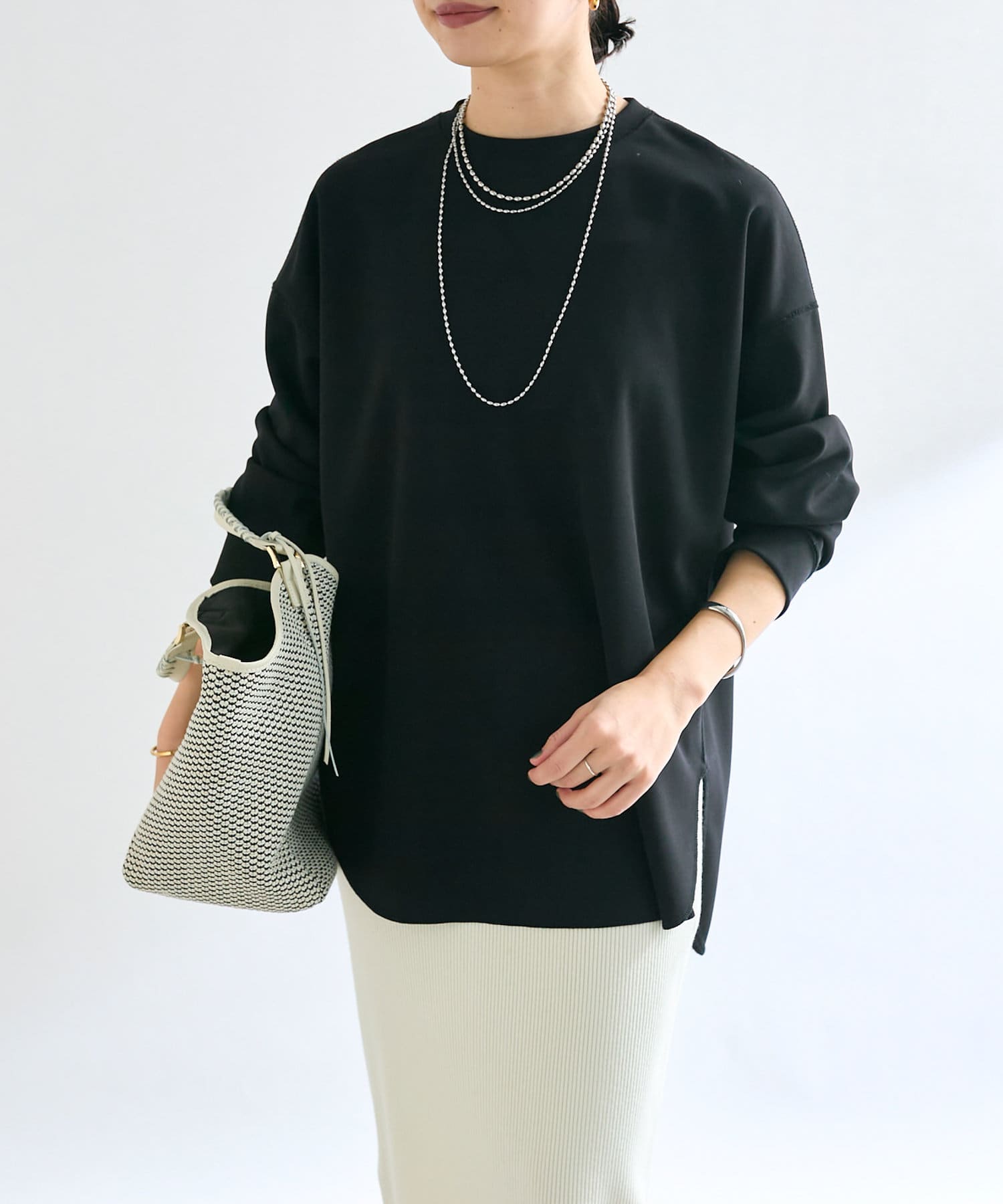カットソーのようにイージーな着心地でありながらキレイ見えするサラッとした素材感で、着用するシーンを問わずお使いいただけます。