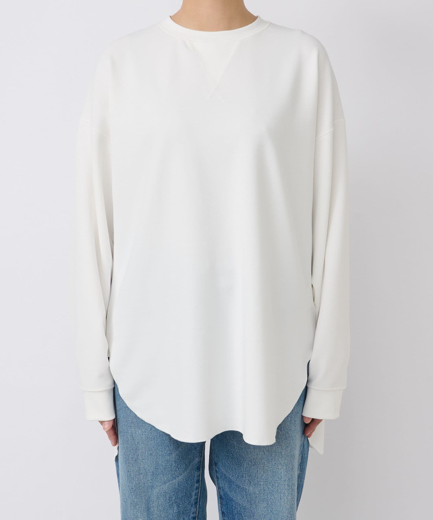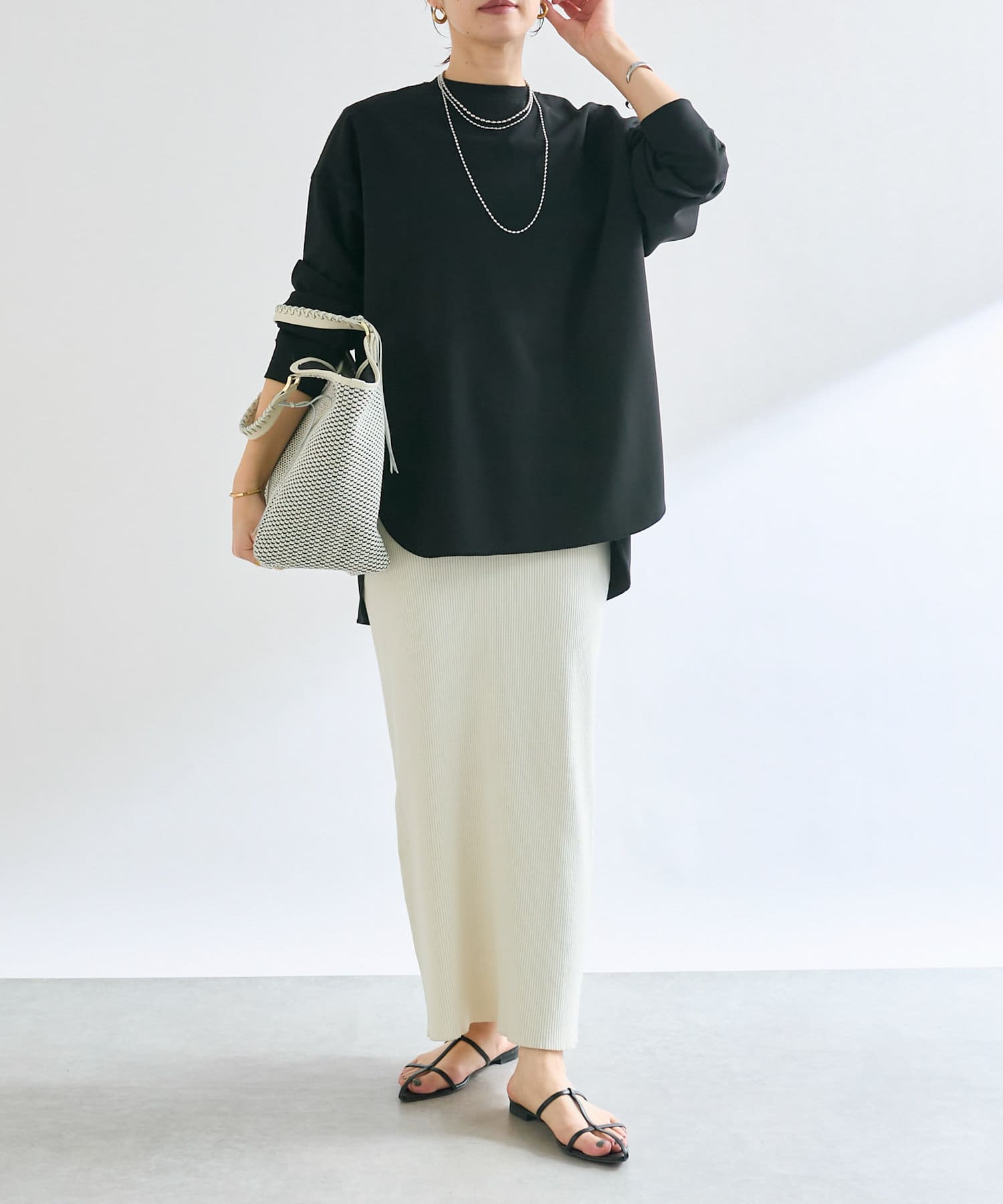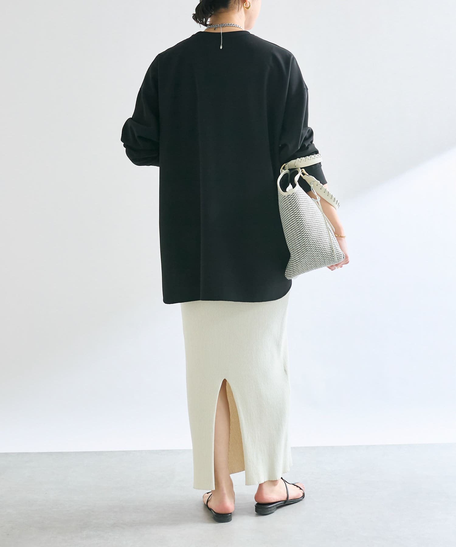 前後で長さの異なる着丈で、気になるヒップ周りをカバーする嬉しい効果も◎