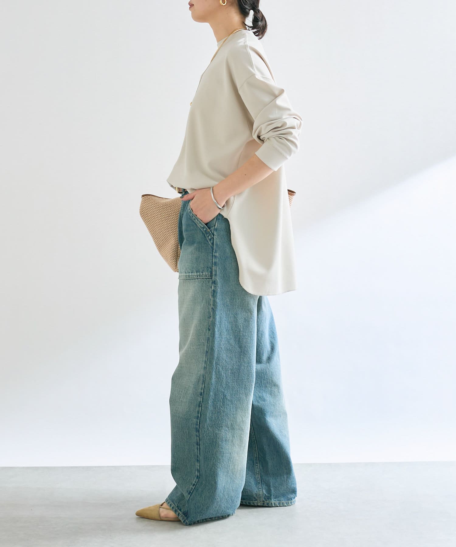 首元についたV字状の縫い付け(Vガゼット)がこなれ感をプラスし、大人カジュアルにもピッタリなデザイン。