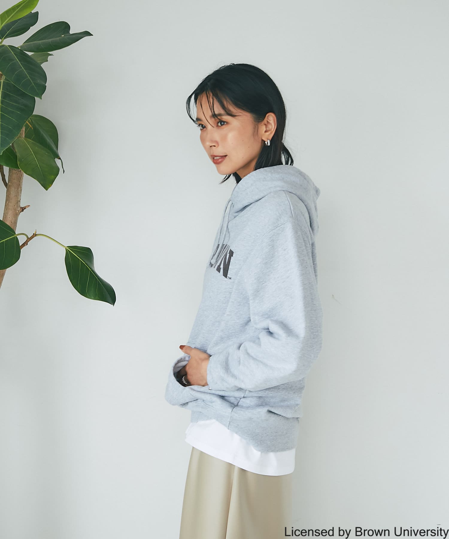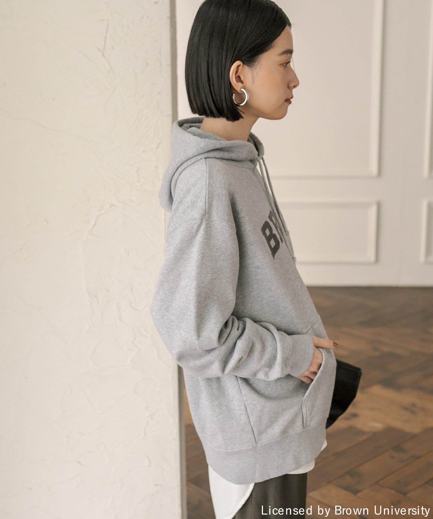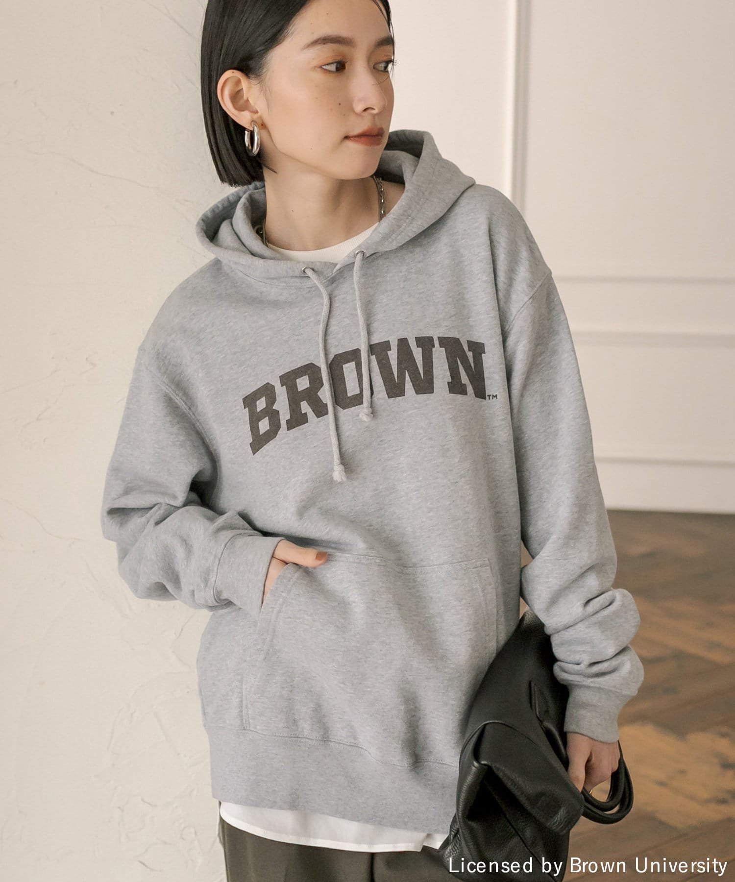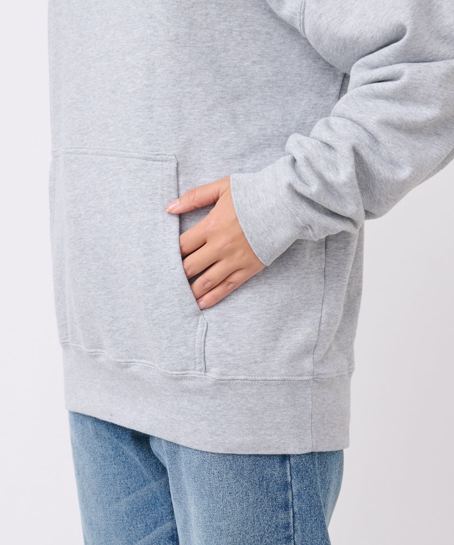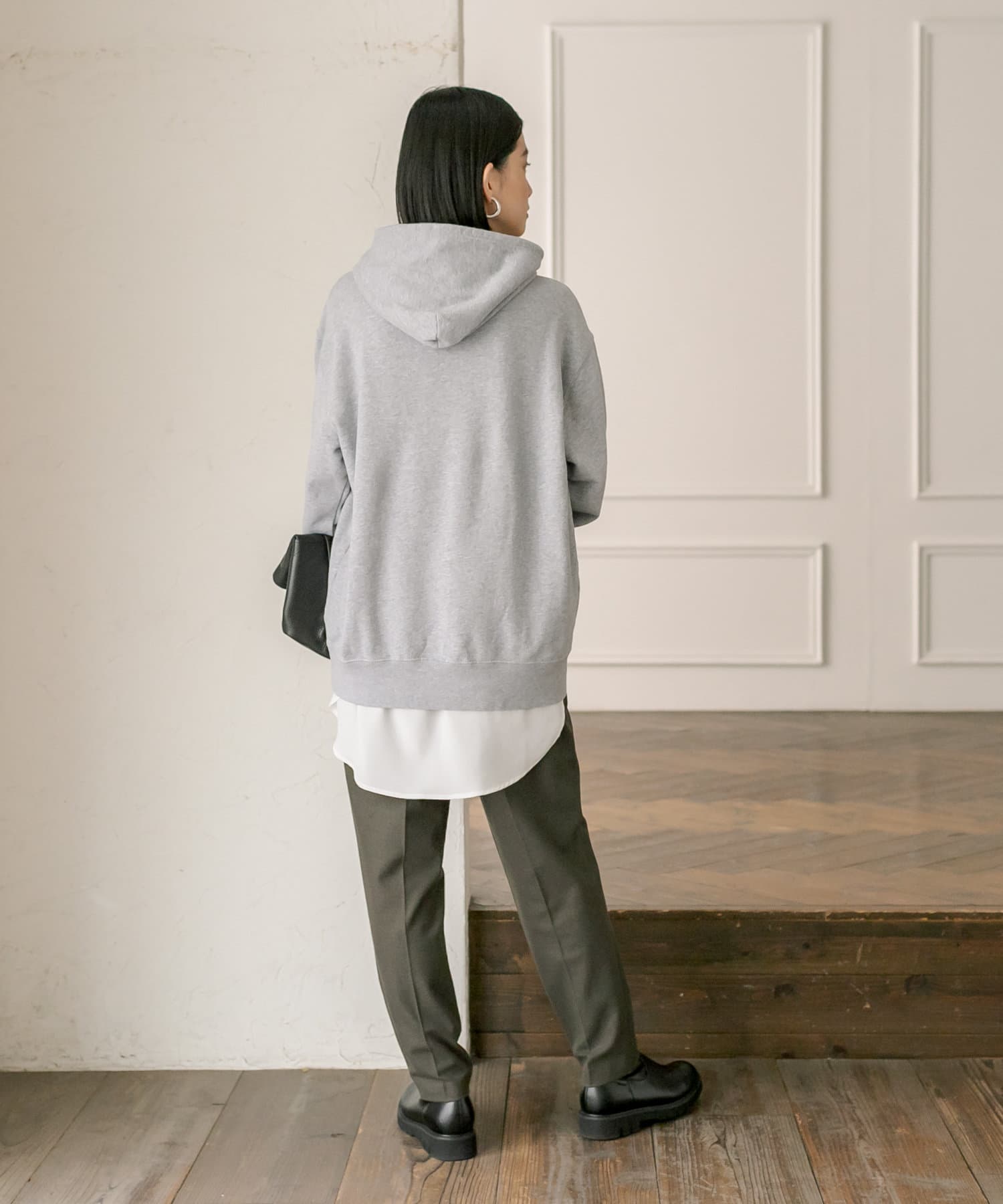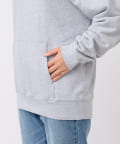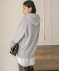 ゆったりとしたシルエットで安心感のあるフーディスエット。
