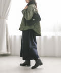 ややオーバーサイズでゆったりとしたサイズ感ですが、下に広がるテントラインや前後で長さの異なる着丈がすっきり見えを実現。