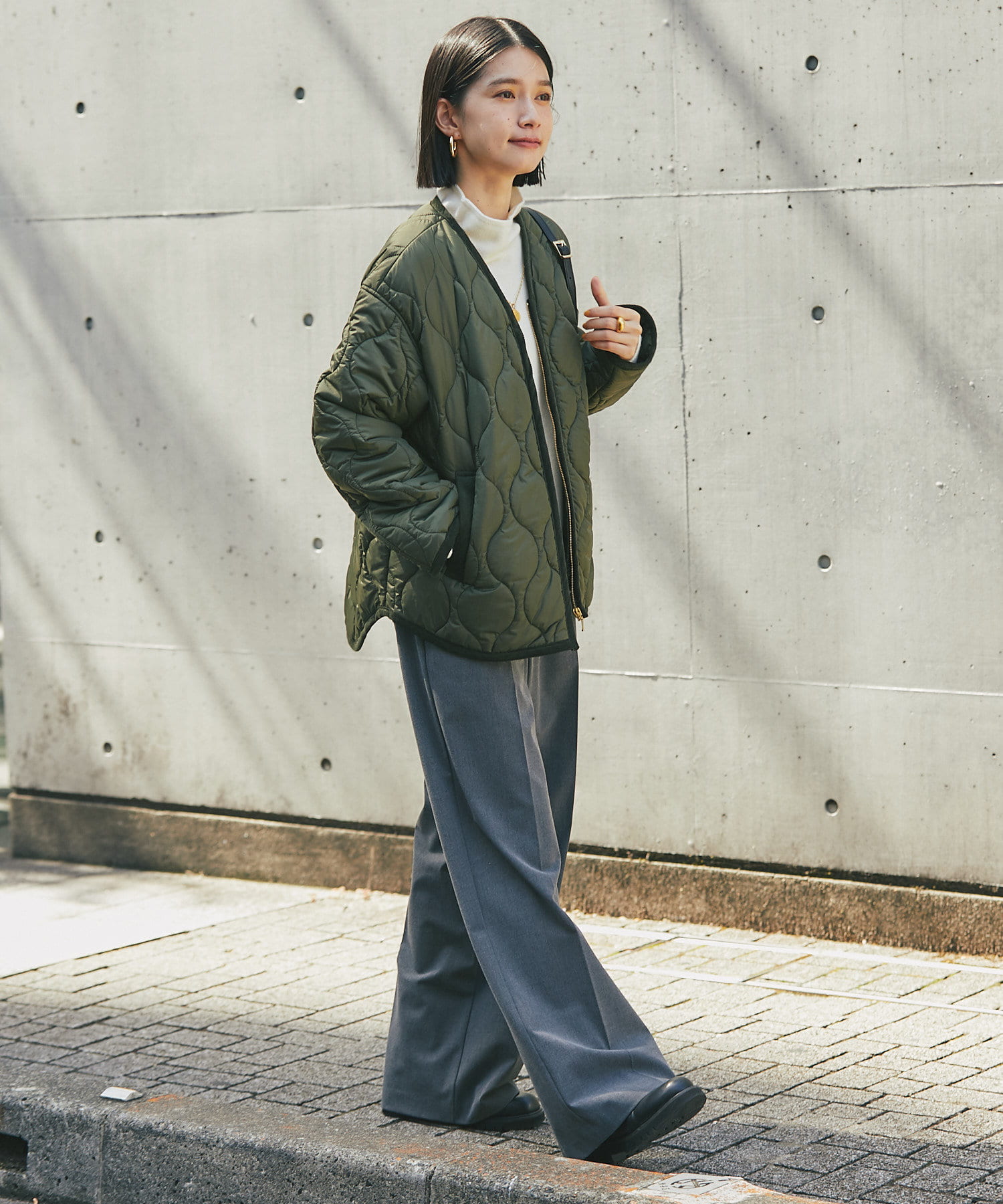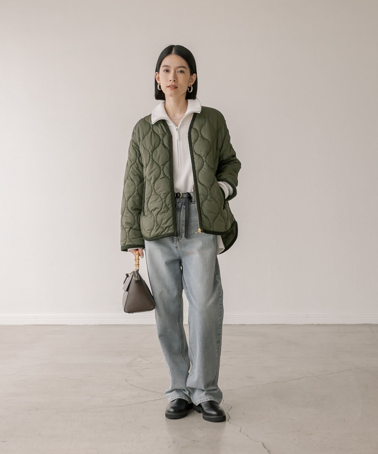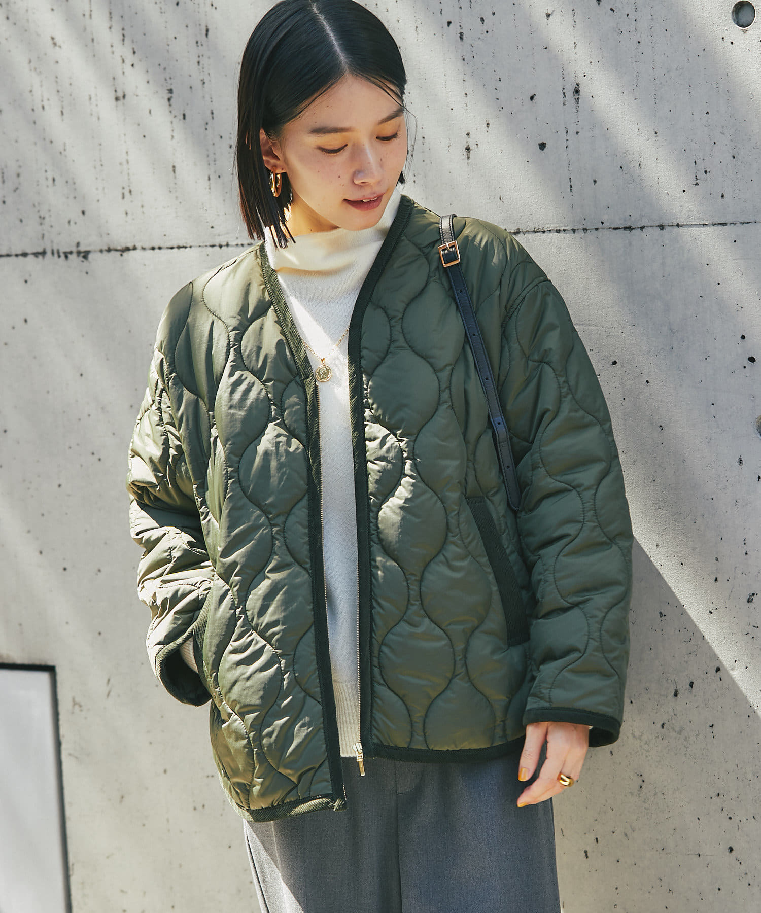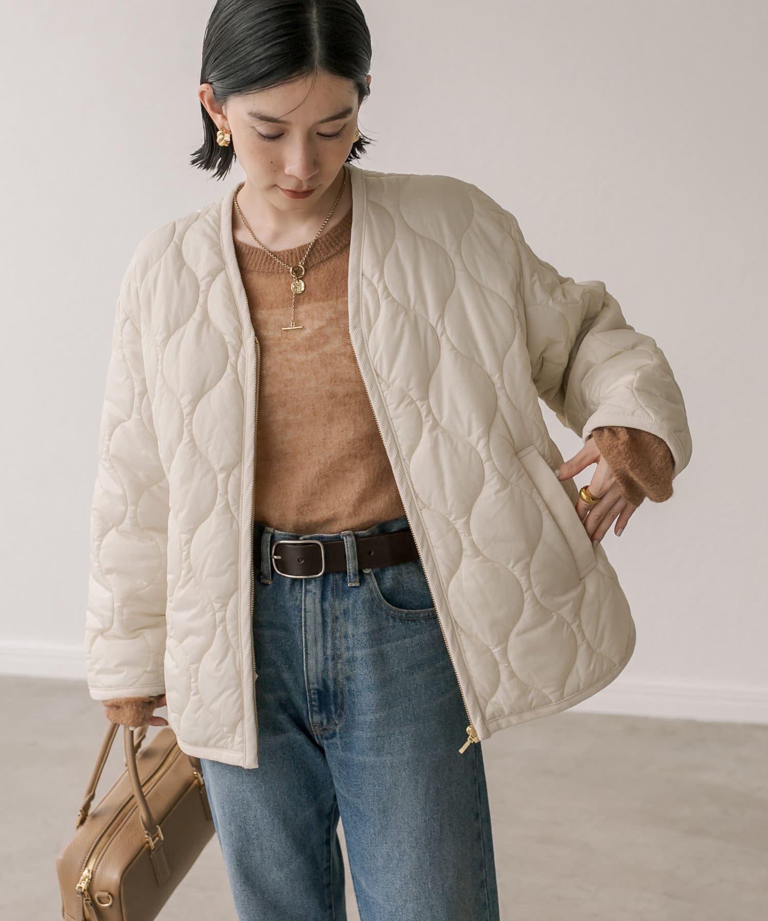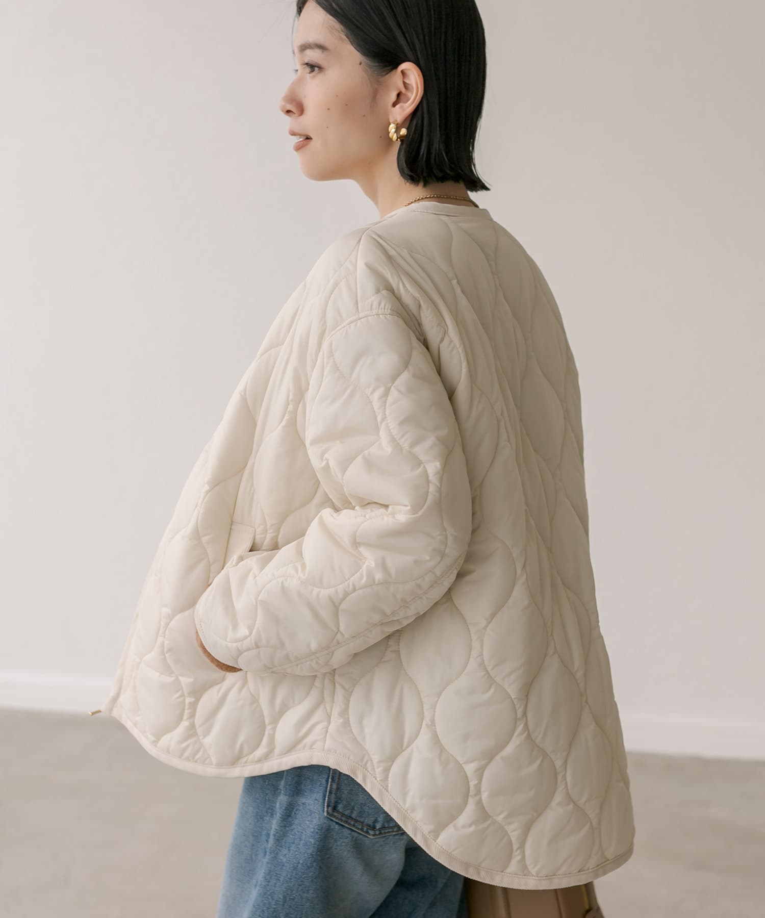 サッと羽織れる着心地ながらも、中綿入りで温かさも両立。