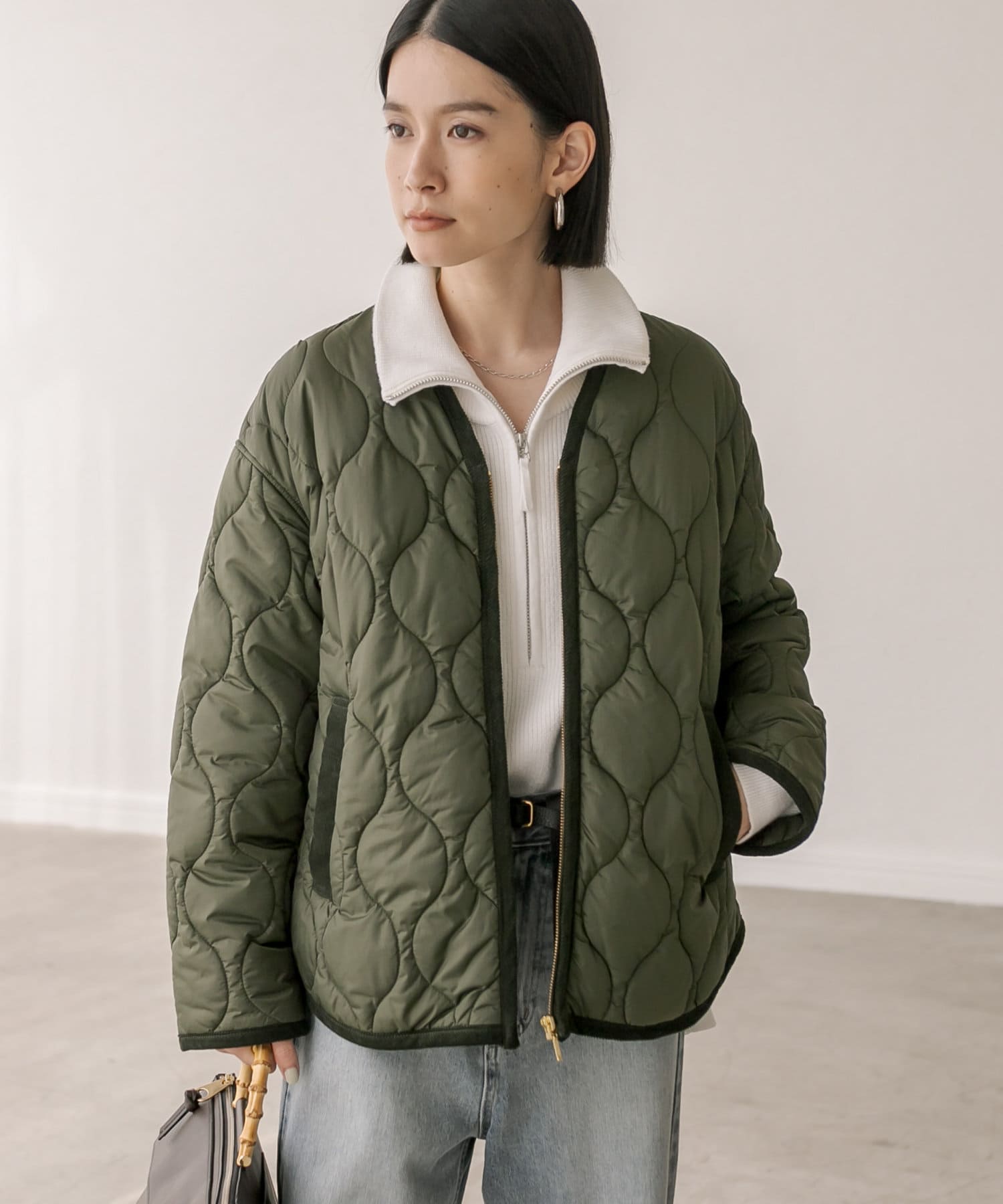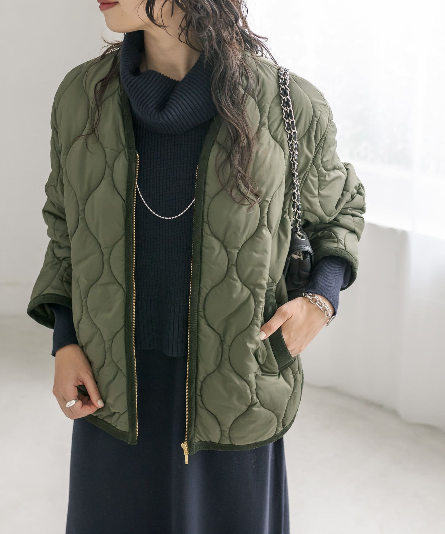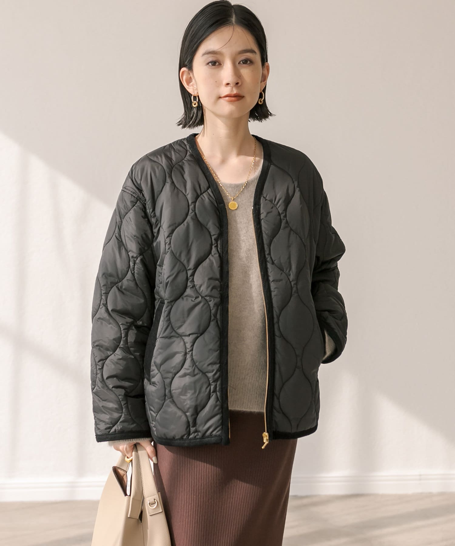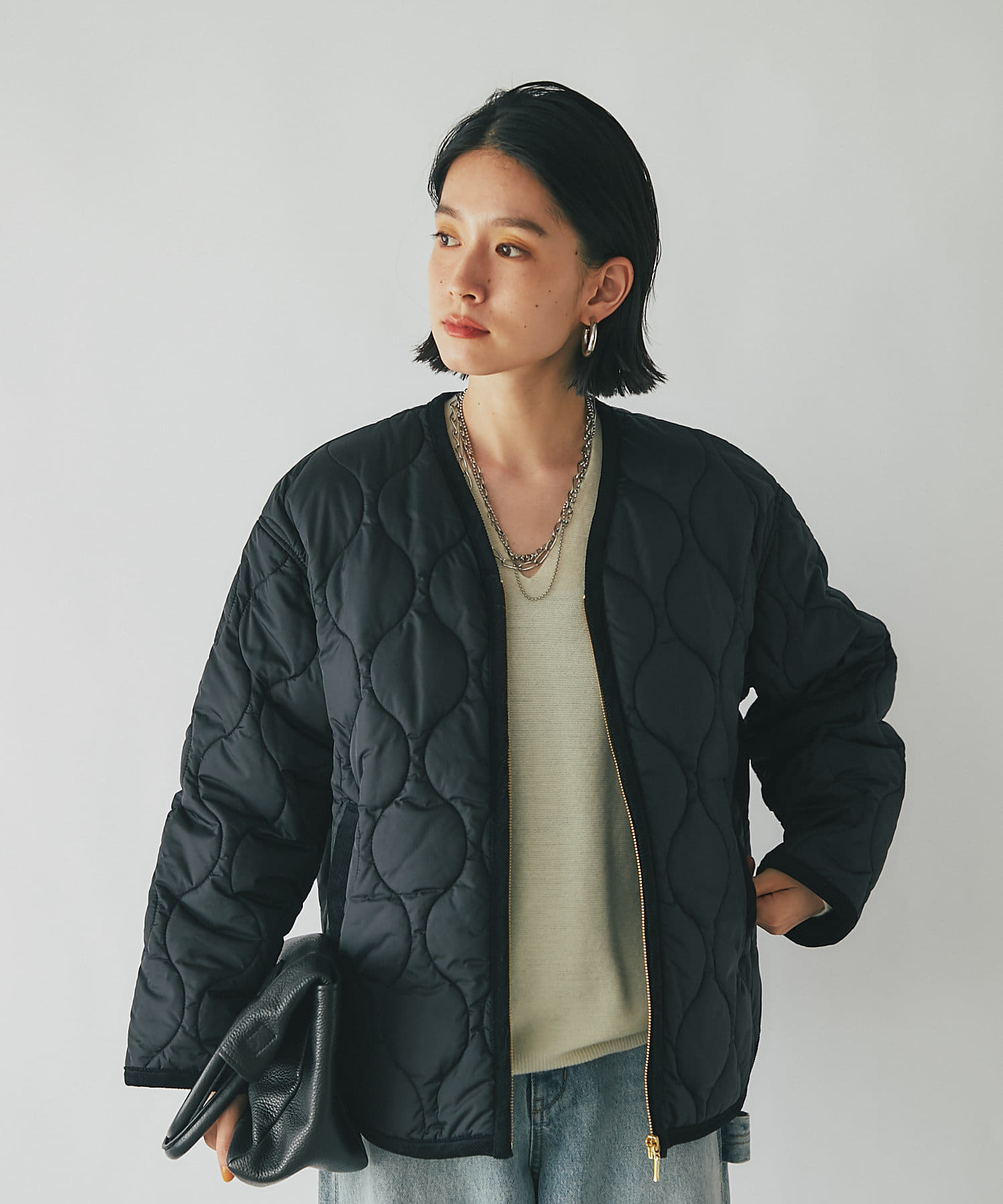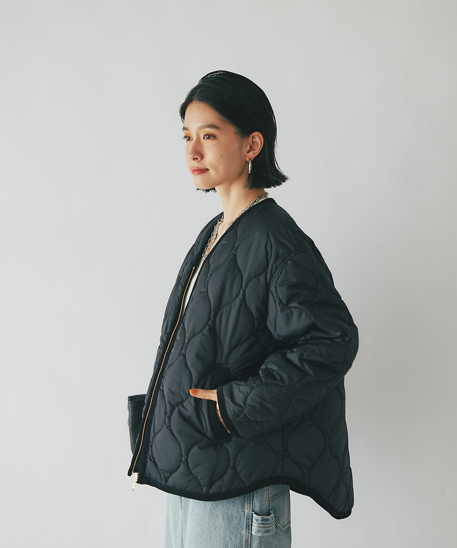 サッと羽織れる着心地ながらも、中綿入りで温かさも両立。
