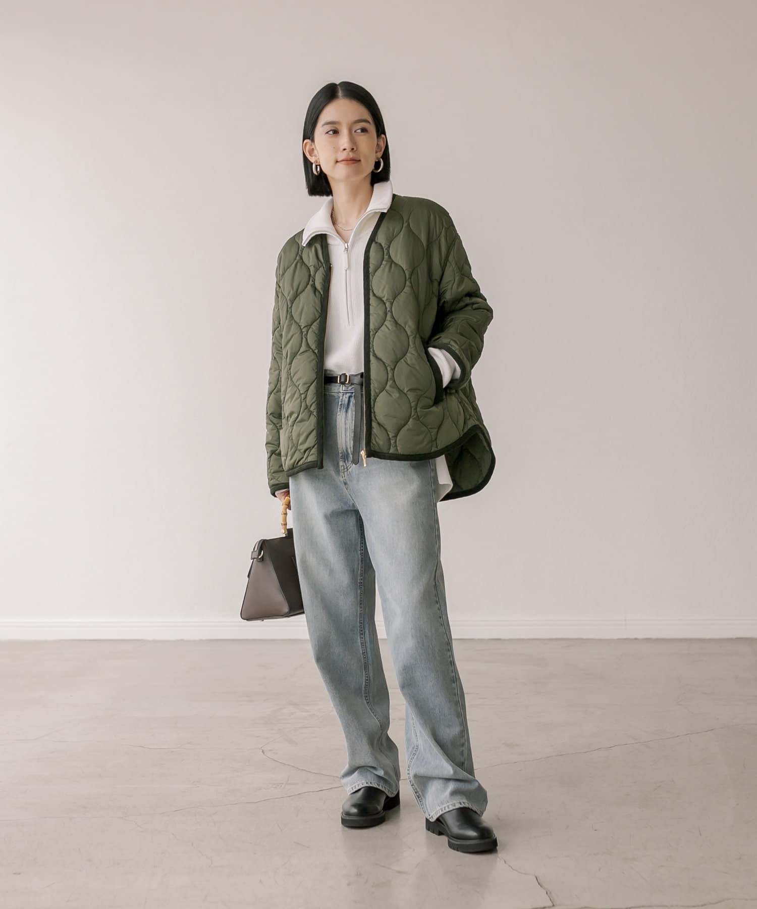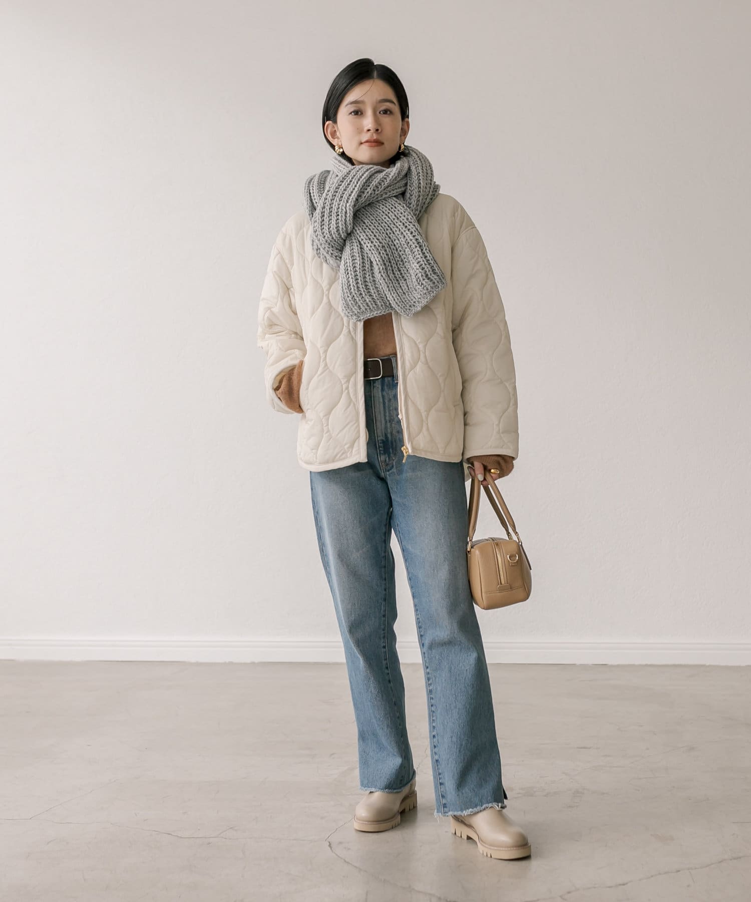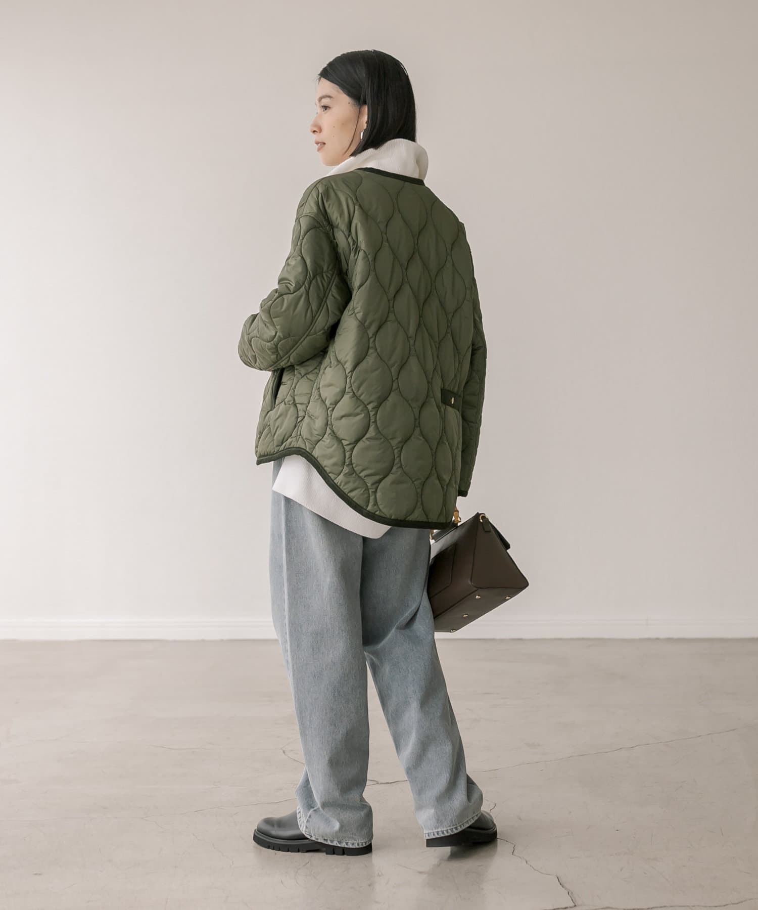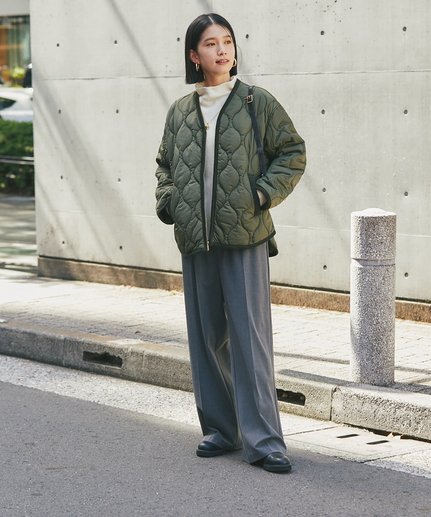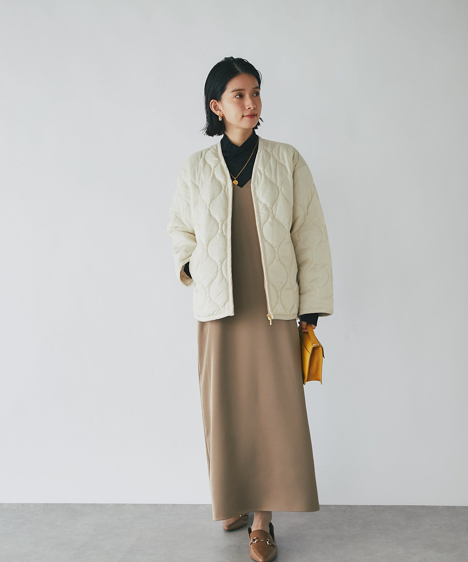 サッと羽織れる着心地ながらも、中綿入りで温かさも両立。