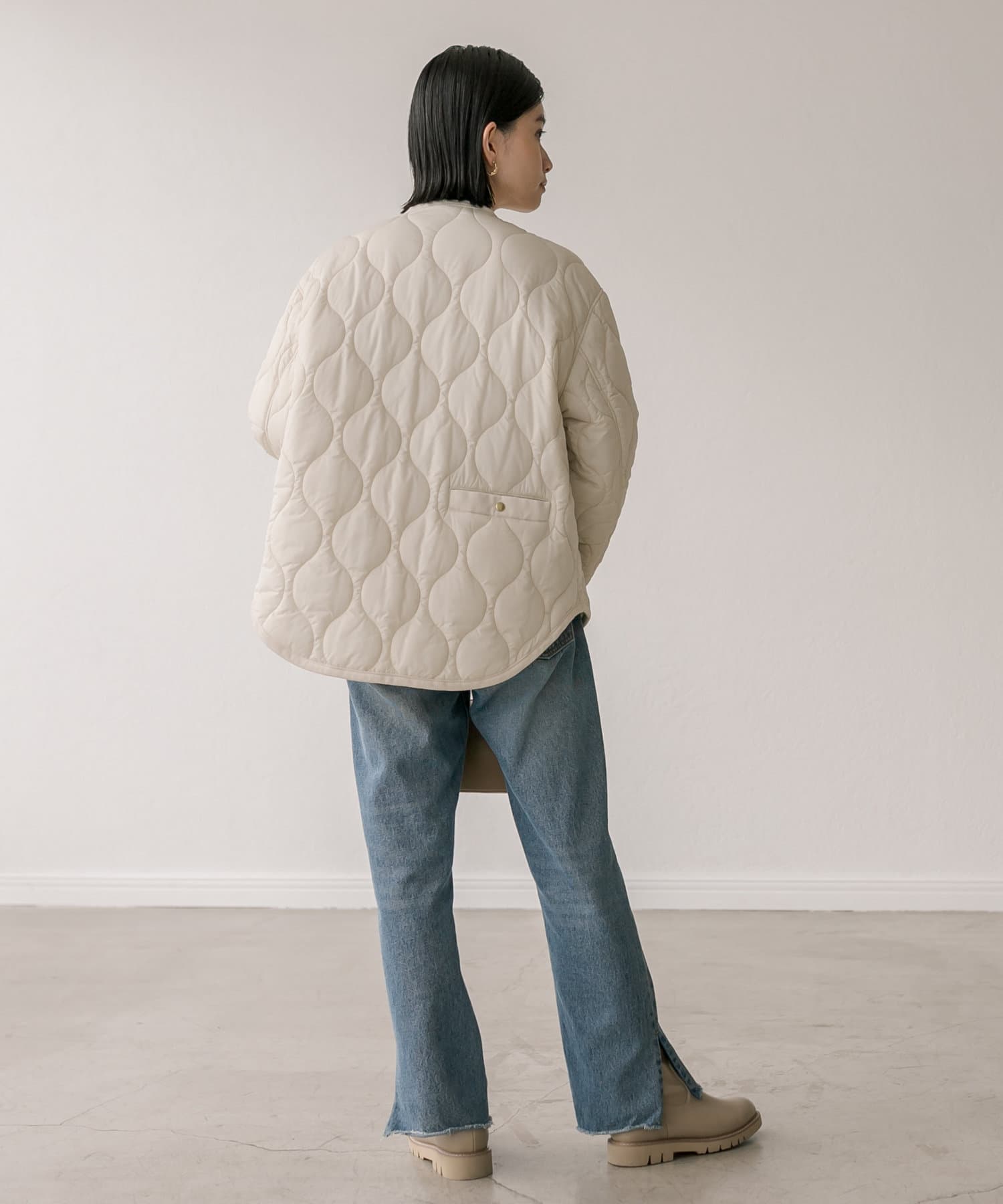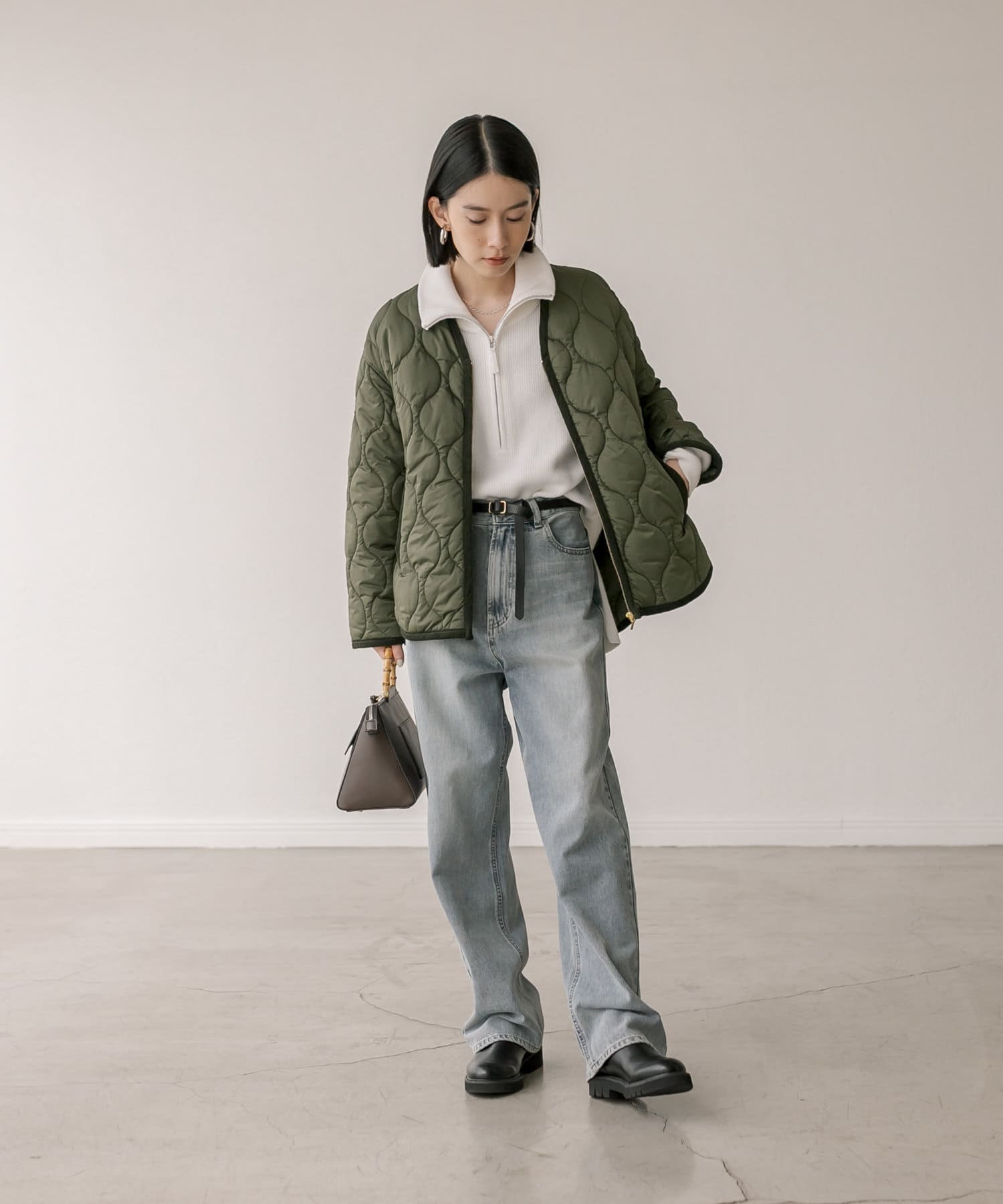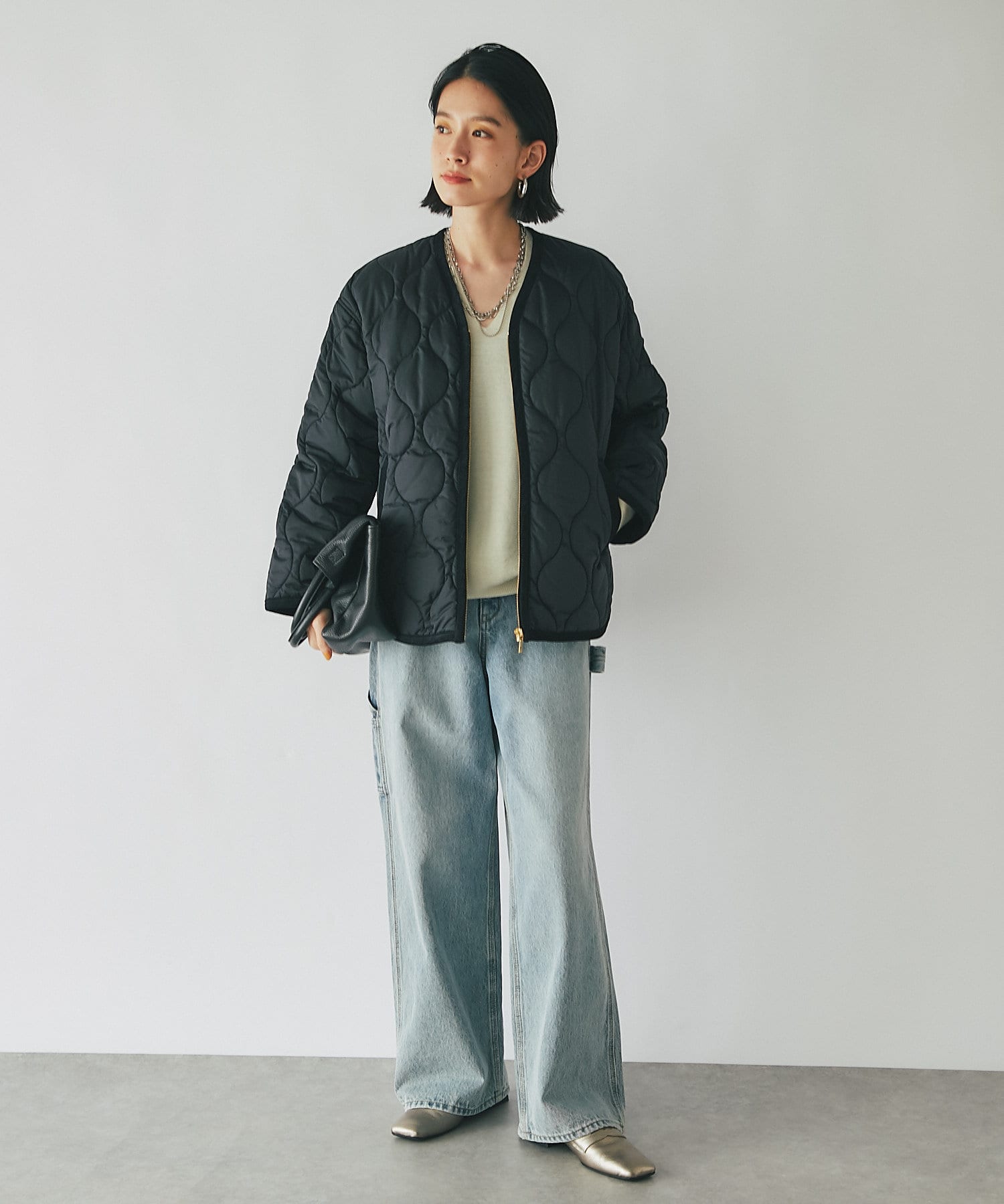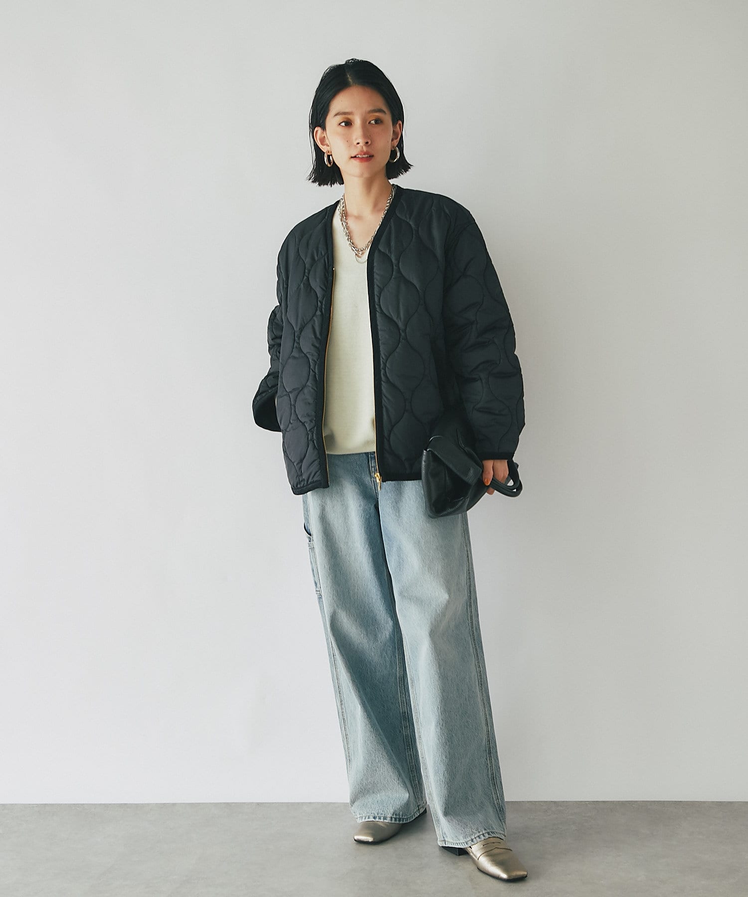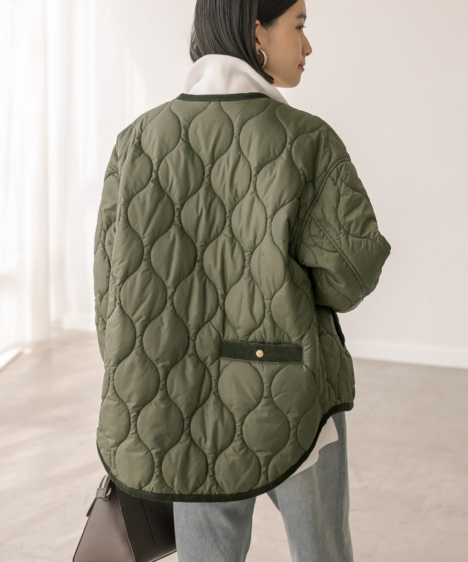 サッと羽織れる着心地ながらも、中綿入りで温かさも両立。
