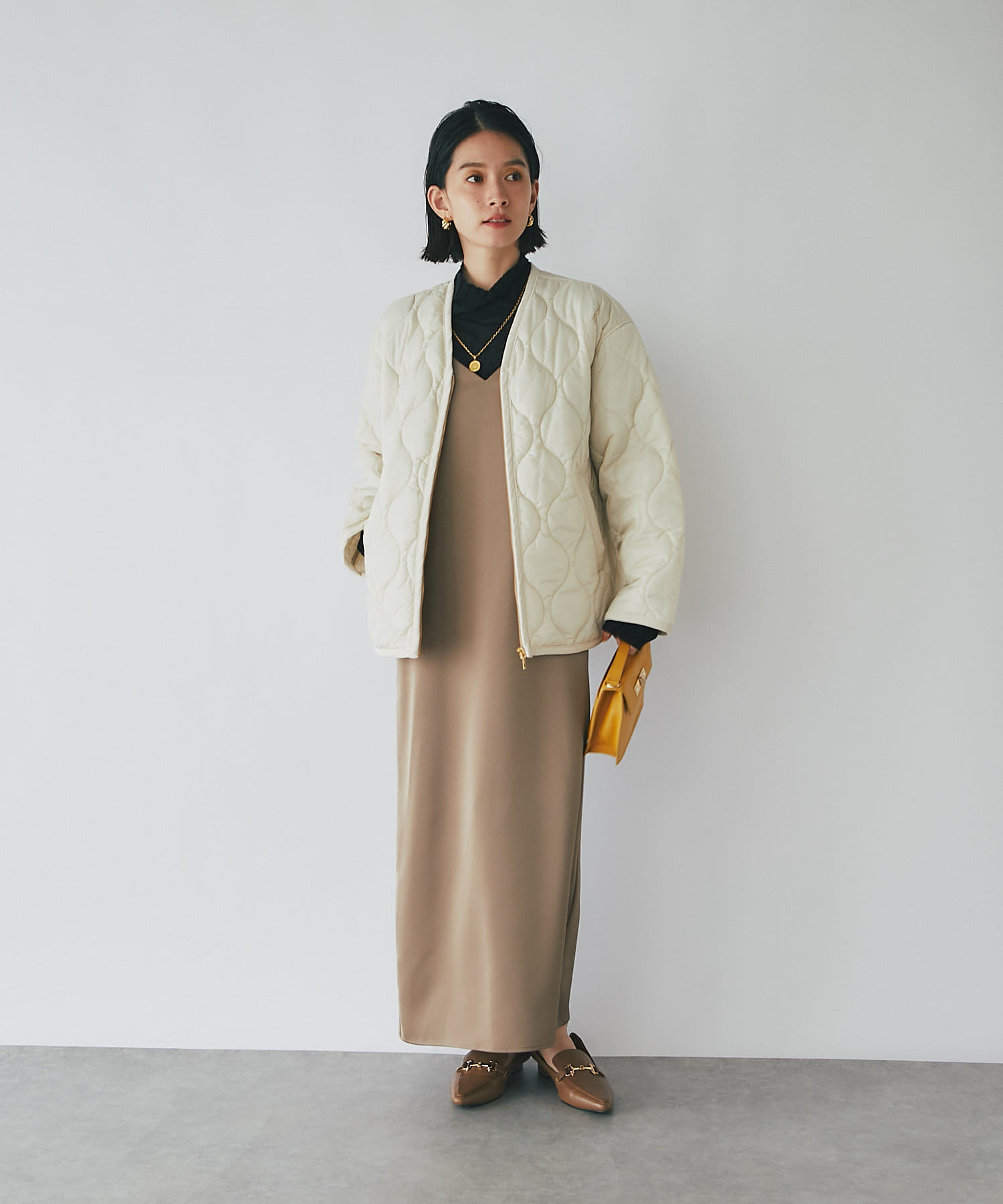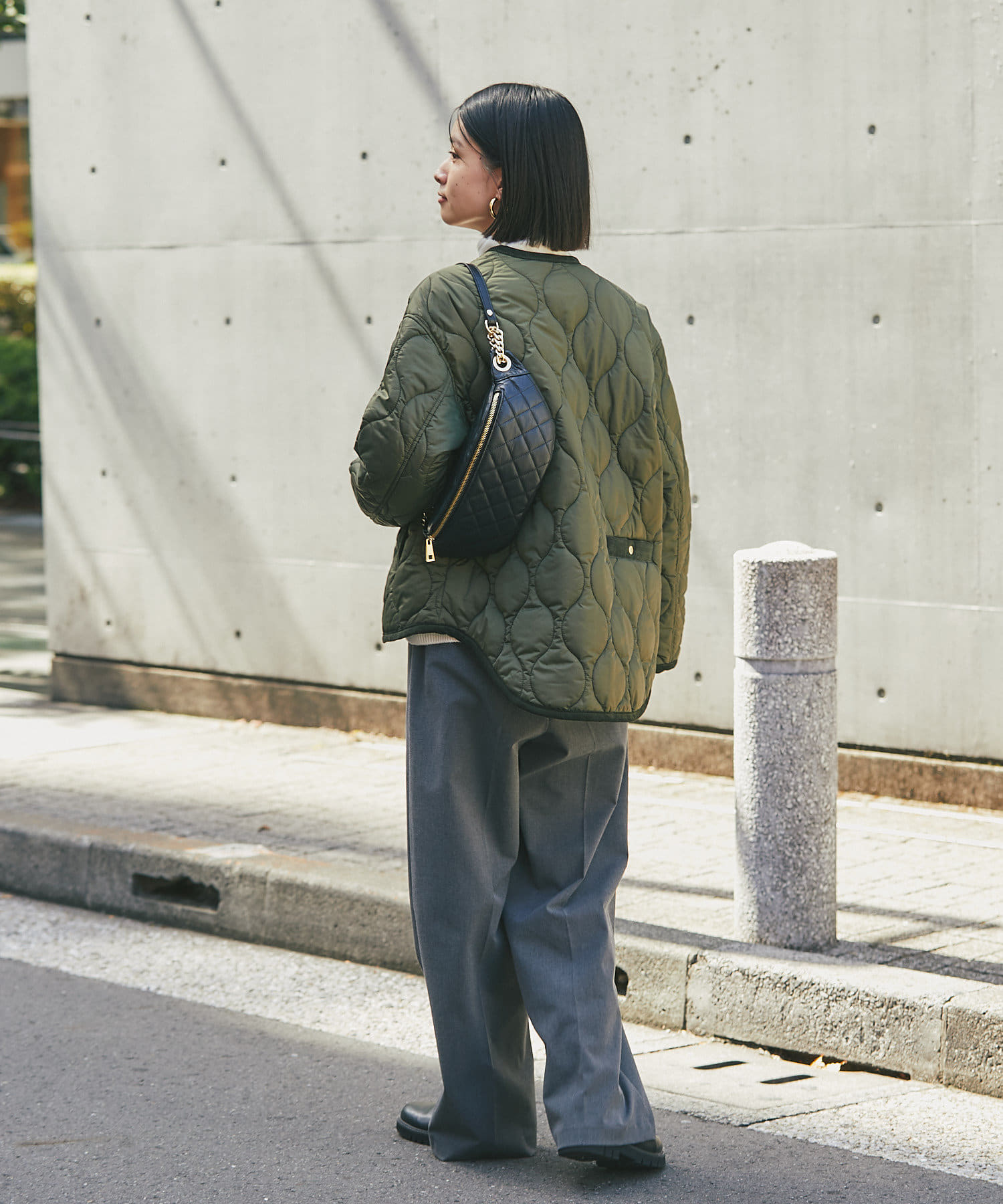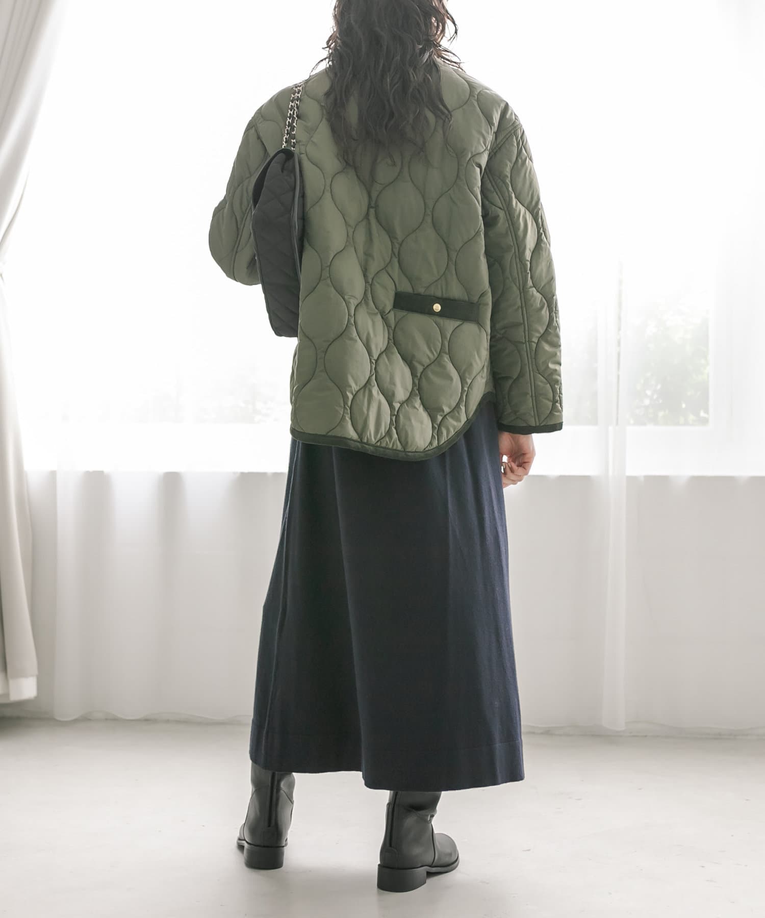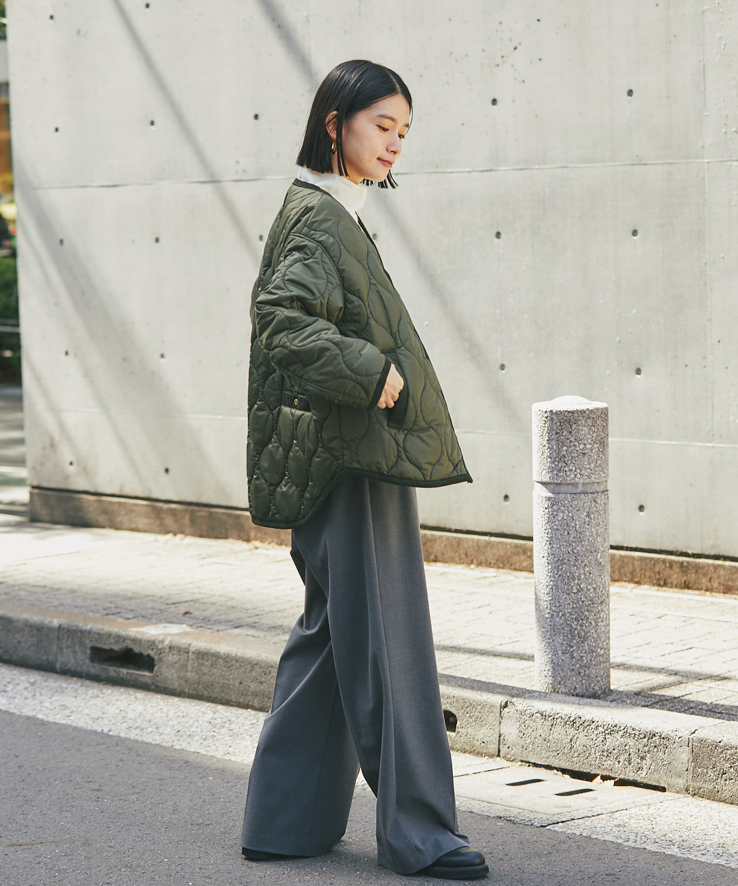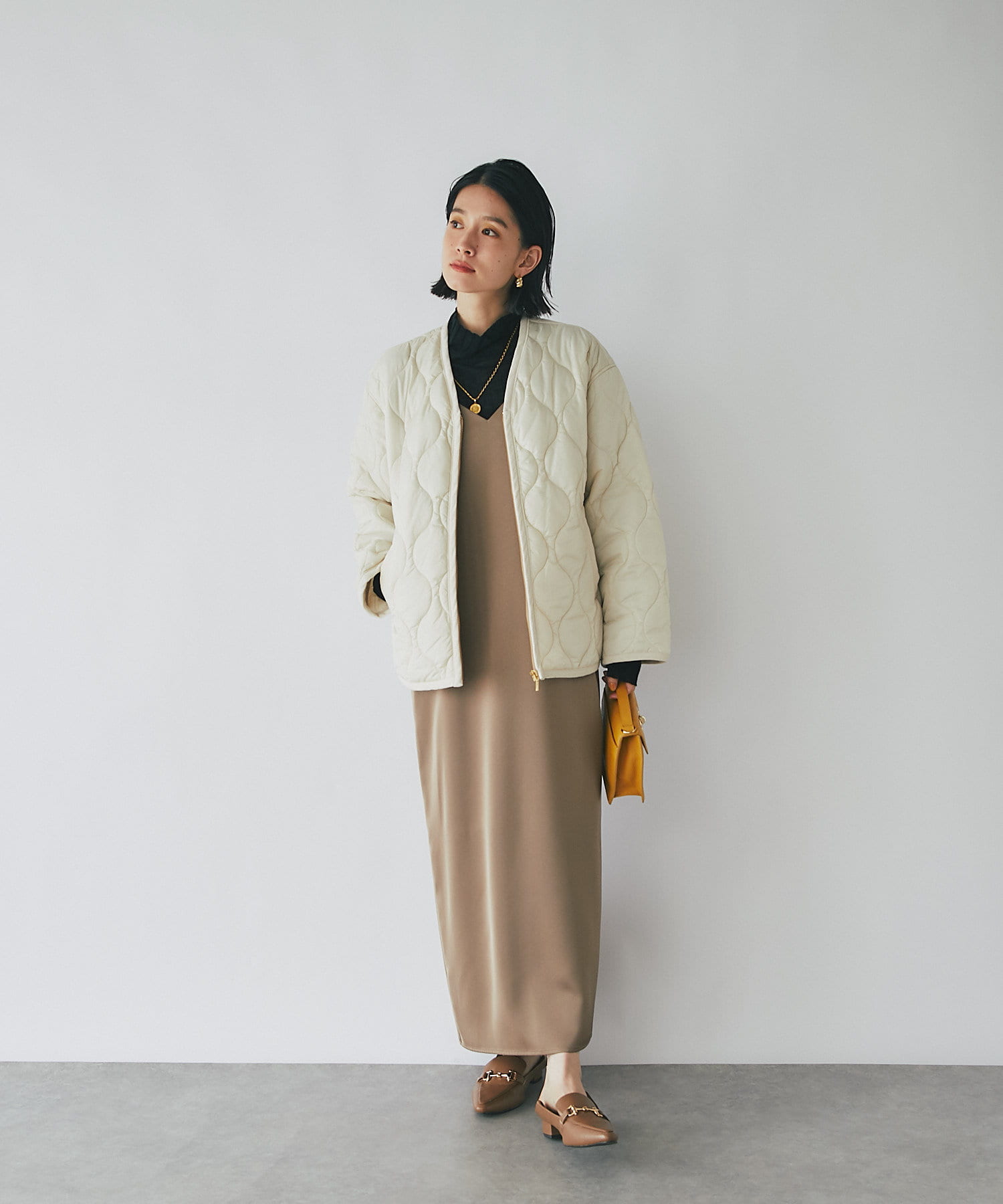 サッと羽織れる着心地ながらも、中綿入りで温かさも両立。