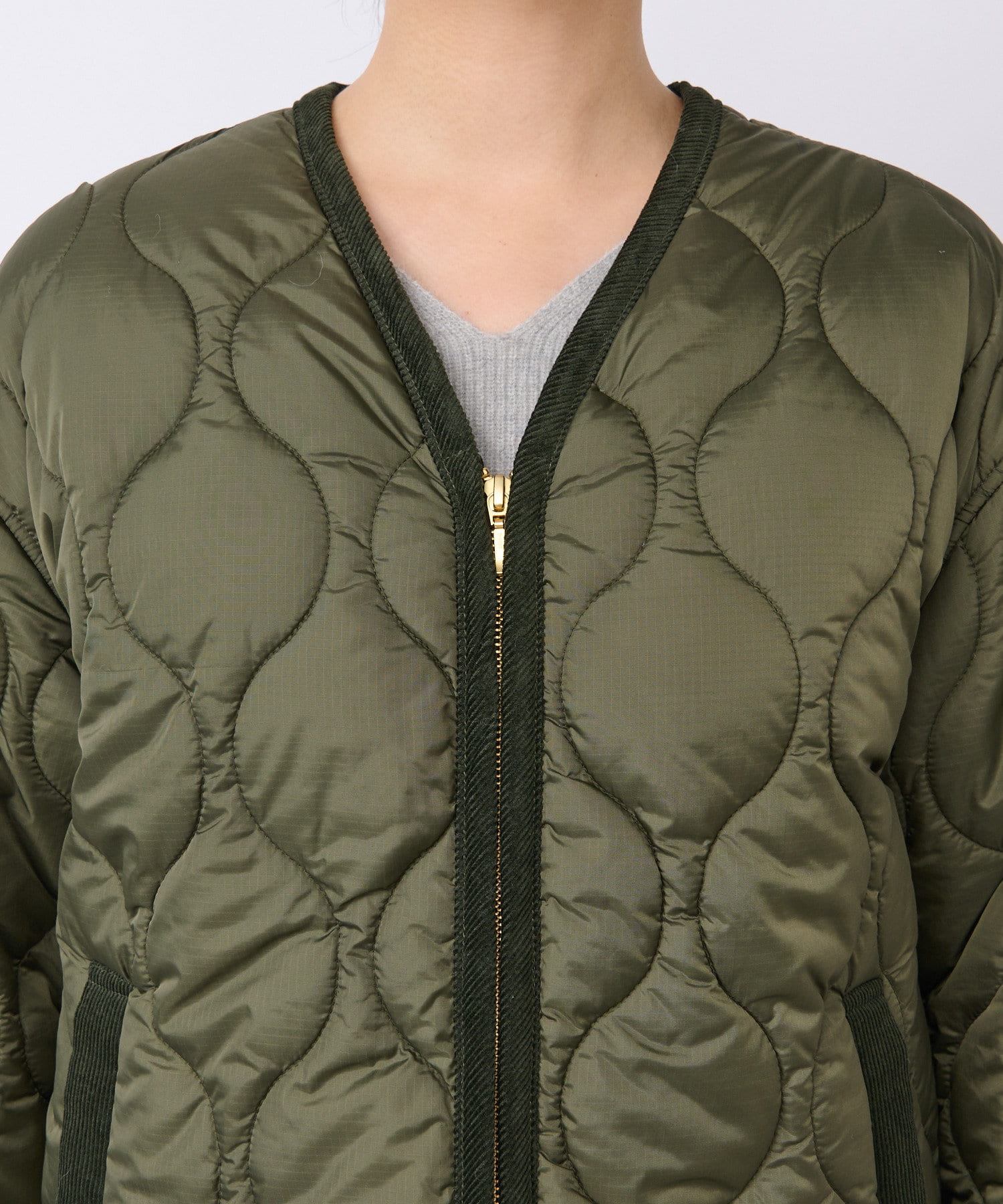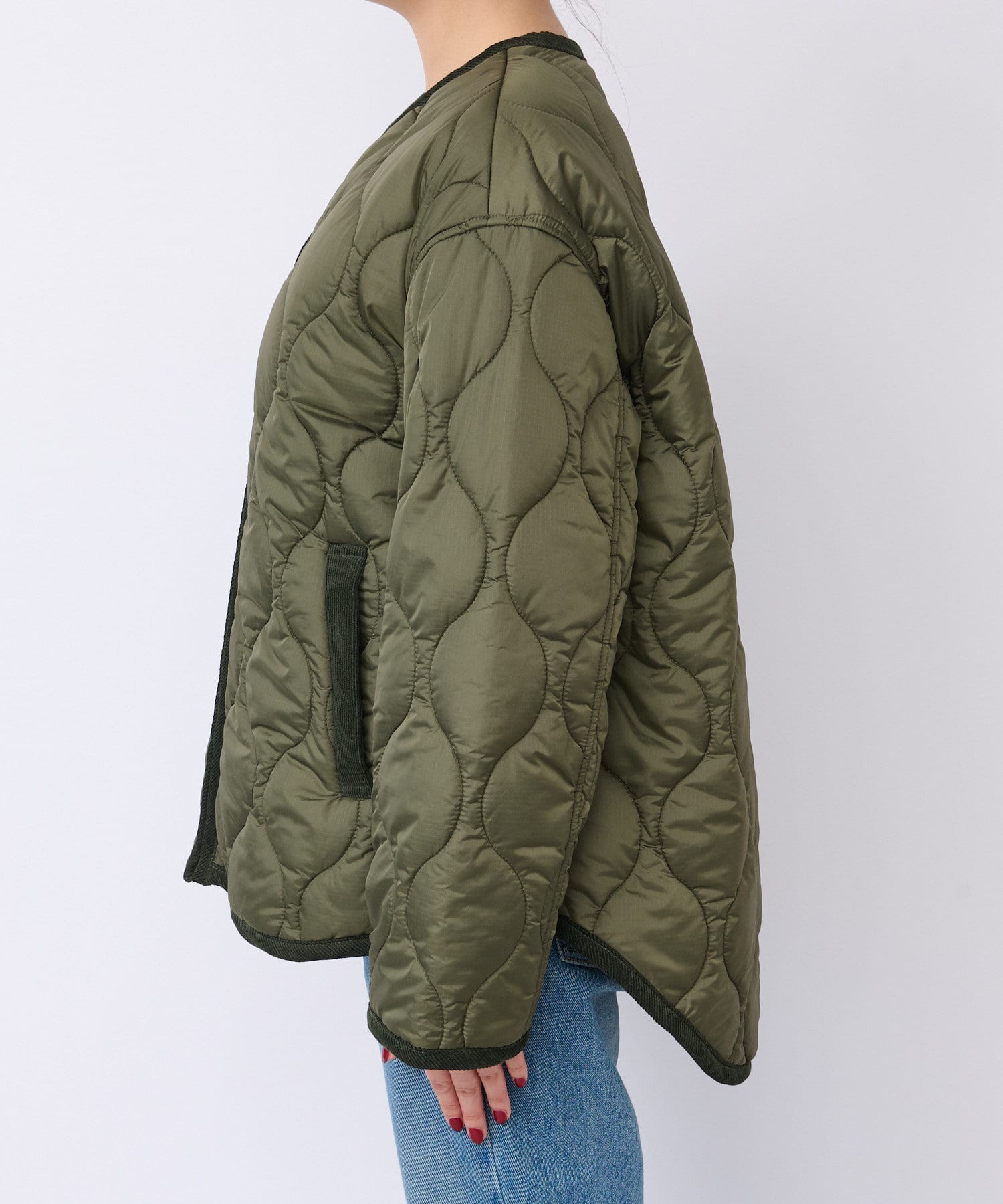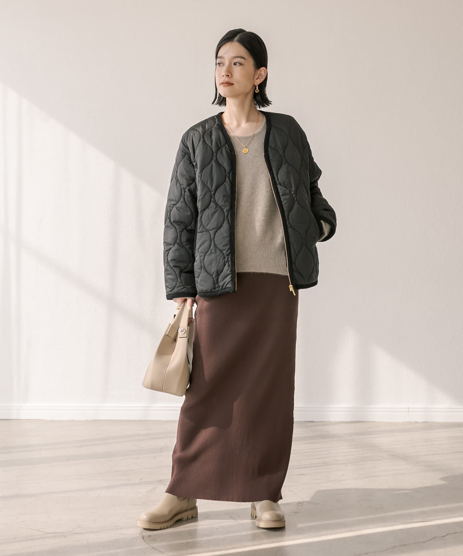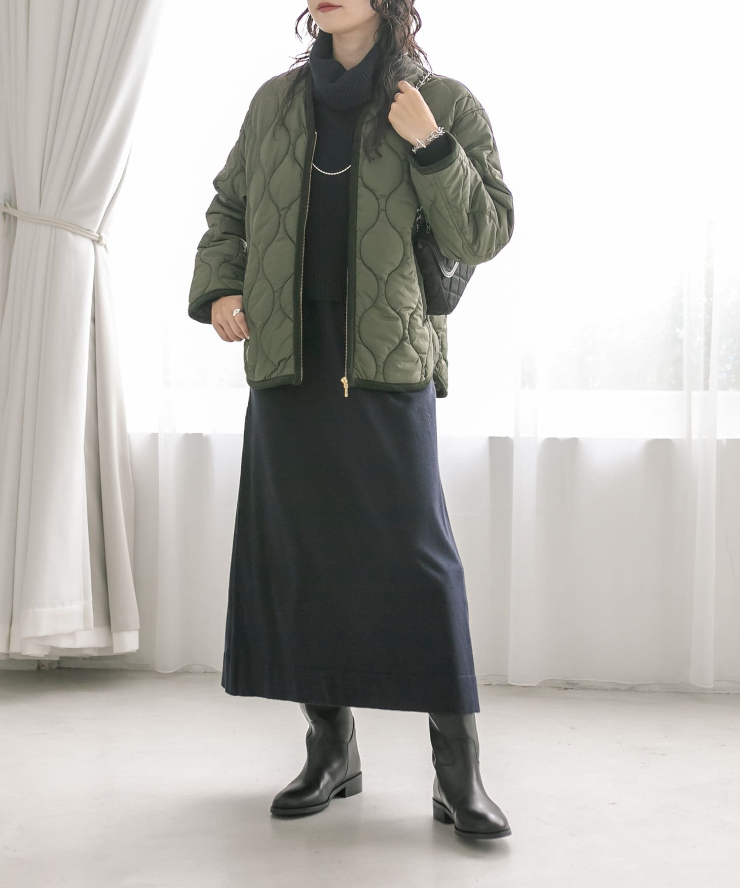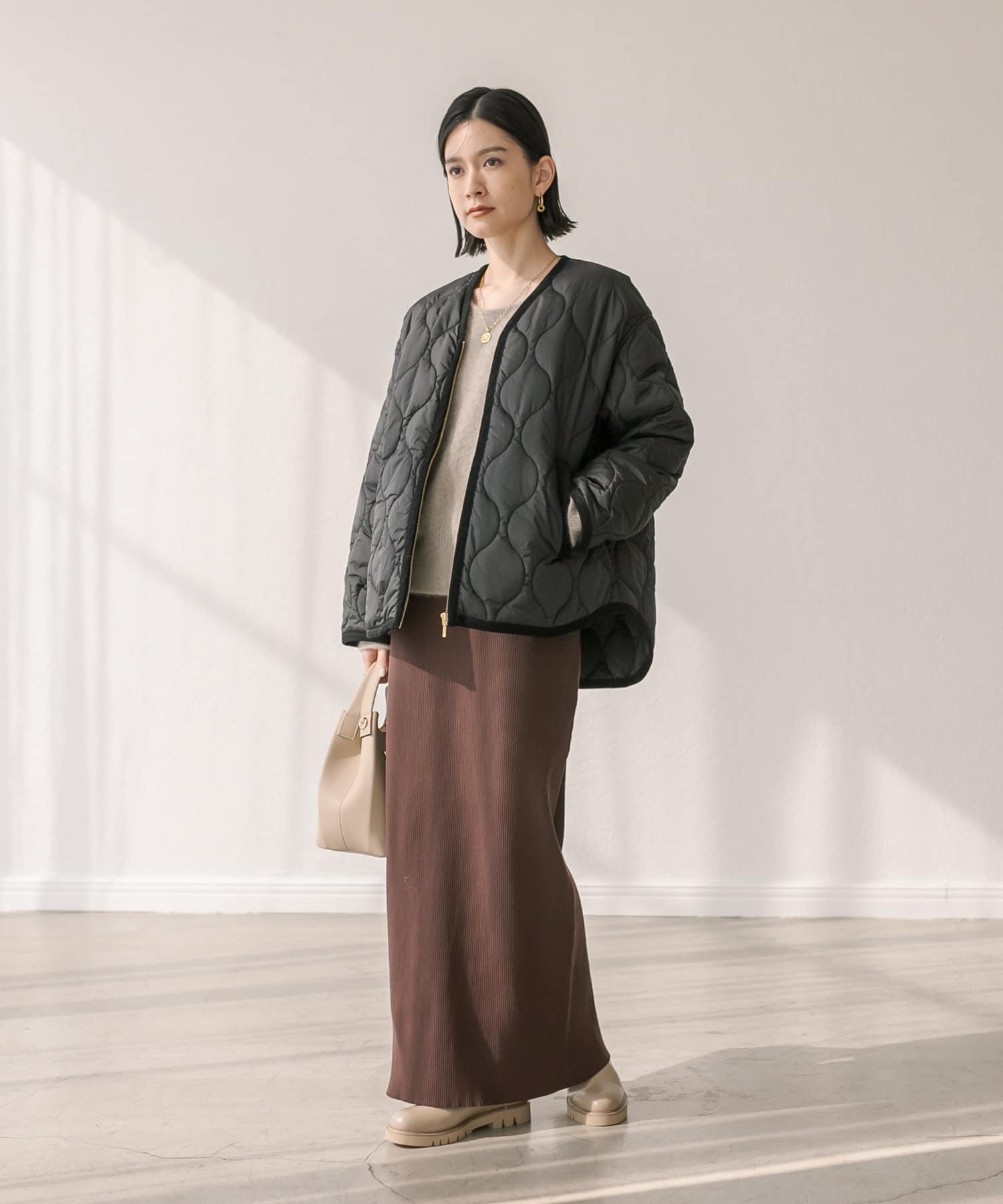 サッと羽織れる着心地ながらも、中綿入りで温かさも両立。