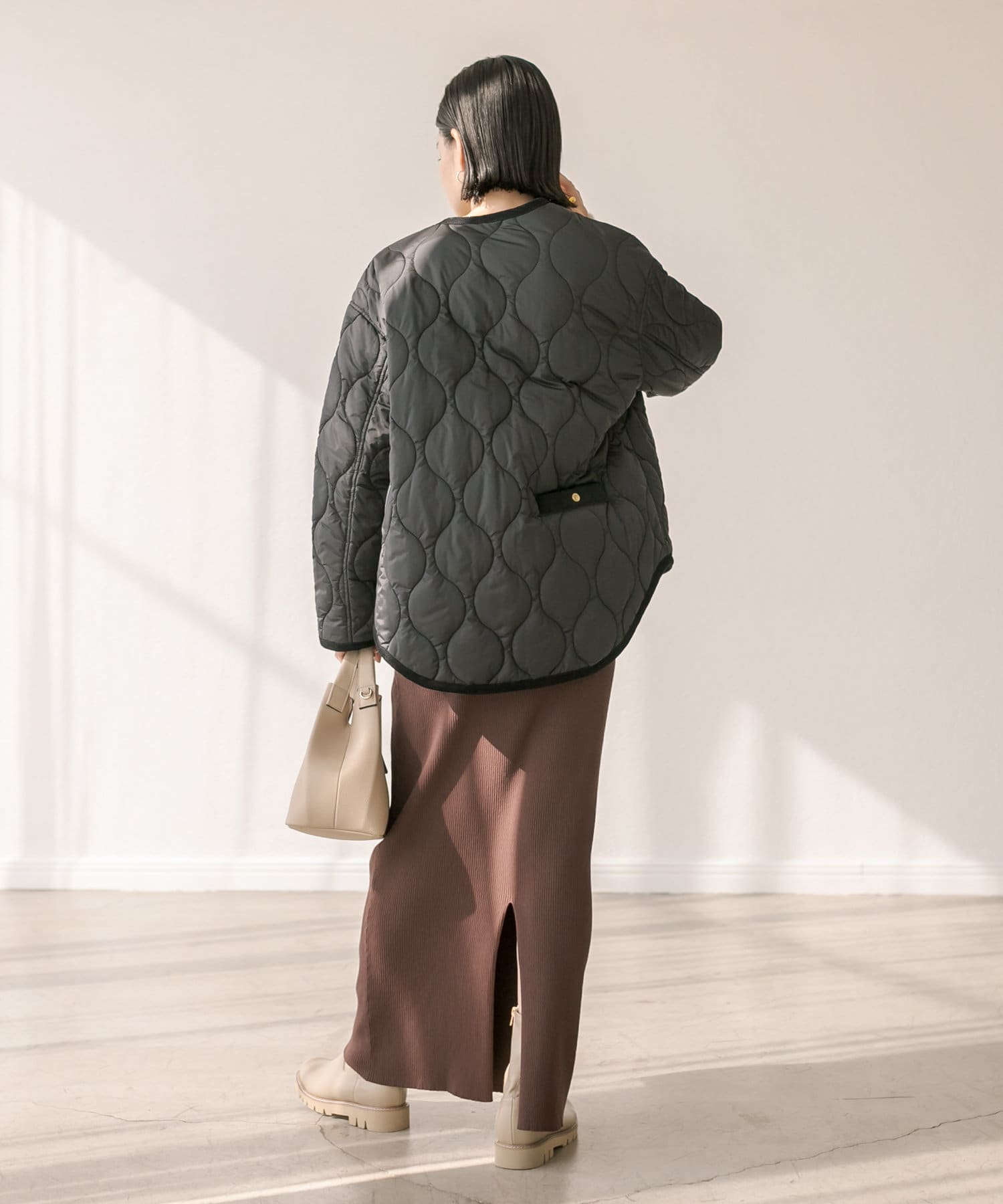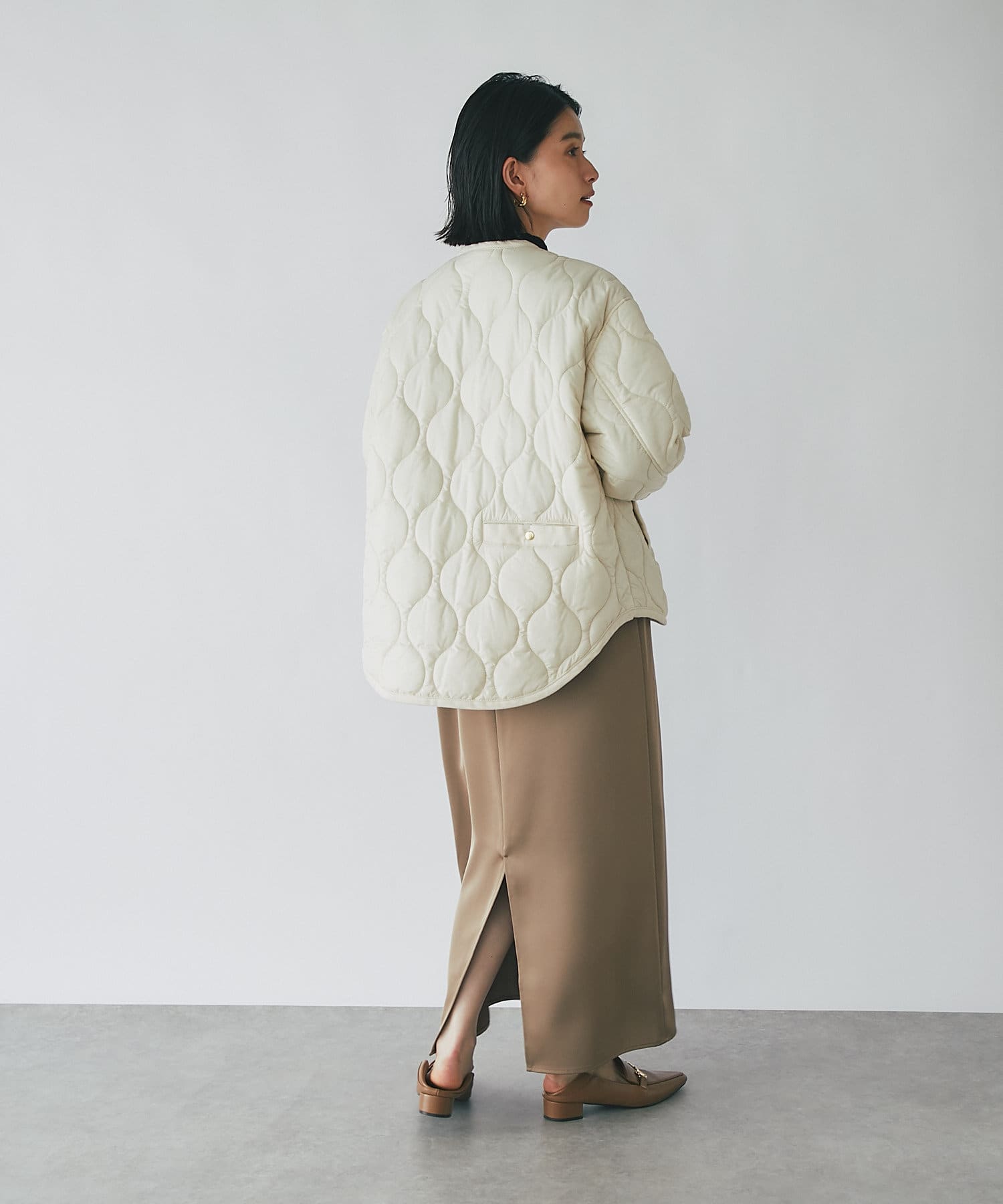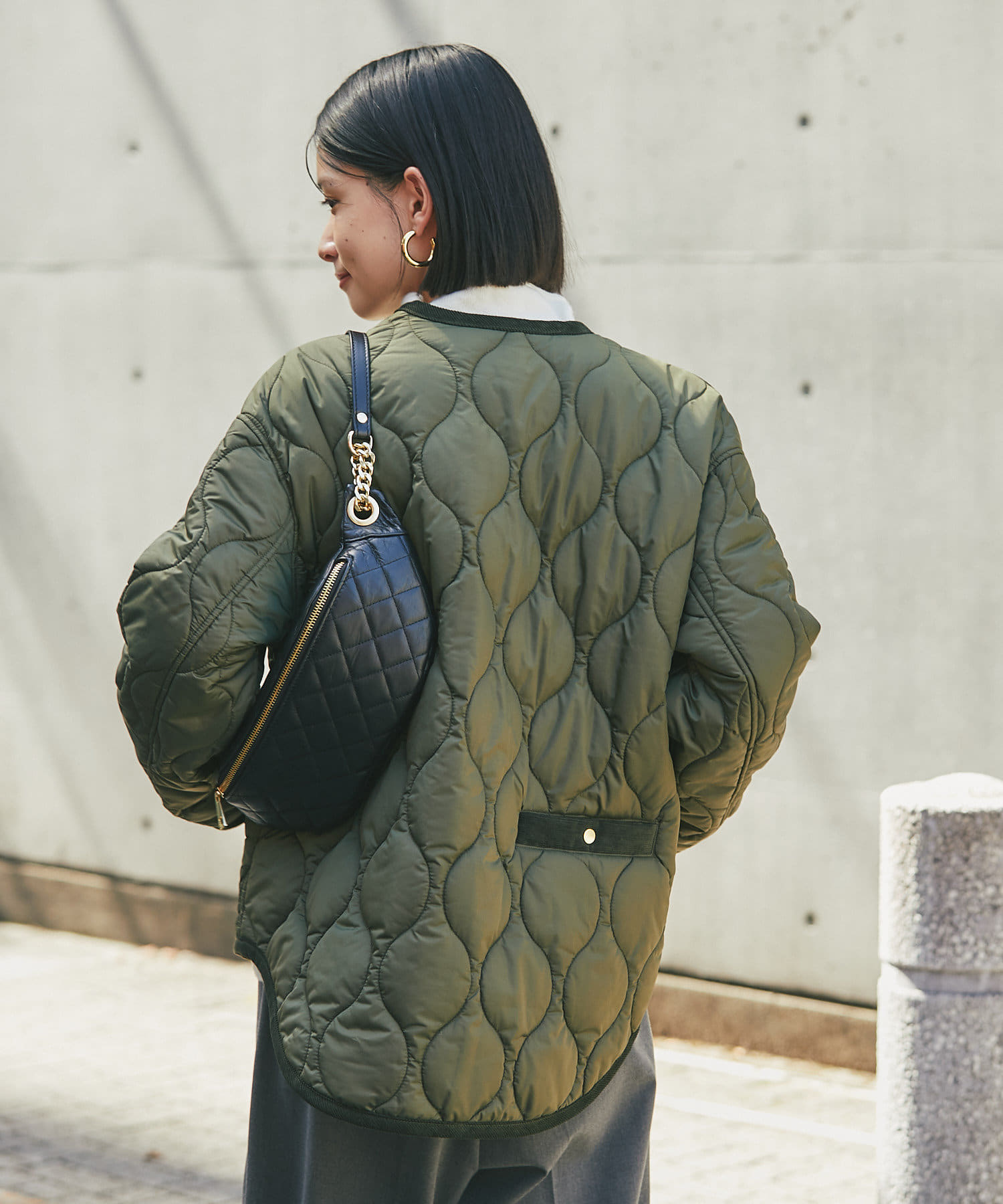 大人カジュアルに着れるツヤ感のあるキルティング素材を使用したコート。