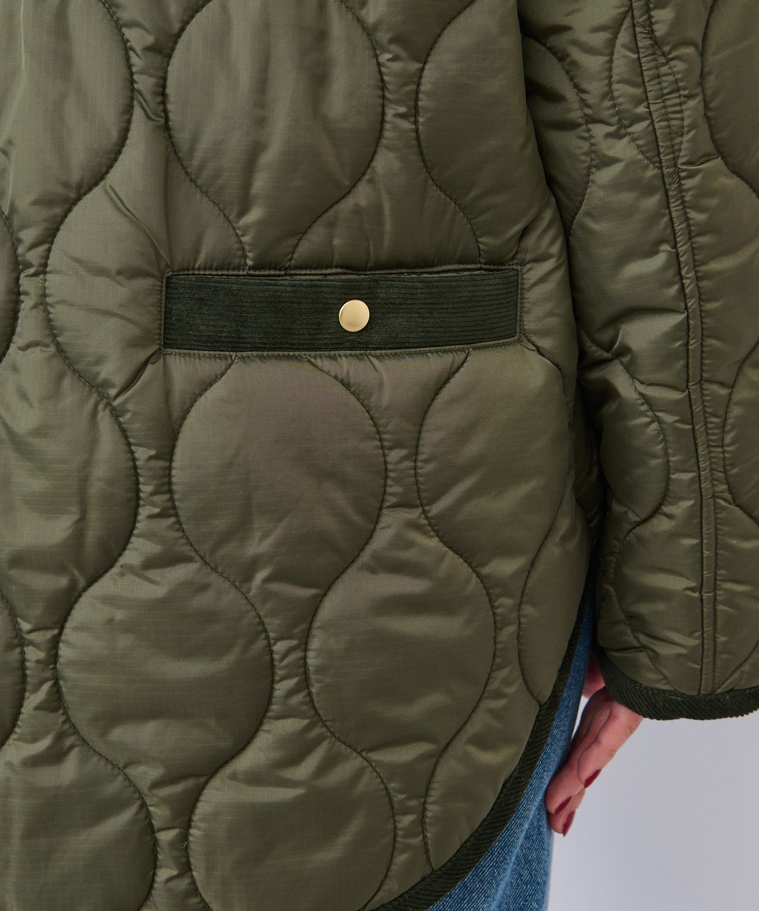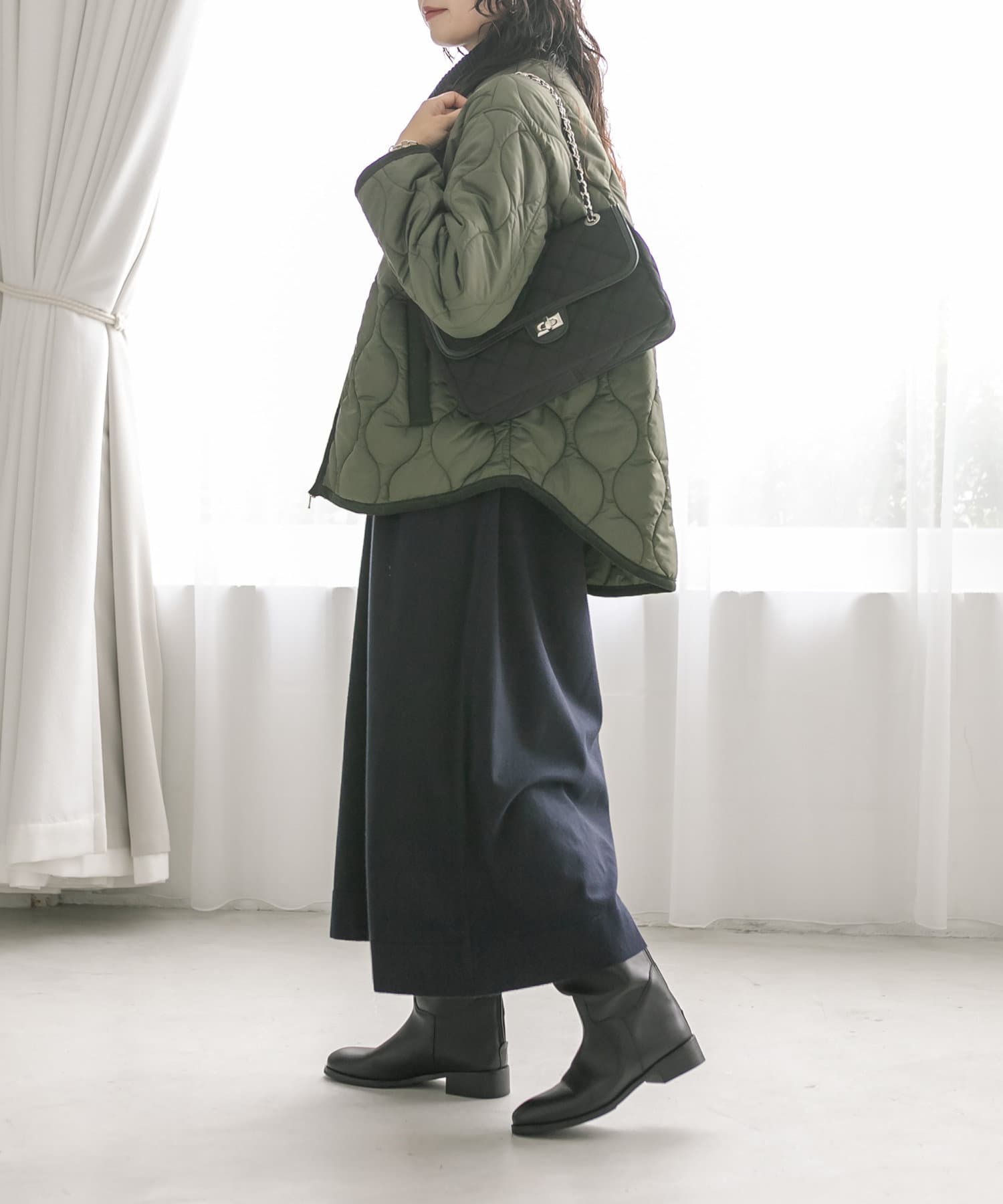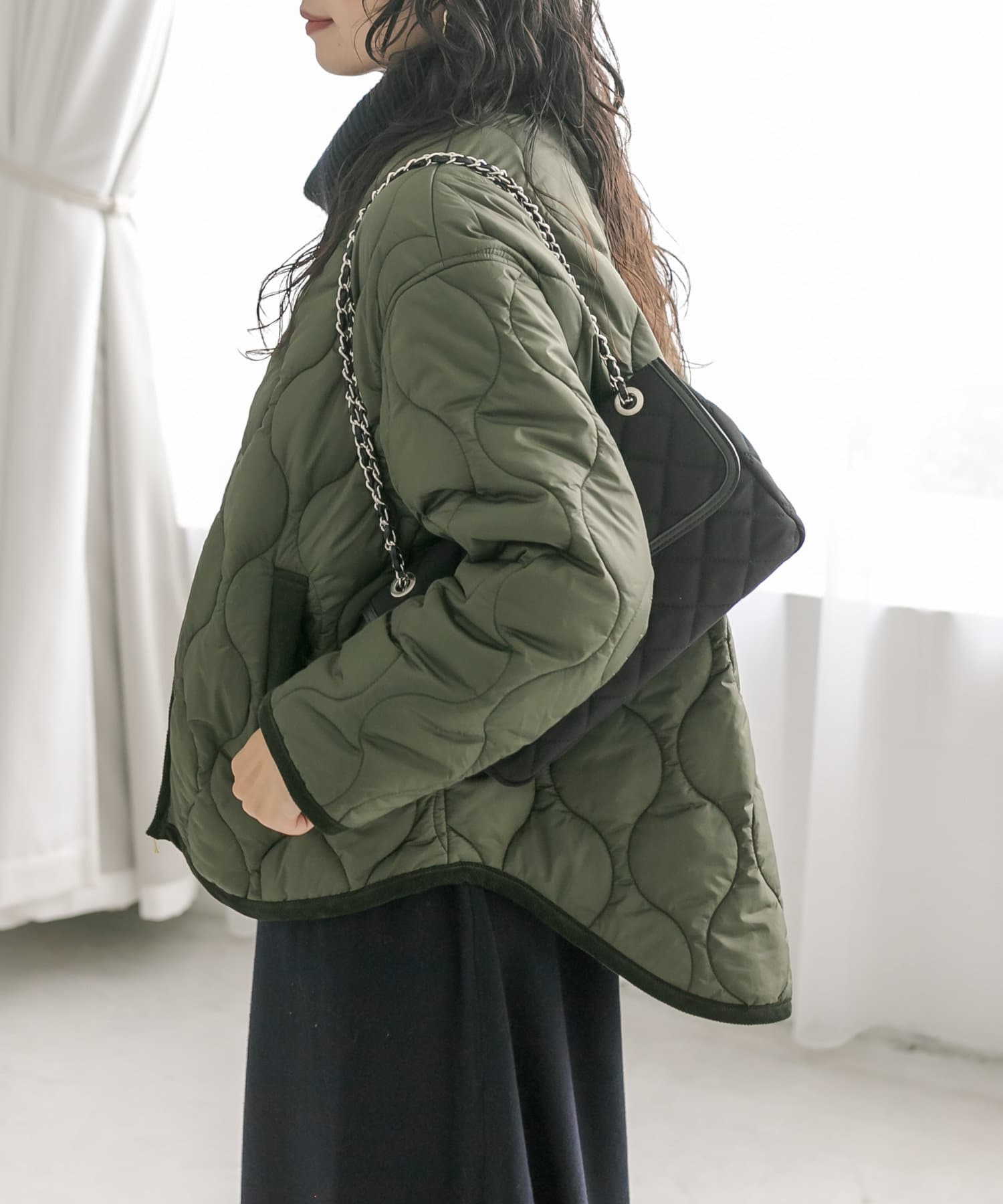 大人カジュアルに着れるツヤ感のあるキルティング素材を使用したコート。