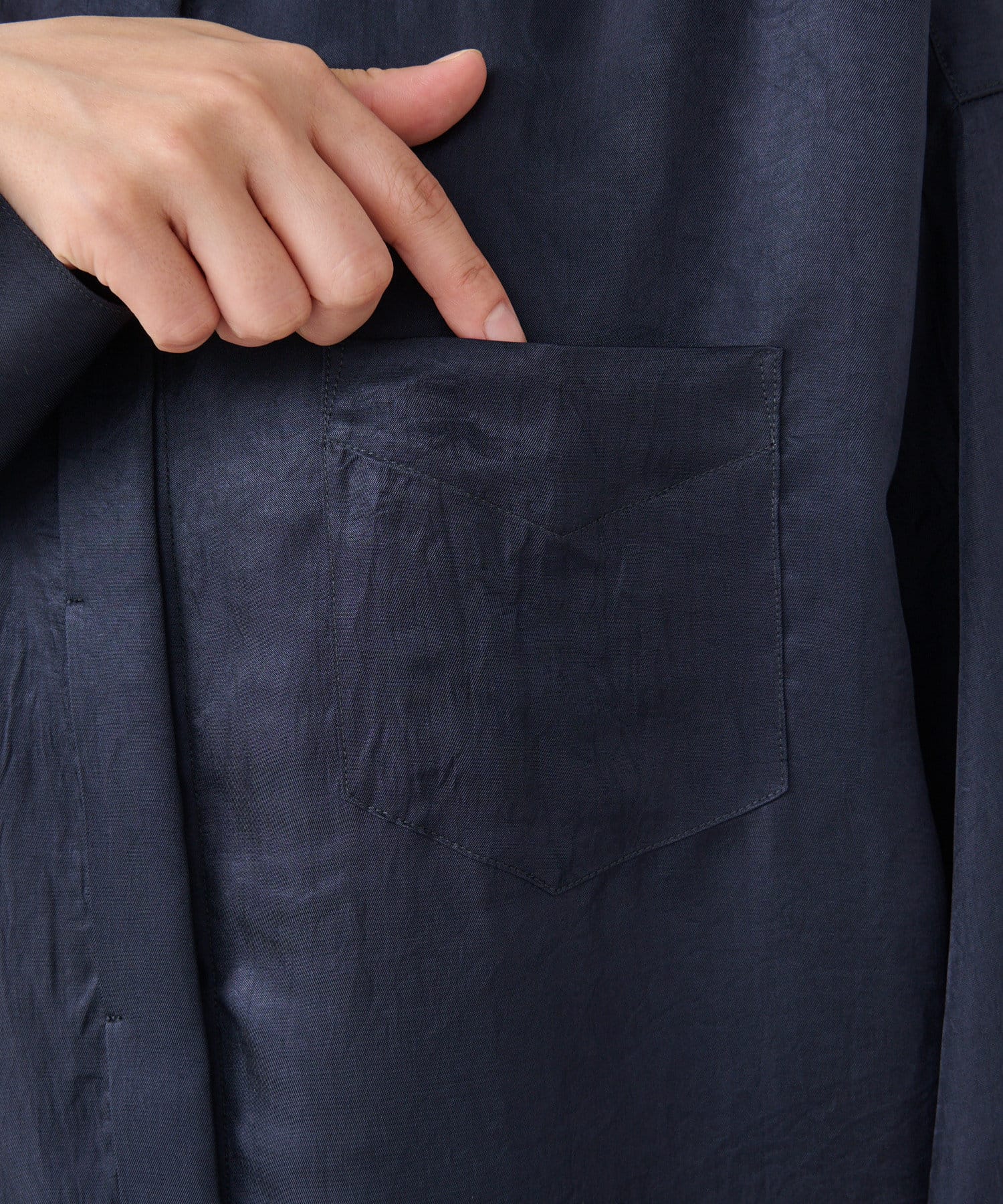 シルクのような光沢感とビンテージのような風合いが特徴のシャツ。