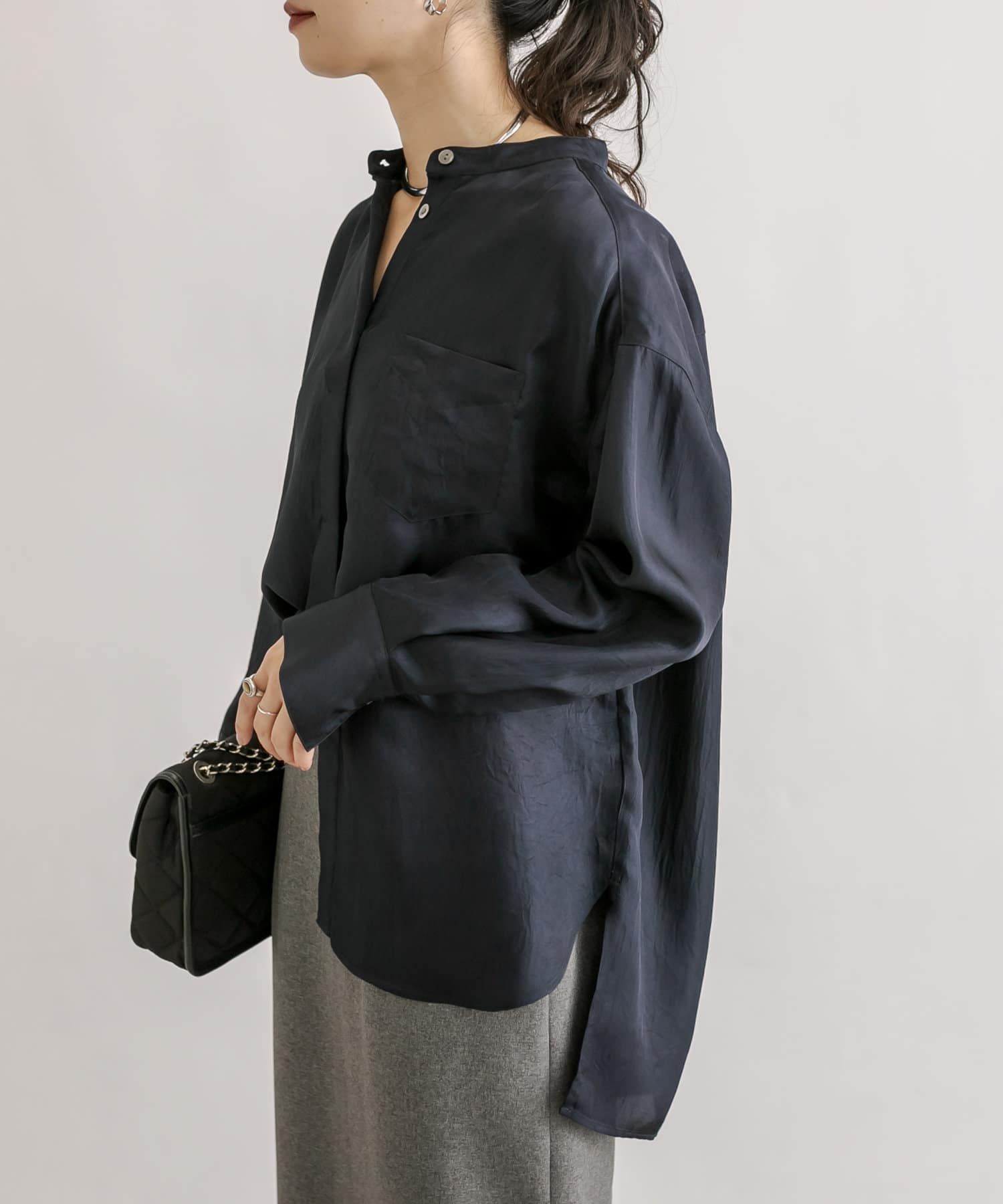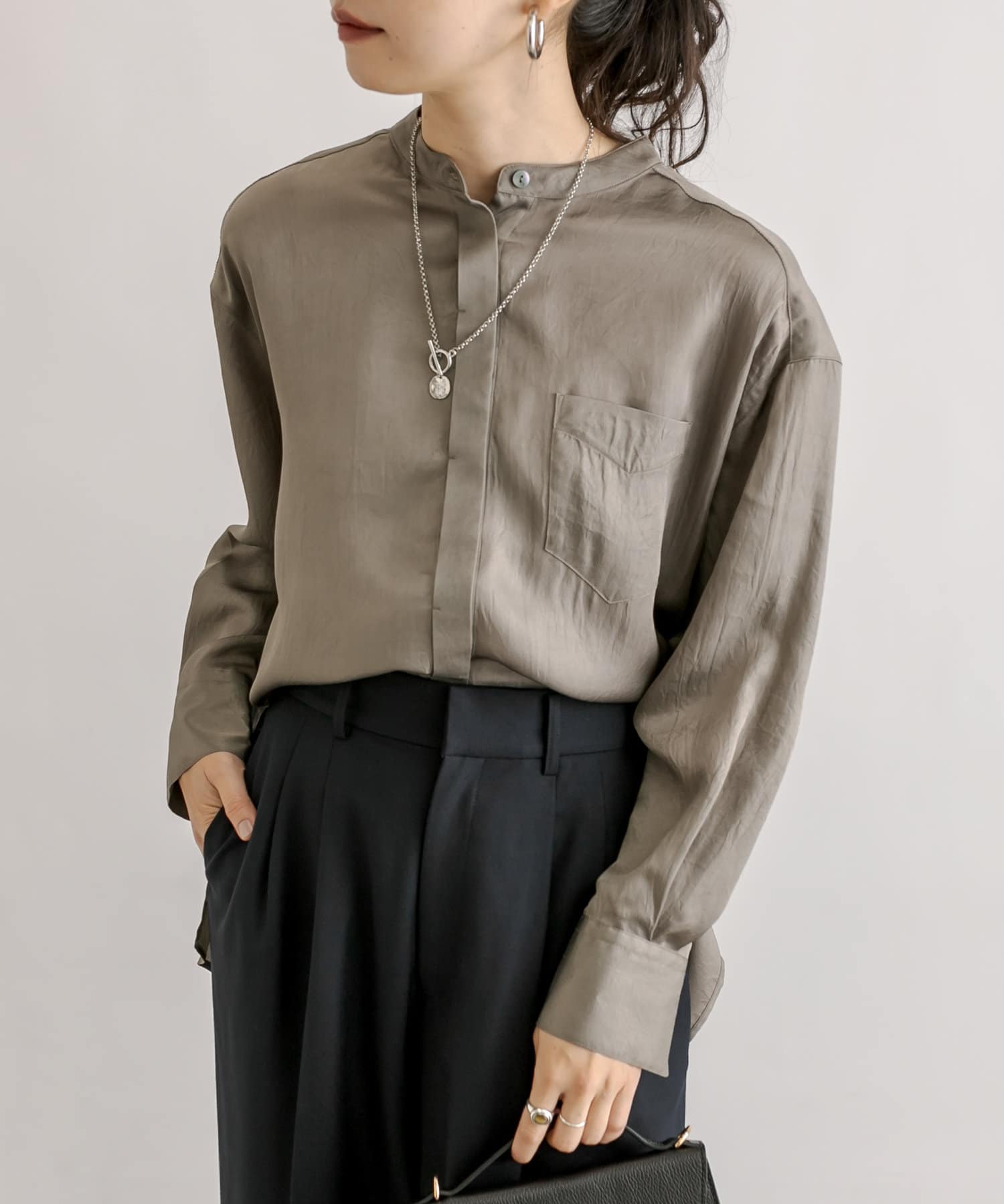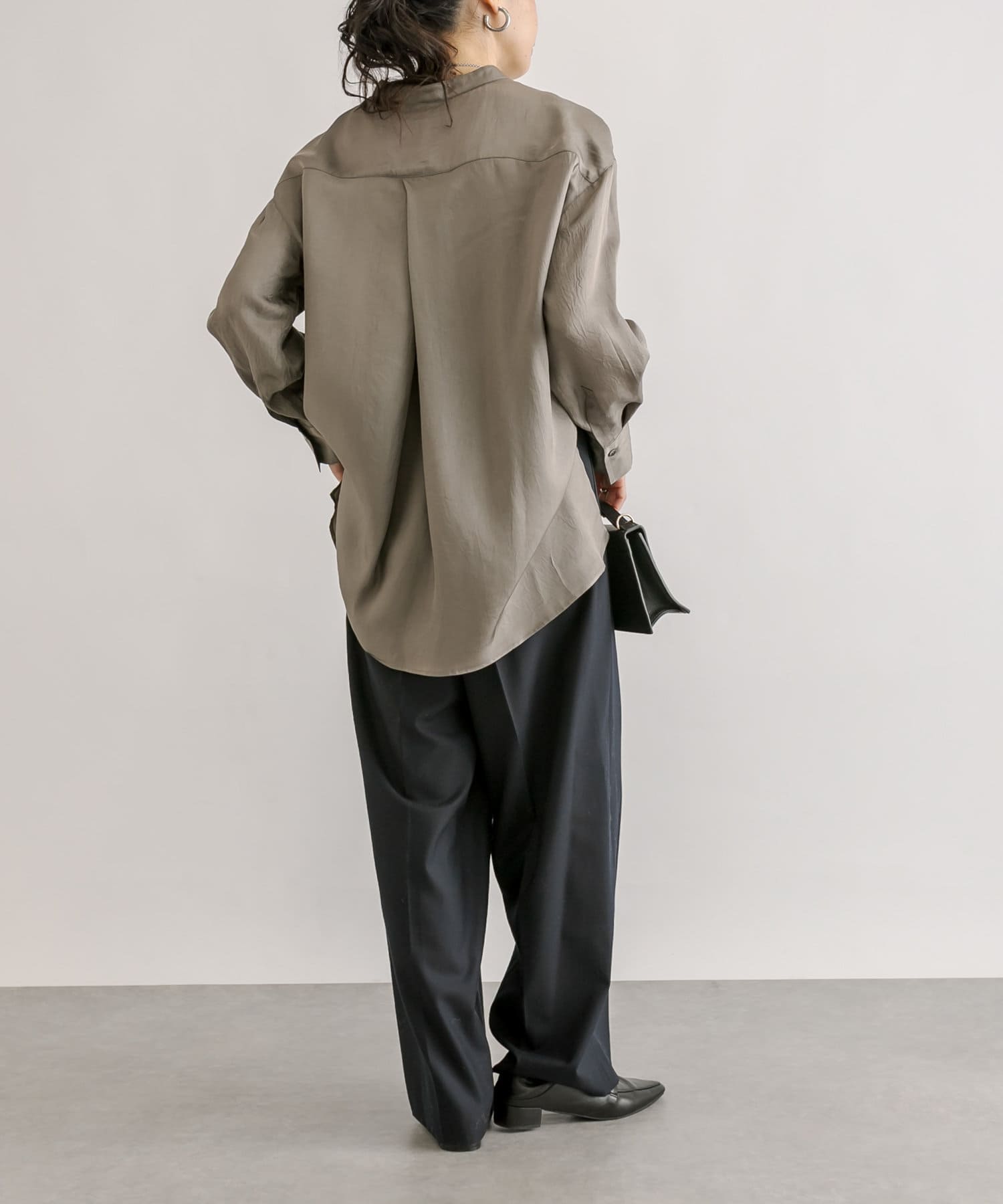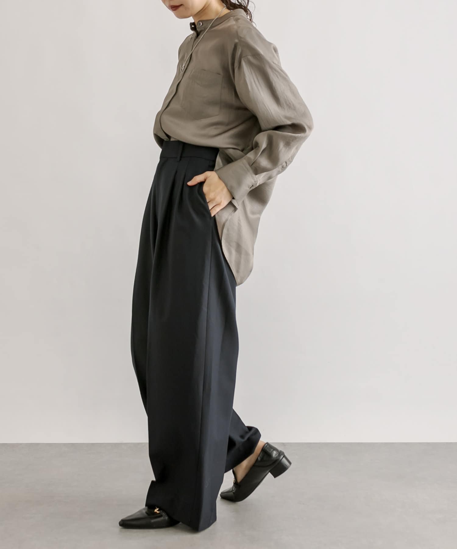 しわが気になりづらい素材感でラフに着ていただきやすく、品がありながらもこなれた感じも出してくれます。