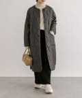 ゆったりした身幅、立体感のある袖で厚手のニットも着こみやすく、ノーカラーでマフラーアレンジもしやすいアイテムです。