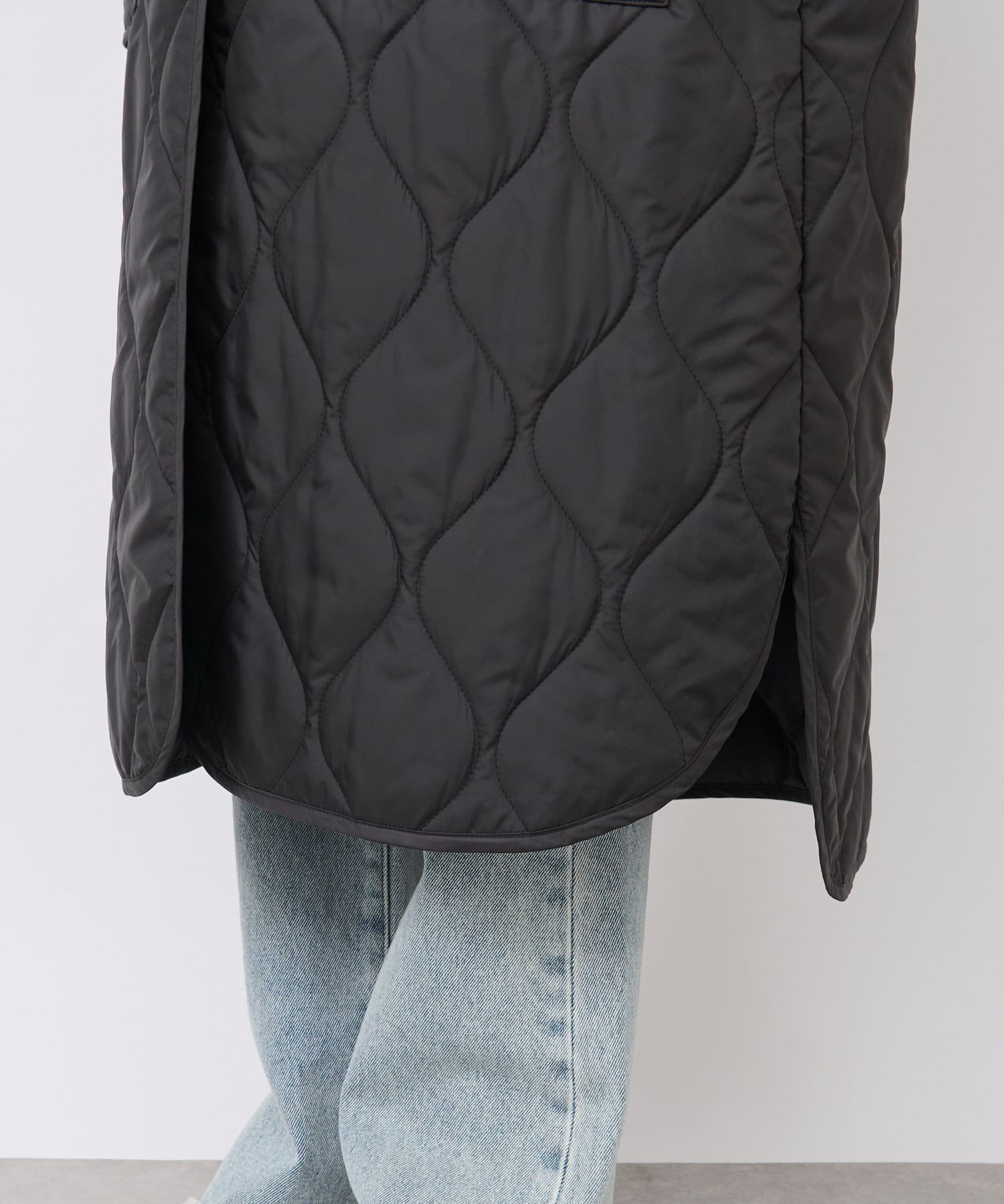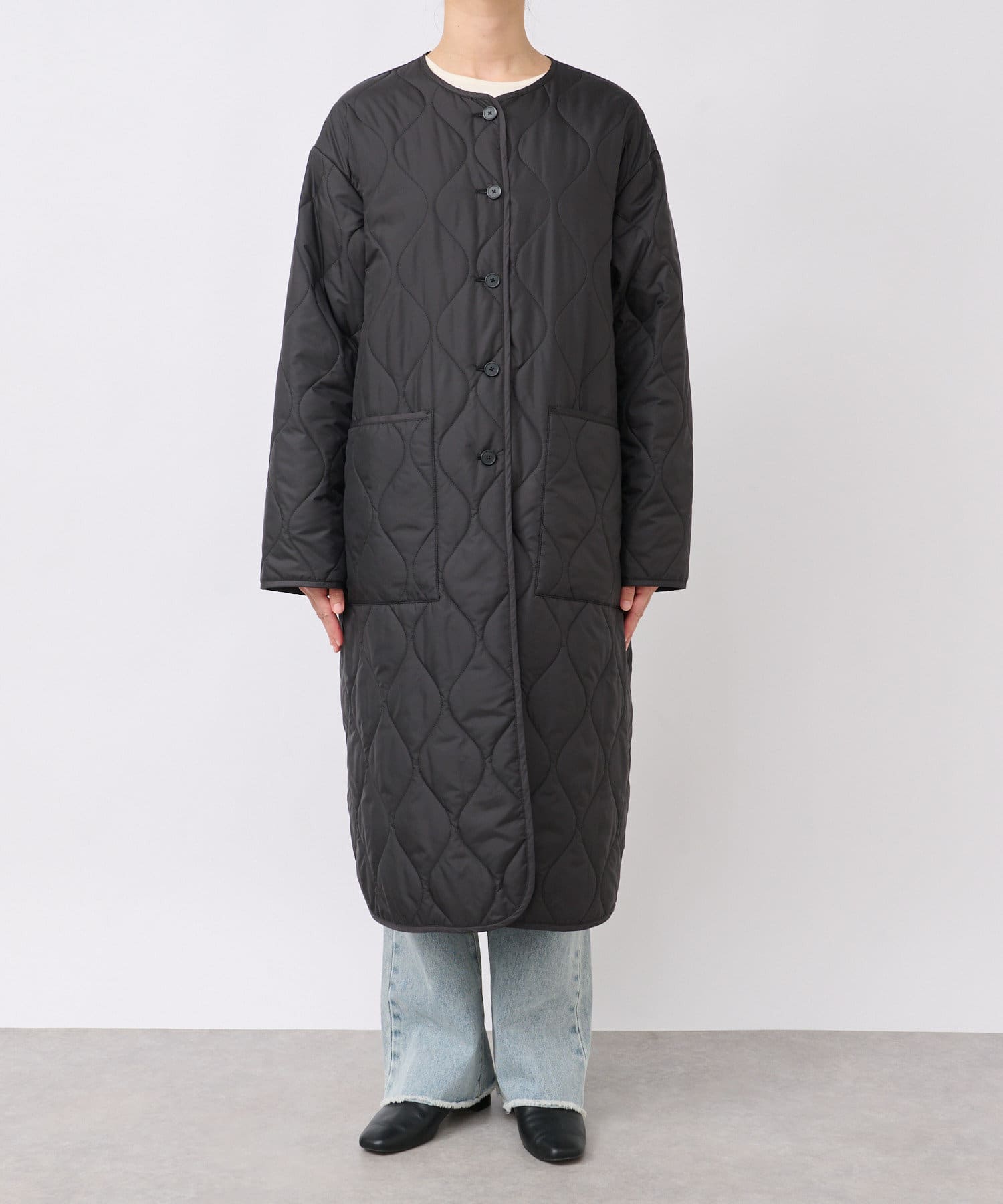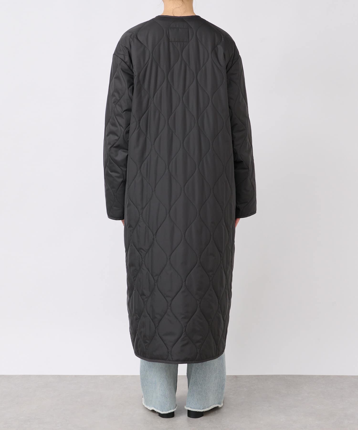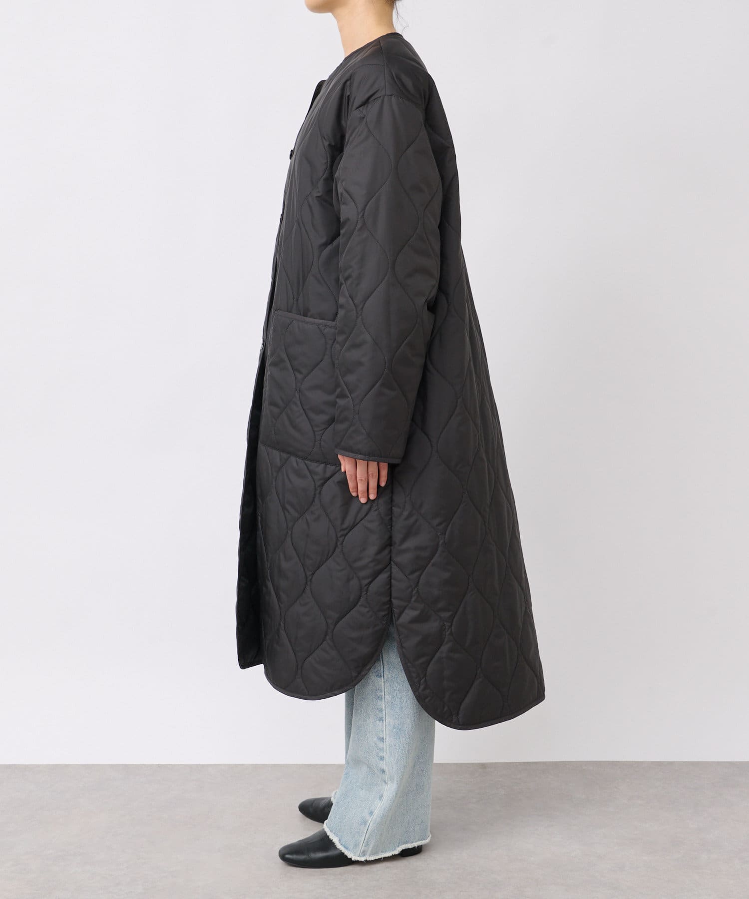 軽くやわらかい風合いの断熱中綿を使用したロングキルティングコート。
