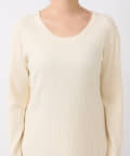 ウール混のモチモチとした素材は、チクチク感を感じづらいなめらかなタッチで、素肌に優しい肌ざわり。上質感のある見た目にもこだわりました。