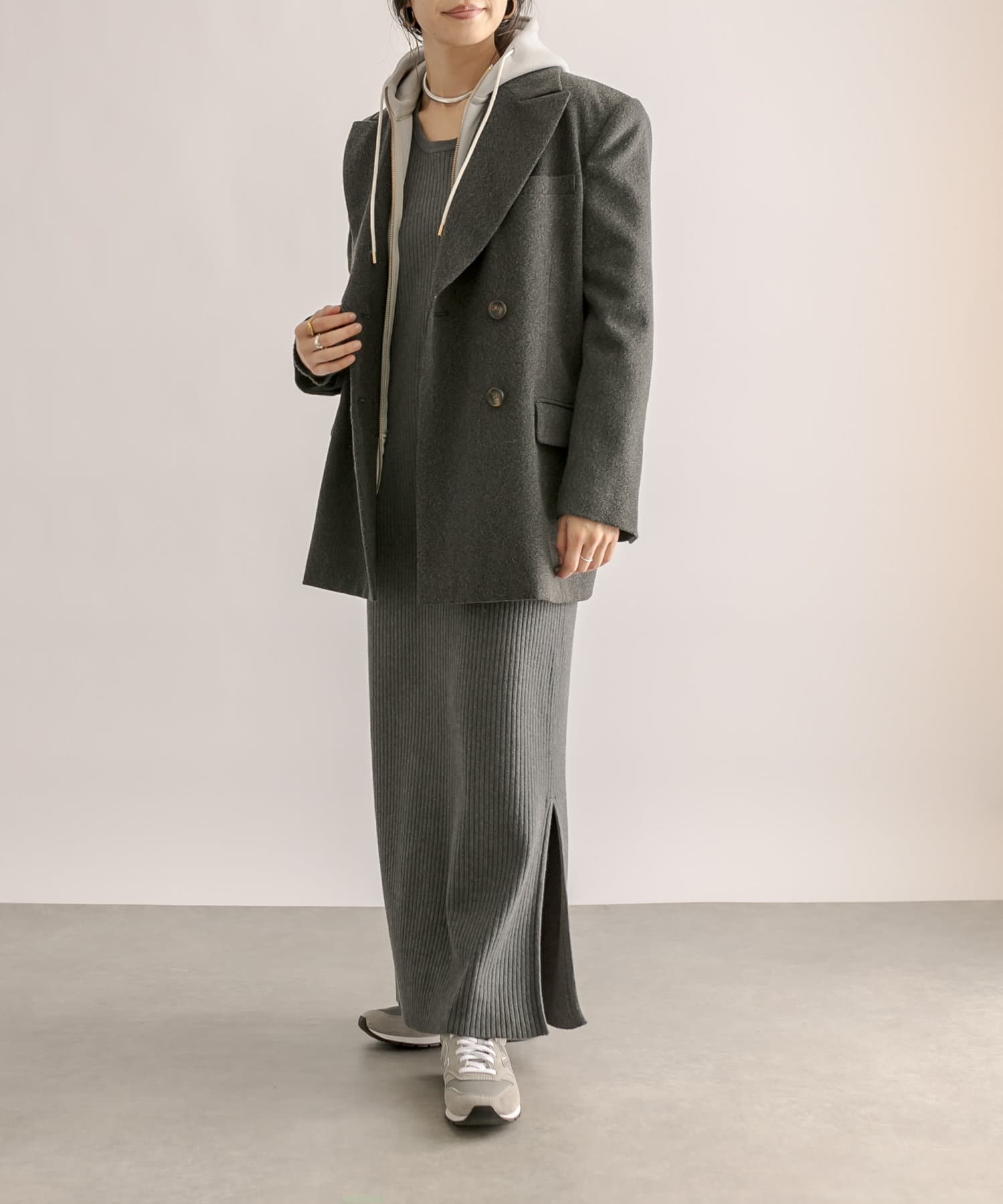 ニットで落ち感があるので160cm~165cmの身長をカバーできる着丈です。