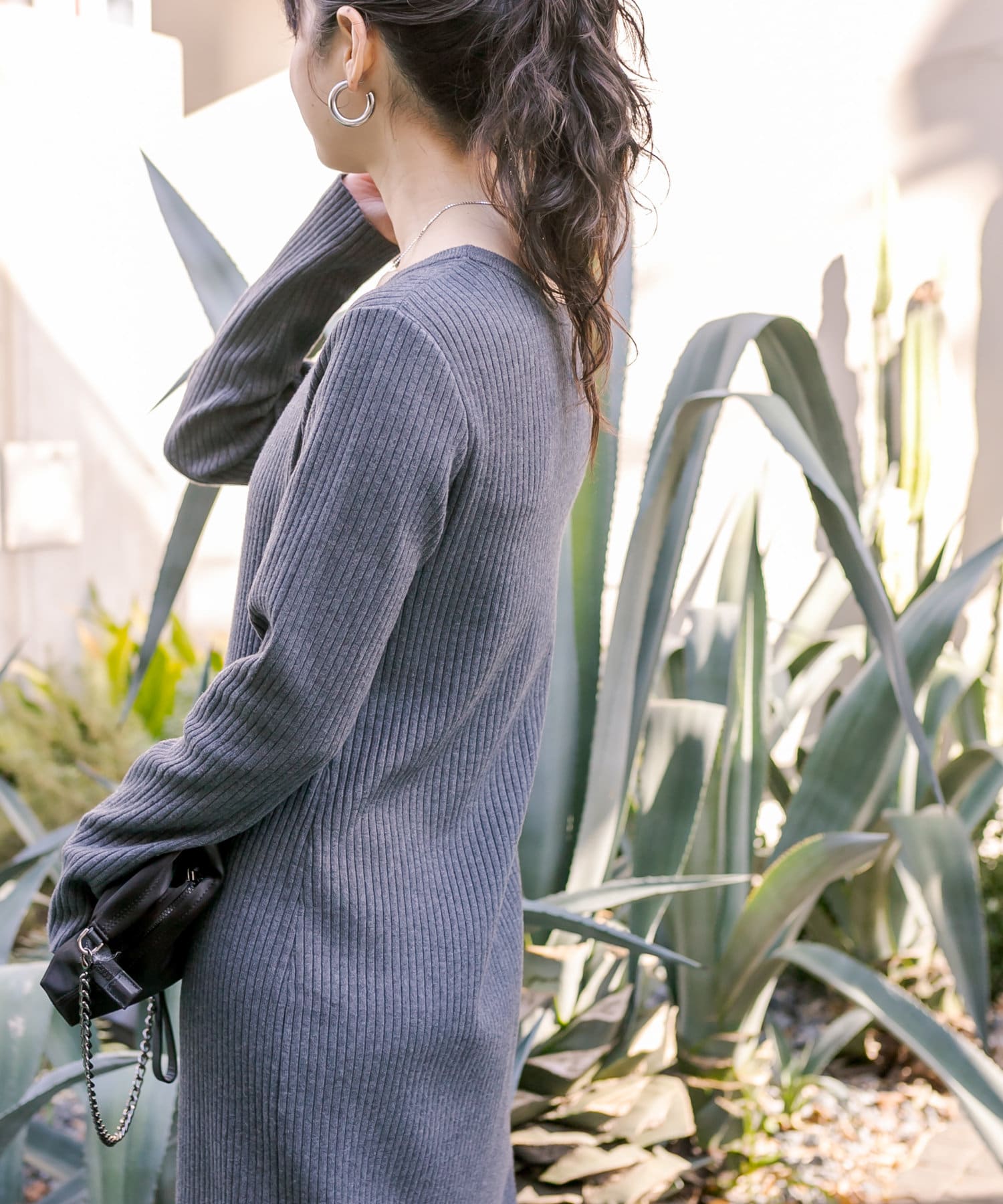 【新素材の全骨格細見えワンピ】リブニットワンピース