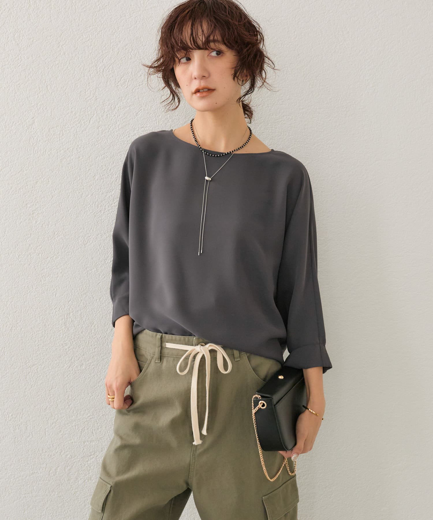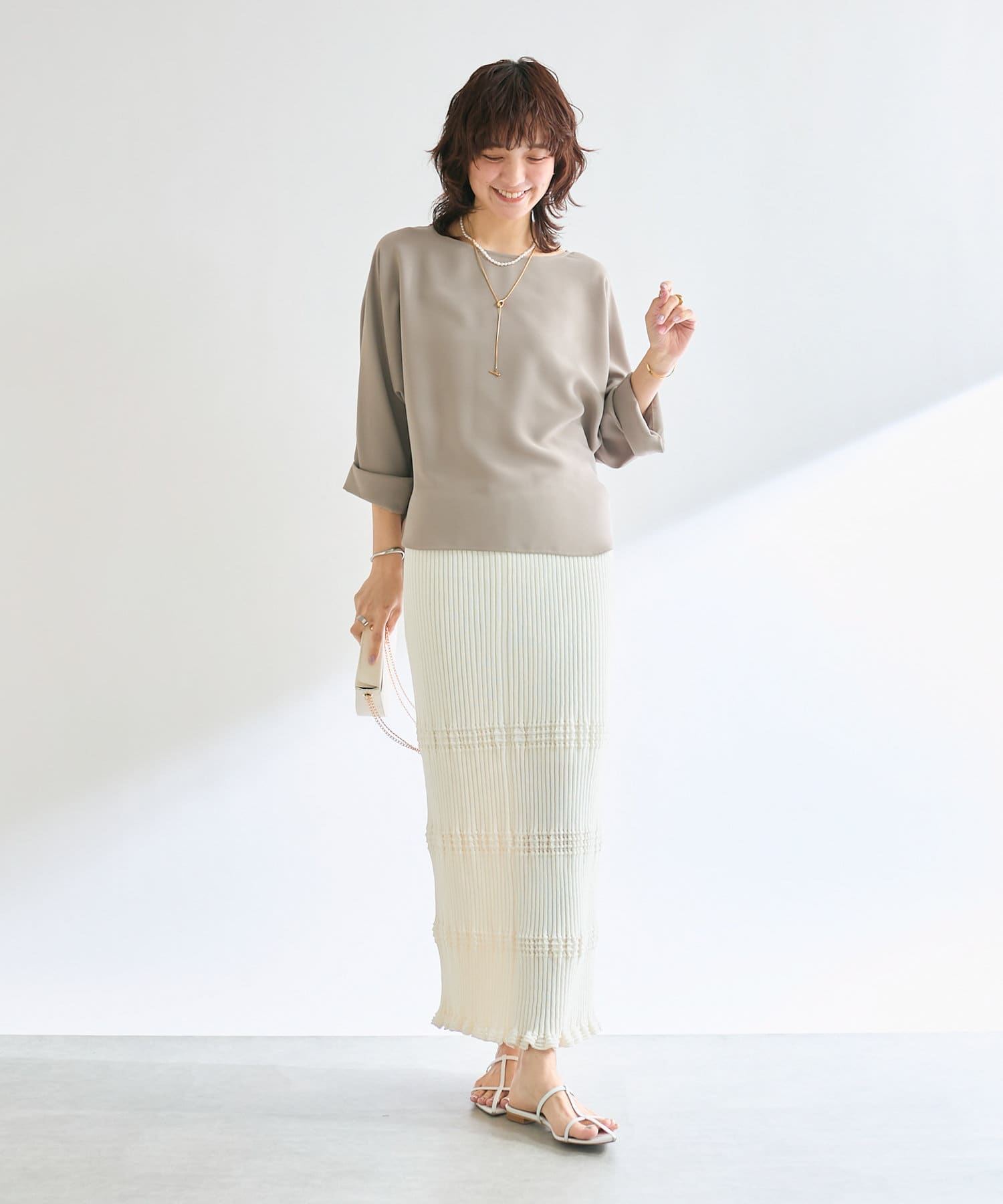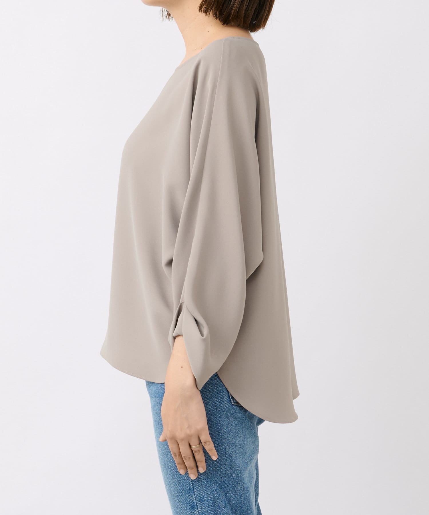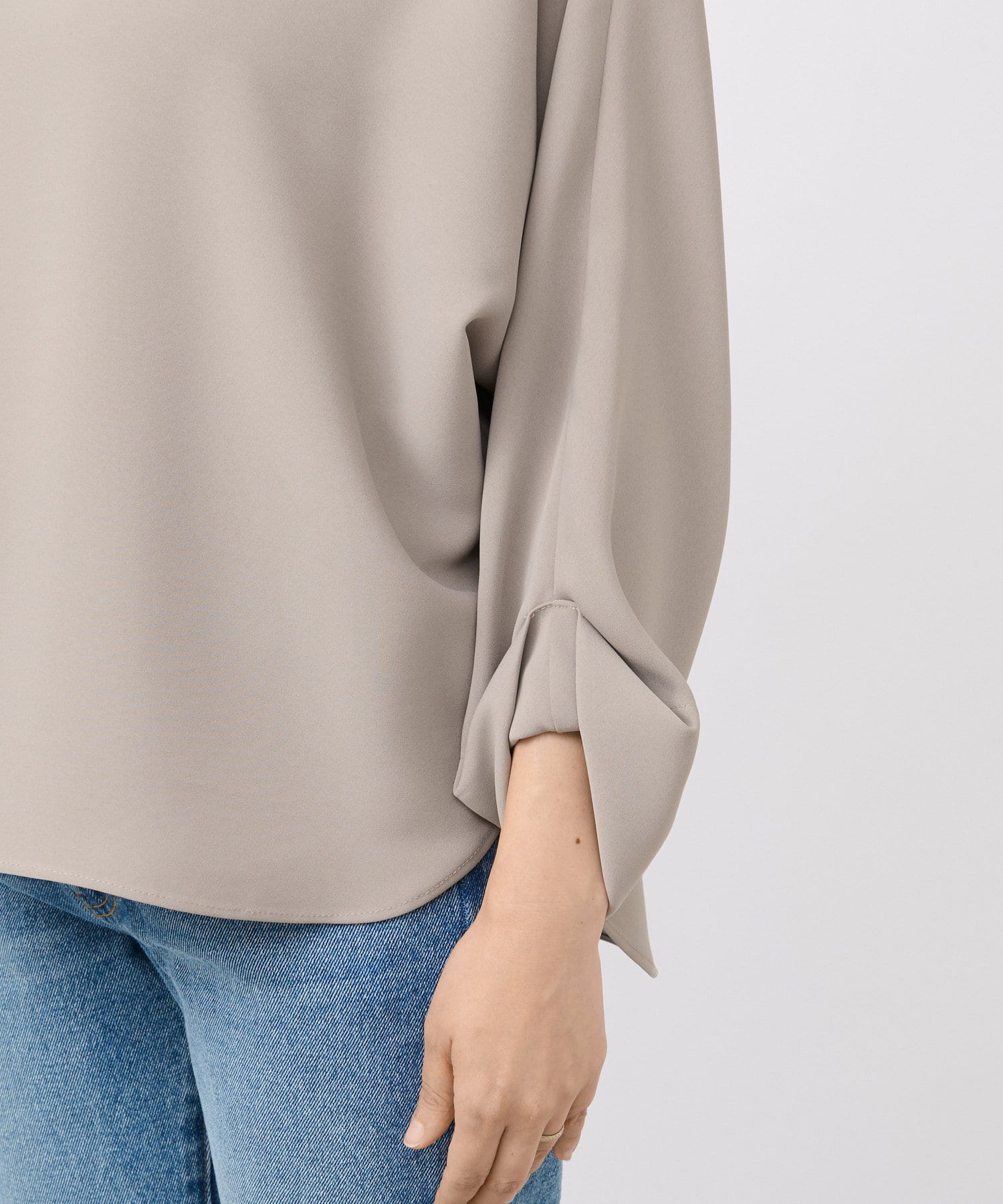 ゆったりとした安心感のあるシルエットとドルマンスリーブで、上半身の華奢見えを叶えます。